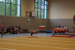 Nach nur drei Wochen Vorbereitung mussten sich unsere beiden Ligamannschaften in Pirna der schweren Aufgabe 2.Landesliga stellen. Vormittags begann unsere Mädchenmannschaft LK3. Mit viel Kampfgeist ging es an die Geräte. Nachdem am Stufenbarren alle ihre Übung präsentiert hatten, legte sich die erste Anspannung. Der Punktestand im Protokoll am Stufenbarren zeigte dann auch, das wir das beste Egebniss aller Mannschaften an diesem Gerät erturnten. Die anschließenden Übungen am Schwebebalken waren erwartungsgemäß noch etwas zittrig und alle waren froh das Gerät überstanden zu haben. Hier zeigten auch die anderen Mannschaften Nerven, was uns Platz drei an diesem Gerät bescherte. Weiter ging es zum Boden. Hier machte sich der Trainingsrückstand noch am deutlichsten bemerkbar. Auf der 12x12 m großen Matte wirkten unsere Übungen sehr zaghaft, was auch die Wertungen widerspiegelten. Nach dieser kleinen Enttäuschung ging es weiter zum Sprung. Dort gab es von Jasmin den besten Überschlag an diesem Tag. Auch die Anderen zeigten solide Sprünge. Nach diesem gelungenen Wettkampf war klar, dass wir uns keine Abstiegssorgen machen müssen. Der Jubel über den erreichten Platz 4 war entsprechend groß. Am Ende bedeutet dieser dismal sogar, dass wir im Oktober beim Relegationwettkampf noch einmal antreten dürfen.
