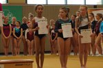 Auf den Bronzerang in der gleichen Klasse schaffte es Emely, die leider eine bessere Platzierung durch ein fehlendes Element am Stufenbarren verschenkte, vor Milena. Ebenfalls Platz 4 ging an Eniye (LK 4 bis AK 11), die durch den Sturz vom Balken die Medaillenränge verpasste. Alma musste schon in der LK 3 AK 14/15 an den Start gehen und wurde ebenfalls Vierte.