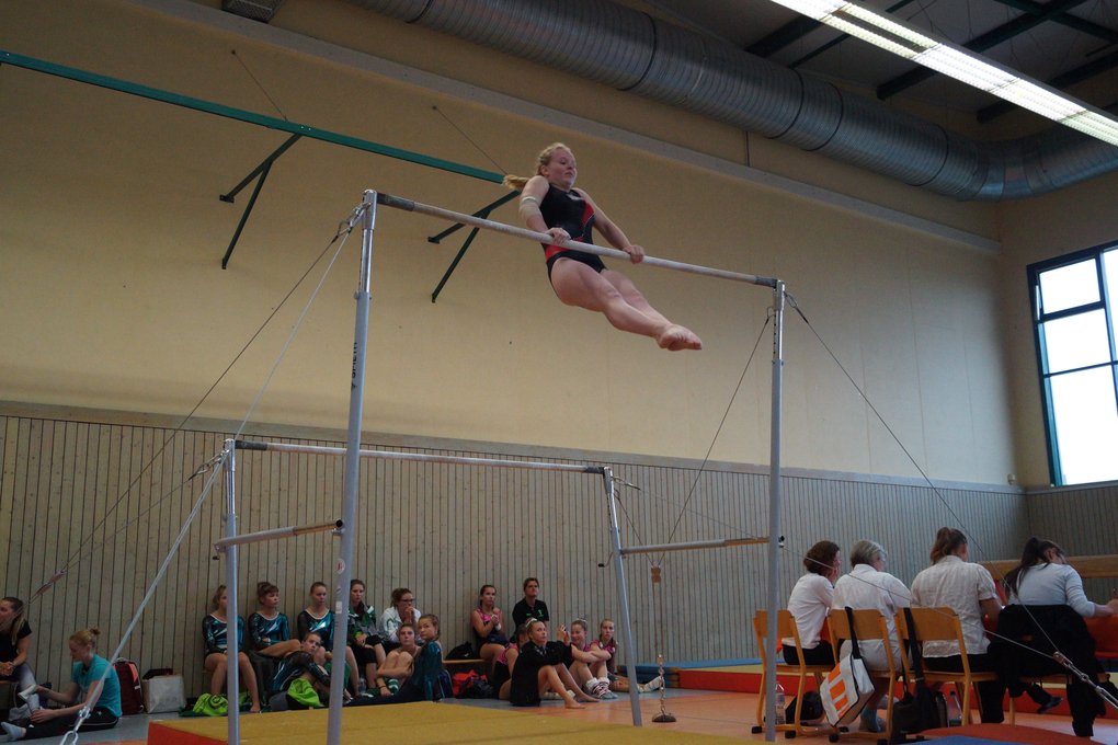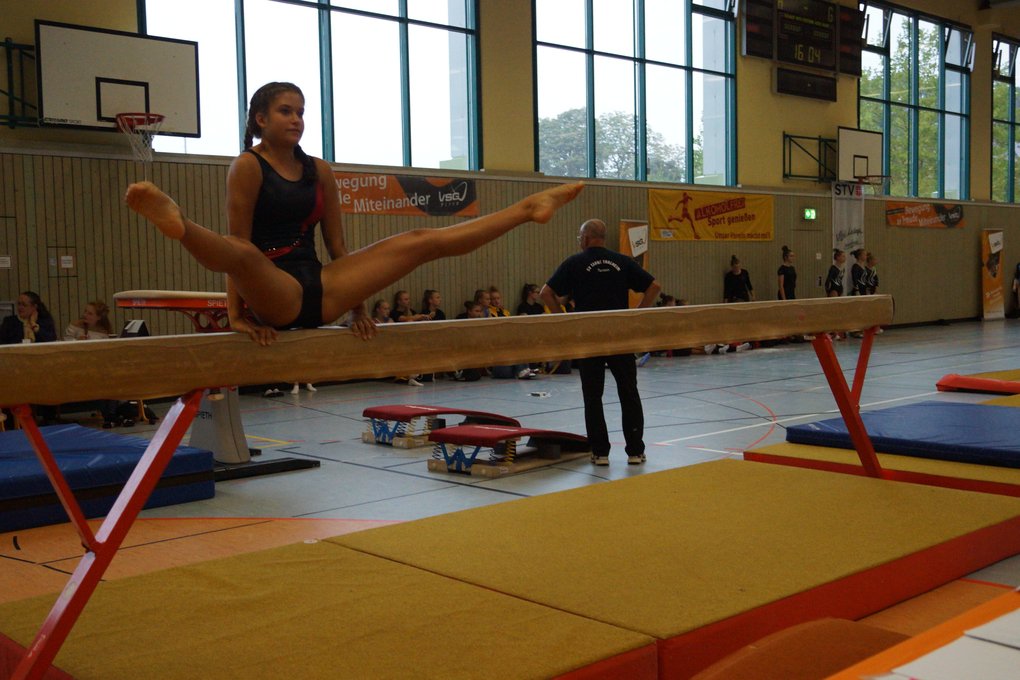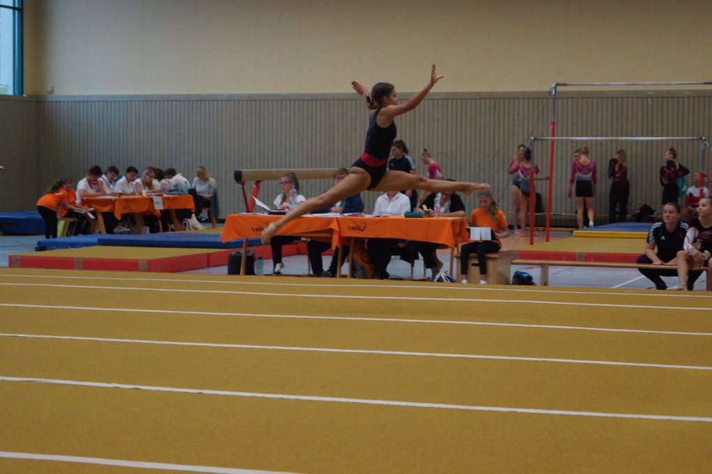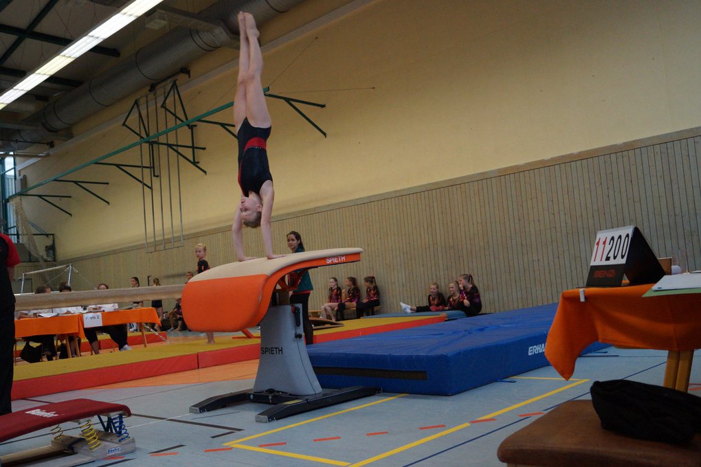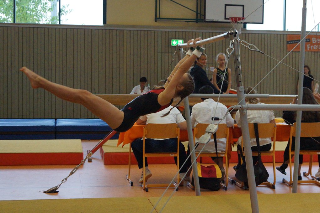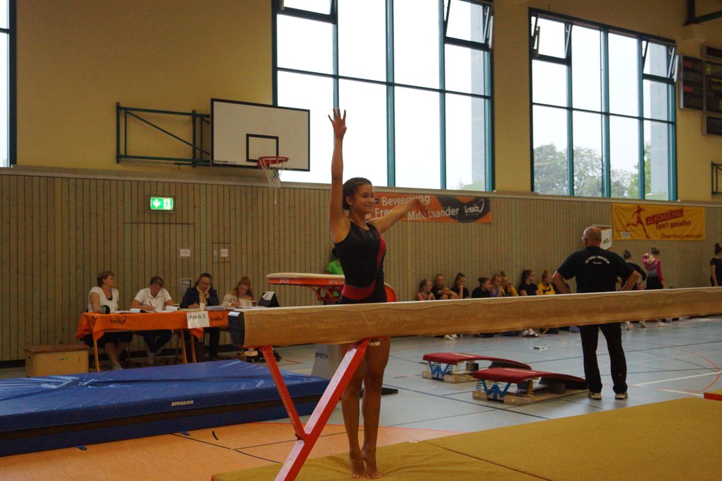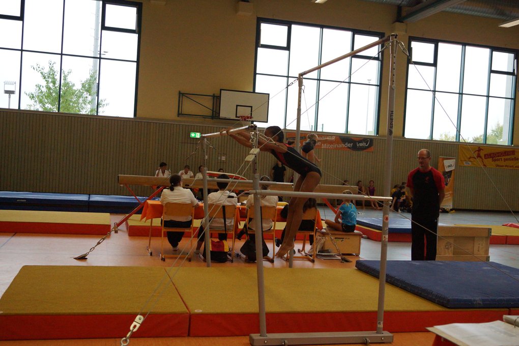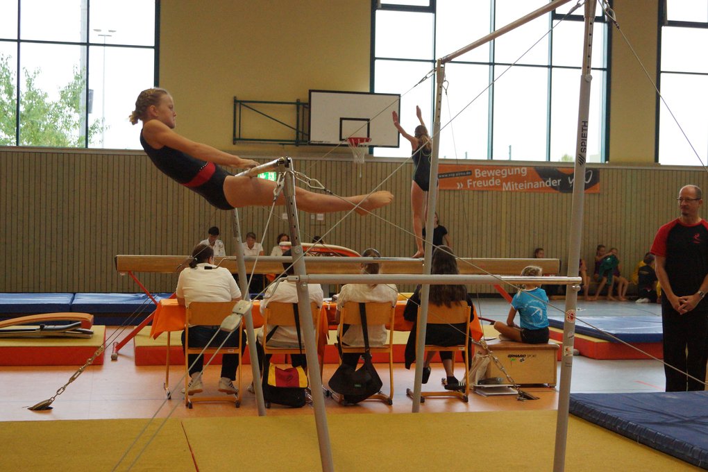 Am Nachmittag ging unsere Frauenmannschaft LK 2 in der gleichen Gerätereihenfolge an den Start. Am Stufenbarren lagen alle Mannschaften ungefähr gleich auf. Am Balken zeigte sich die Routine unserer Starterinnen und es wurde das beste Ergebniss allen gestarteten Mannschaften. Leider haben wir nach wie vor Defizite am Boden, die sich vor allem in den Ausgangswerten zeigen. Das schwächste Gerät unserer Mannschaft aber war der Sprung, was sicher auch am Wettkampftermin lag, denn bei mancher Turnerin machte sich die lange Sommerferienpause noch durch fehlende Kondition bemerkbar. Bei der Siegerehrung gab es dann eine kleine Überraschung, denn Punktgleich mit der Mannschaft auf Platz drei, reichte das Ergebnis rechnerisch dann für den angestrebten 4. Platz, was der Frauenmannschaft die Relegation erspart.