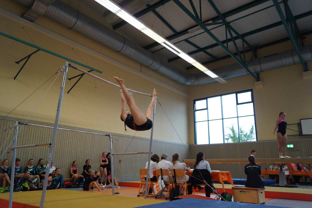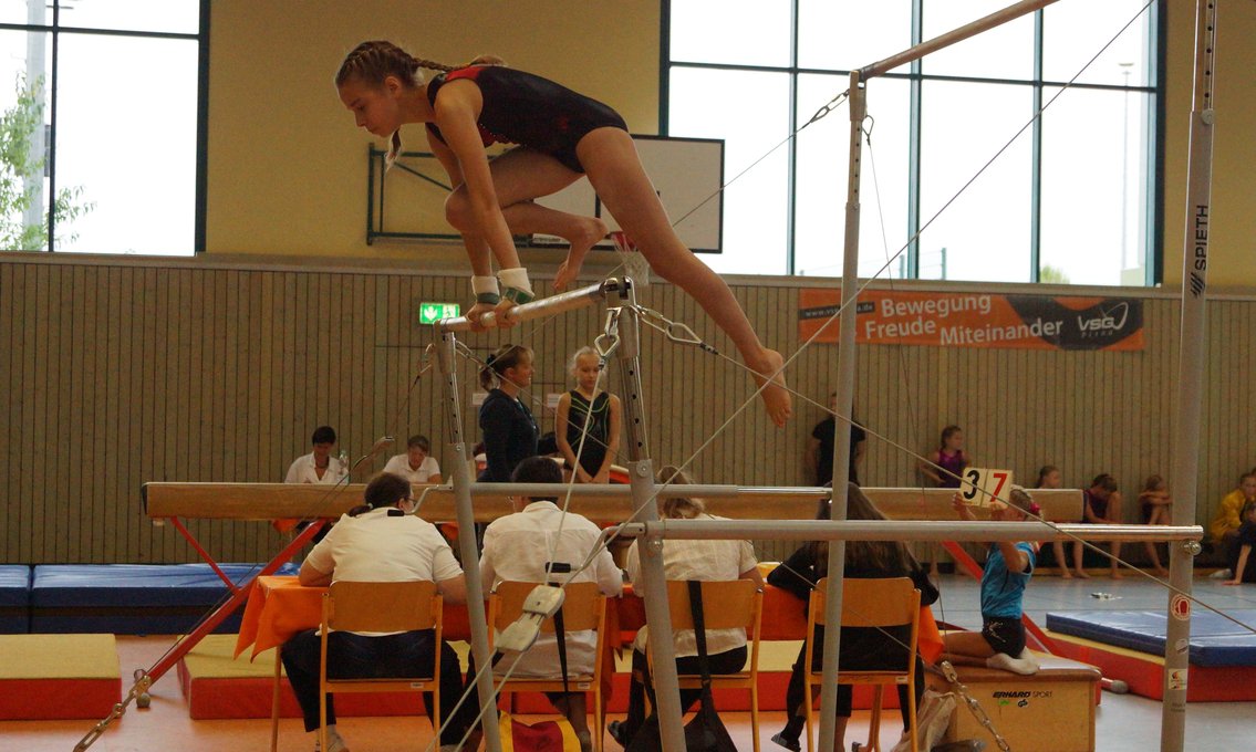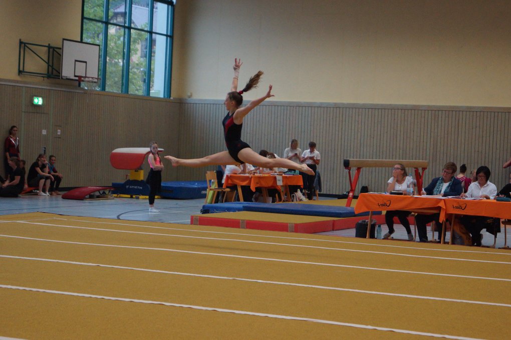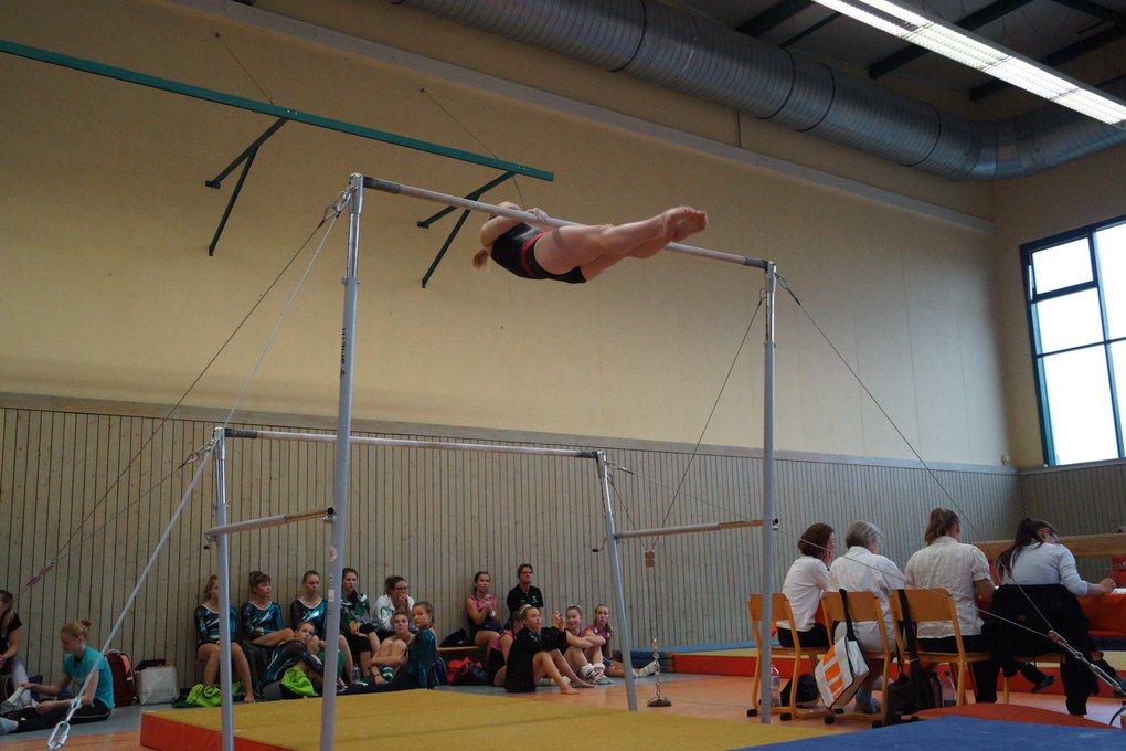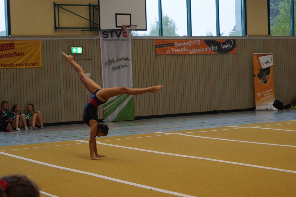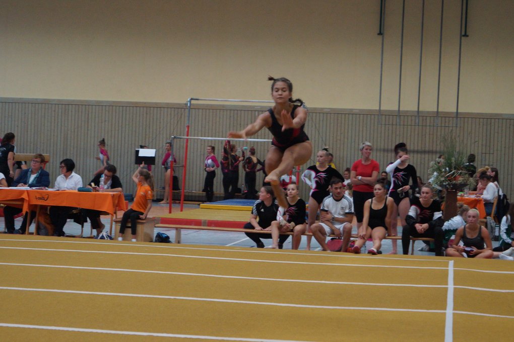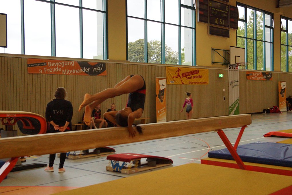 Nach nur drei Wochen Vorbereitung mussten sich unsere beiden Ligamannschaften in Pirna der schweren Aufgabe 2.Landesliga stellen. Vormittags begann unsere Mädchenmannschaft LK3. Mit viel Kampfgeist ging es an die Geräte. Nachdem am Stufenbarren alle ihre Übung präsentiert hatten, legte sich die erste Anspannung. Der Punktestand im Protokoll am Stufenbarren zeigte dann auch, das wir das beste Egebniss aller Mannschaften an diesem Gerät erturnten. Die anschließenden Übungen am Schwebebalken waren erwartungsgemäß noch etwas zittrig und alle waren froh das Gerät überstanden zu haben. Hier zeigten auch die anderen Mannschaften Nerven, was uns Platz drei an diesem Gerät bescherte. Weiter ging es zum Boden. Hier machte sich der Trainingsrückstand noch am deutlichsten bemerkbar. Auf der 12x12 m großen Matte wirkten unsere Übungen sehr zaghaft, was auch die Wertungen widerspiegelten. Nach dieser kleinen Enttäuschung ging es weiter zum Sprung. Dort gab es von Jasmin den besten Überschlag an diesem Tag. Auch die Anderen zeigten solide Sprünge. Nach diesem gelungenen Wettkampf war klar, dass wir uns keine Abstiegssorgen machen müssen. Der Jubel über den erreichten Platz 4 war entsprechend groß. Am Ende bedeutet dieser dismal sogar, dass wir im Oktober beim Relegationwettkampf noch einmal antreten dürfen.