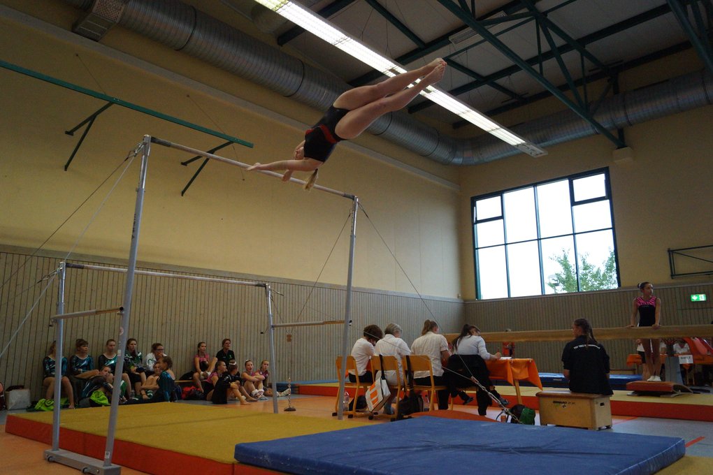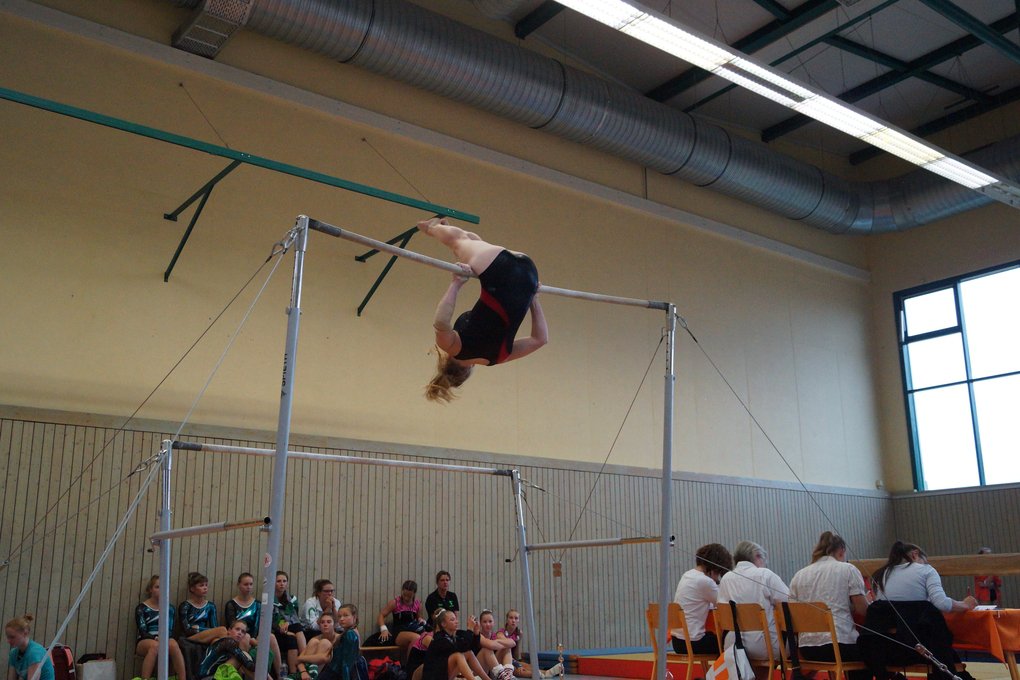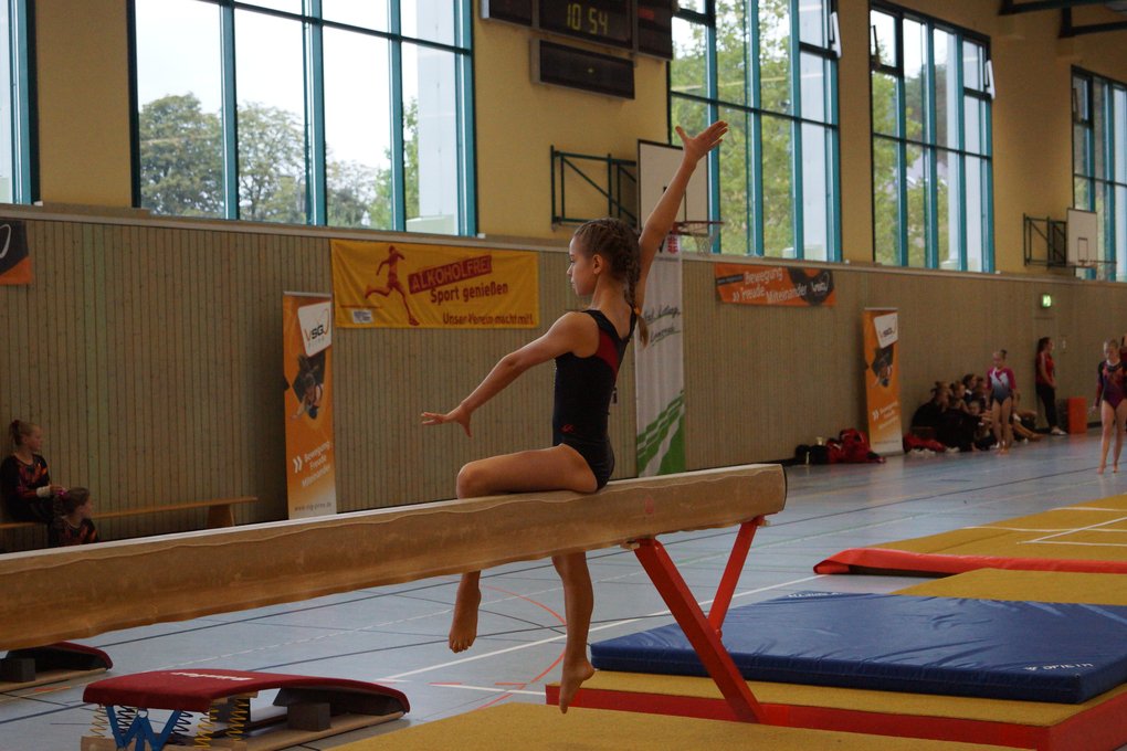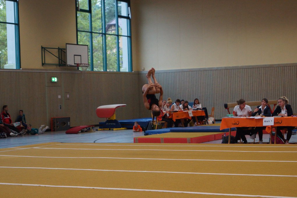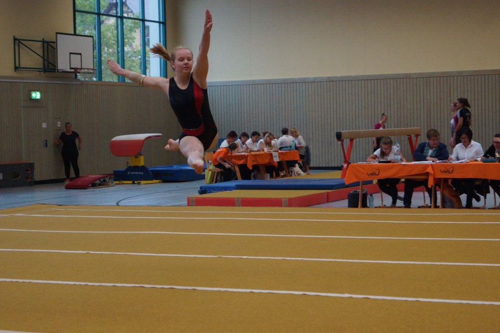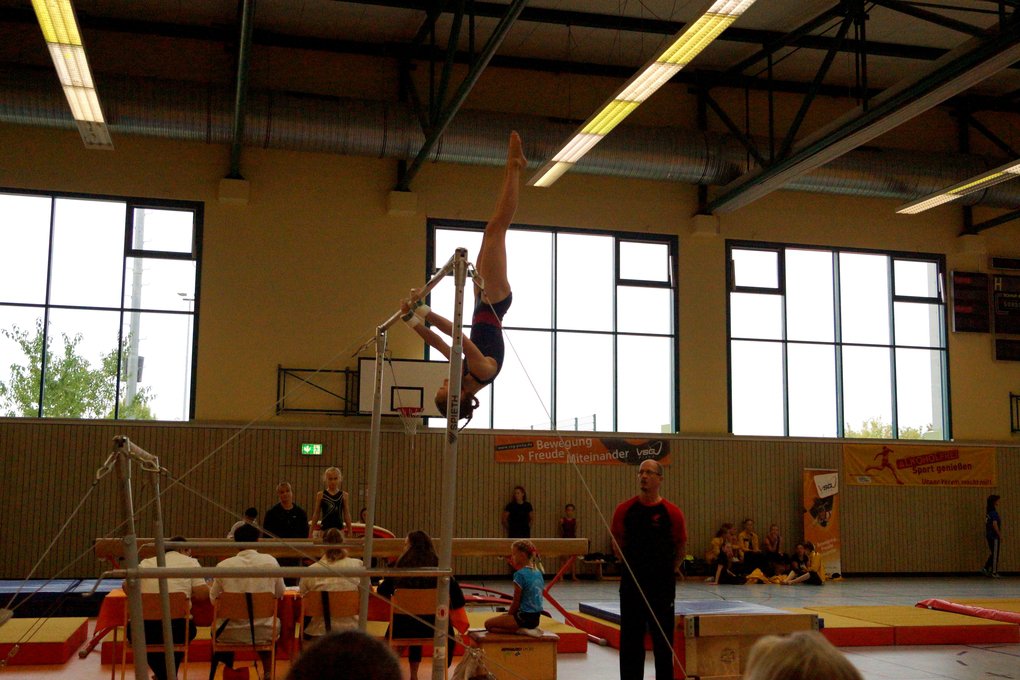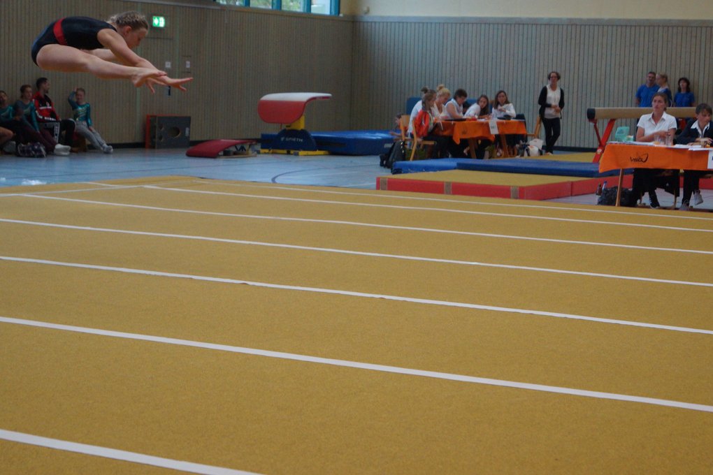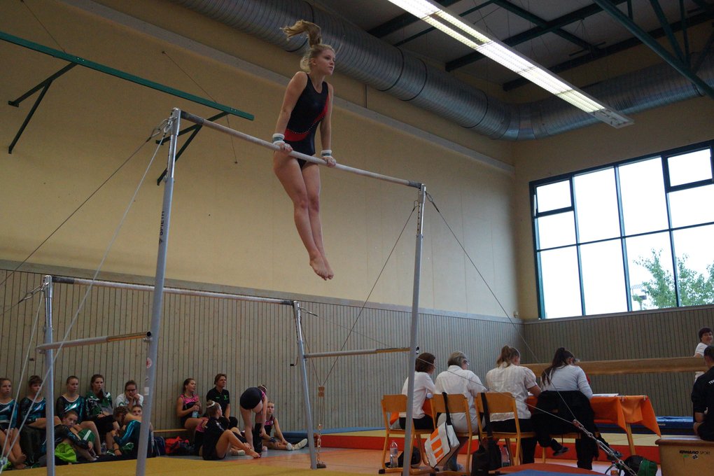 Nach nur drei Wochen Vorbereitung mussten sich unsere beiden Ligamannschaften in Pirna der schweren Aufgabe 2.Landesliga stellen. Vormittags begann unsere Mädchenmannschaft LK3. Mit viel Kampfgeist ging es an die Geräte. Nachdem am Stufenbarren alle ihre Übung präsentiert hatten, legte sich die erste Anspannung. Der Punktestand im Protokoll am Stufenbarren zeigte dann auch, das wir das beste Egebniss aller Mannschaften an diesem Gerät erturnten. Die anschließenden Übungen am Schwebebalken waren erwartungsgemäß noch etwas zittrig und alle waren froh das Gerät überstanden zu haben. Hier zeigten auch die anderen Mannschaften Nerven, was uns Platz drei an diesem Gerät bescherte. Weiter ging es zum Boden. Hier machte sich der Trainingsrückstand noch am deutlichsten bemerkbar. Auf der 12x12 m großen Matte wirkten unsere Übungen sehr zaghaft, was auch die Wertungen widerspiegelten. Nach dieser kleinen Enttäuschung ging es weiter zum Sprung. Dort gab es von Jasmin den besten Überschlag an diesem Tag. Auch die Anderen zeigten solide Sprünge. Nach diesem gelungenen Wettkampf war klar, dass wir uns keine Abstiegssorgen machen müssen. Der Jubel über den erreichten Platz 4 war entsprechend groß. Am Ende bedeutet dieser dismal sogar, dass wir im Oktober beim Relegationwettkampf noch einmal antreten dürfen.