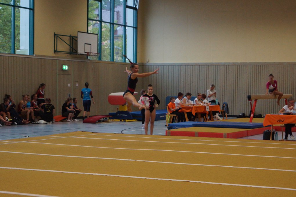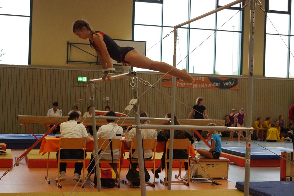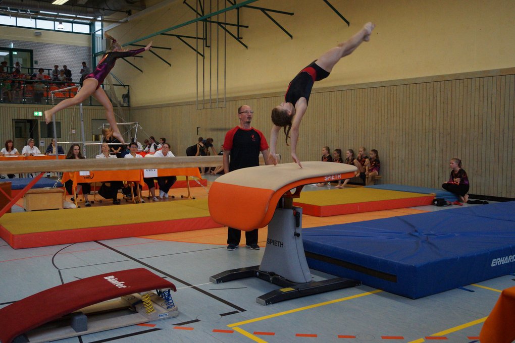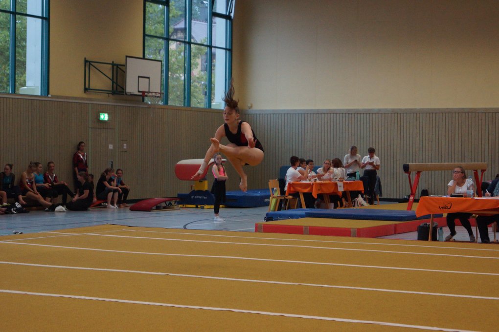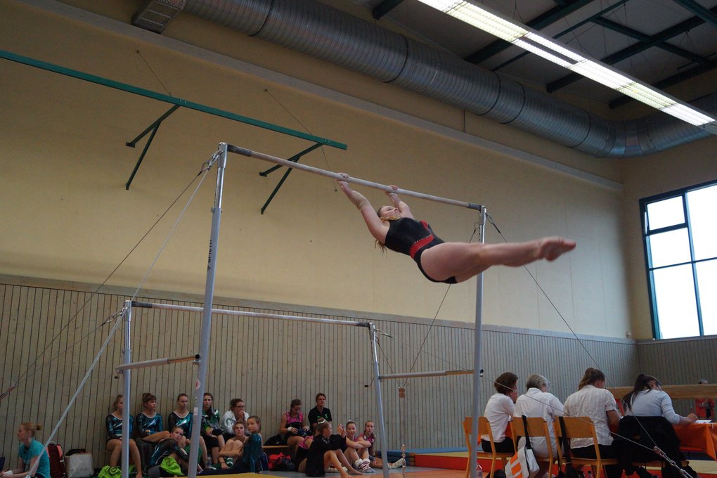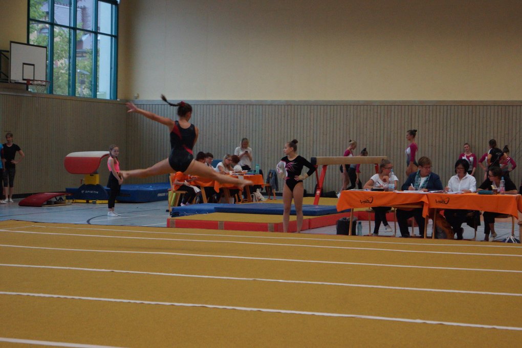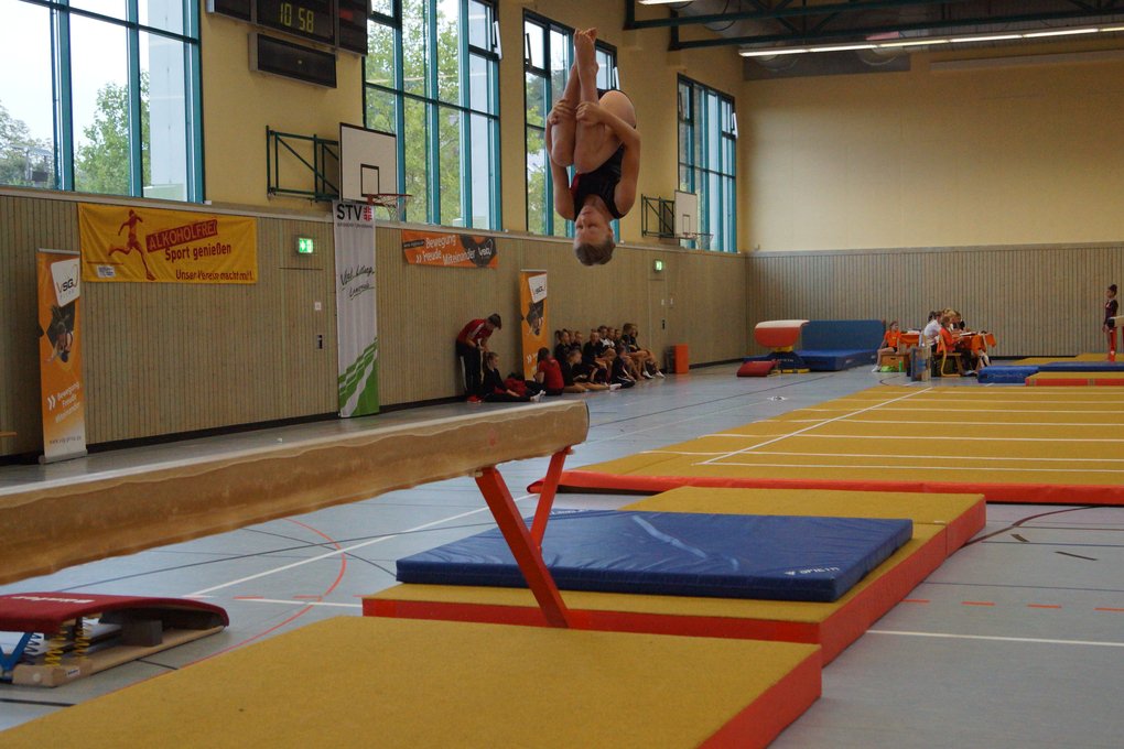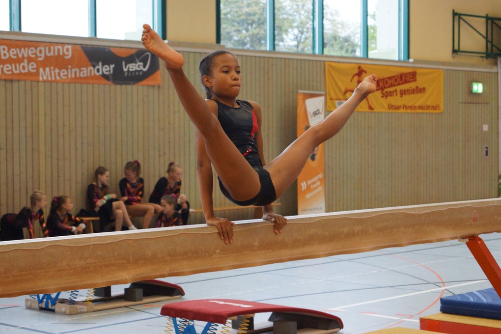 Nach nur drei Wochen Vorbereitung mussten sich unsere beiden Ligamannschaften in Pirna der schweren Aufgabe 2.Landesliga stellen. Vormittags begann unsere Mädchenmannschaft LK3. Mit viel Kampfgeist ging es an die Geräte. Nachdem am Stufenbarren alle ihre Übung präsentiert hatten, legte sich die erste Anspannung. Der Punktestand im Protokoll am Stufenbarren zeigte dann auch, das wir das beste Egebniss aller Mannschaften an diesem Gerät erturnten. Die anschließenden Übungen am Schwebebalken waren erwartungsgemäß noch etwas zittrig und alle waren froh das Gerät überstanden zu haben. Hier zeigten auch die anderen Mannschaften Nerven, was uns Platz drei an diesem Gerät bescherte. Weiter ging es zum Boden. Hier machte sich der Trainingsrückstand noch am deutlichsten bemerkbar. Auf der 12x12 m großen Matte wirkten unsere Übungen sehr zaghaft, was auch die Wertungen widerspiegelten. Nach dieser kleinen Enttäuschung ging es weiter zum Sprung. Dort gab es von Jasmin den besten Überschlag an diesem Tag. Auch die Anderen zeigten solide Sprünge. Nach diesem gelungenen Wettkampf war klar, dass wir uns keine Abstiegssorgen machen müssen. Der Jubel über den erreichten Platz 4 war entsprechend groß. Am Ende bedeutet dieser dismal sogar, dass wir im Oktober beim Relegationwettkampf noch einmal antreten dürfen.