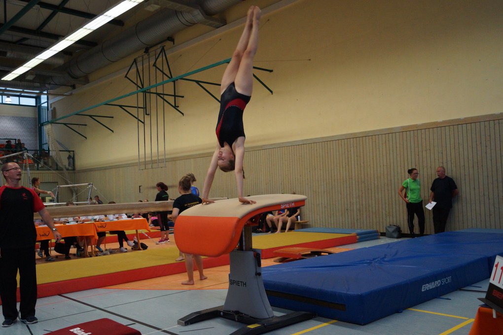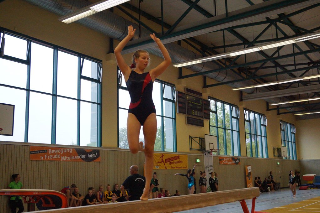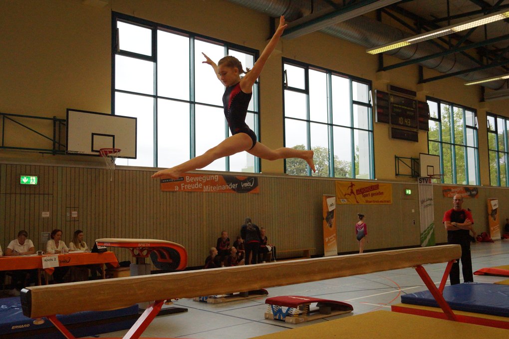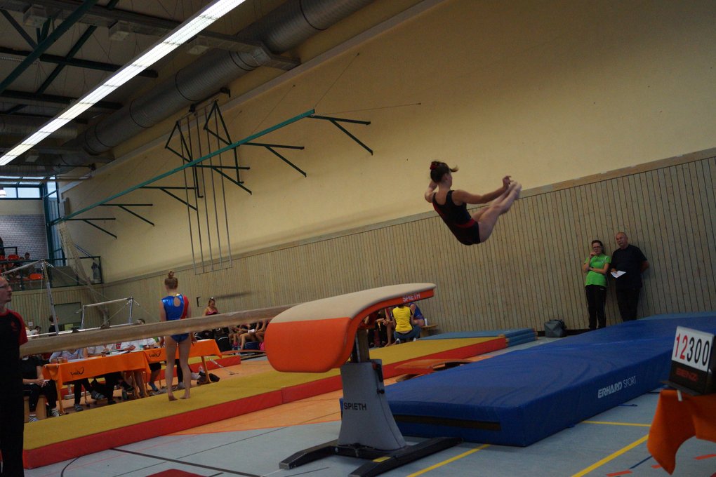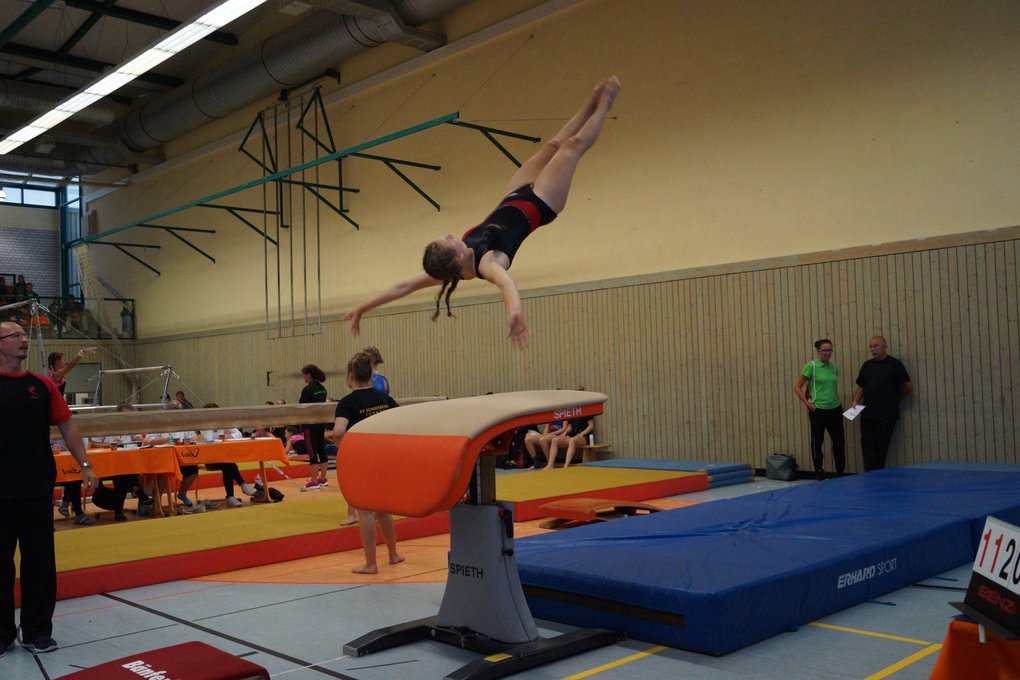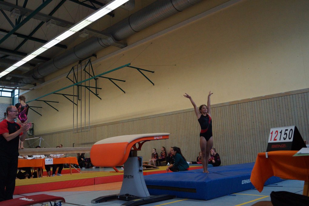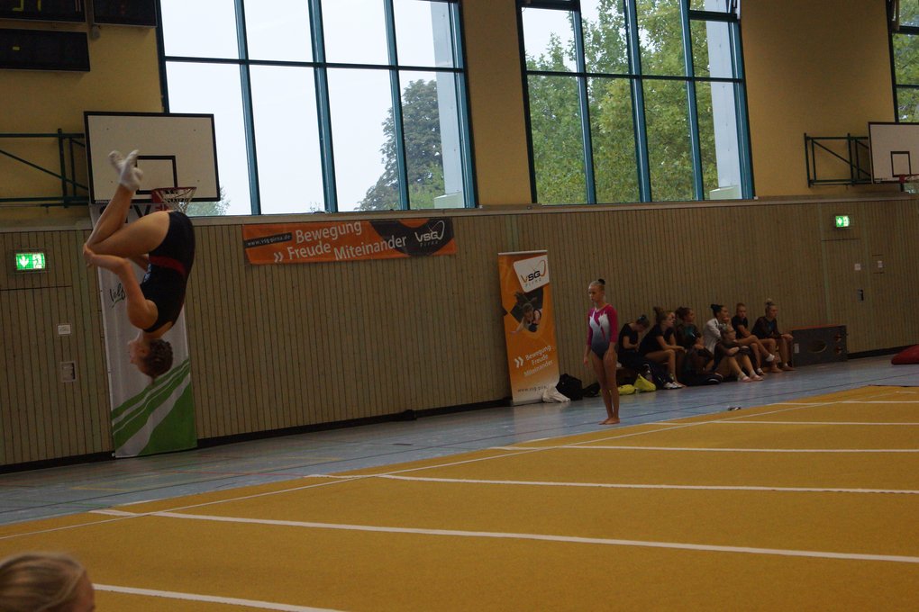 Nach nur drei Wochen Vorbereitung mussten sich unsere beiden Ligamannschaften in Pirna der schweren Aufgabe 2.Landesliga stellen. Vormittags begann unsere Mädchenmannschaft LK3. Mit viel Kampfgeist ging es an die Geräte. Nachdem am Stufenbarren alle ihre Übung präsentiert hatten, legte sich die erste Anspannung. Der Punktestand im Protokoll am Stufenbarren zeigte dann auch, das wir das beste Egebniss aller Mannschaften an diesem Gerät erturnten. Die anschließenden Übungen am Schwebebalken waren erwartungsgemäß noch etwas zittrig und alle waren froh das Gerät überstanden zu haben. Hier zeigten auch die anderen Mannschaften Nerven, was uns Platz drei an diesem Gerät bescherte. Weiter ging es zum Boden. Hier machte sich der Trainingsrückstand noch am deutlichsten bemerkbar. Auf der 12x12 m großen Matte wirkten unsere Übungen sehr zaghaft, was auch die Wertungen widerspiegelten. Nach dieser kleinen Enttäuschung ging es weiter zum Sprung. Dort gab es von Jasmin den besten Überschlag an diesem Tag. Auch die Anderen zeigten solide Sprünge. Nach diesem gelungenen Wettkampf war klar, dass wir uns keine Abstiegssorgen machen müssen. Der Jubel über den erreichten Platz 4 war entsprechend groß. Am Ende bedeutet dieser dismal sogar, dass wir im Oktober beim Relegationwettkampf noch einmal antreten dürfen.