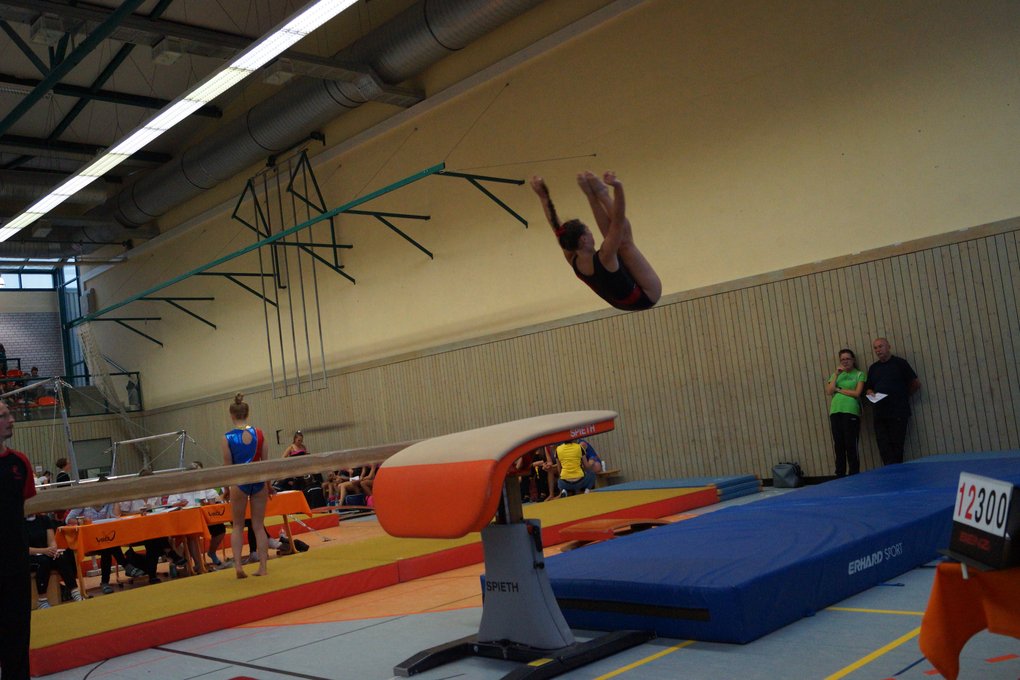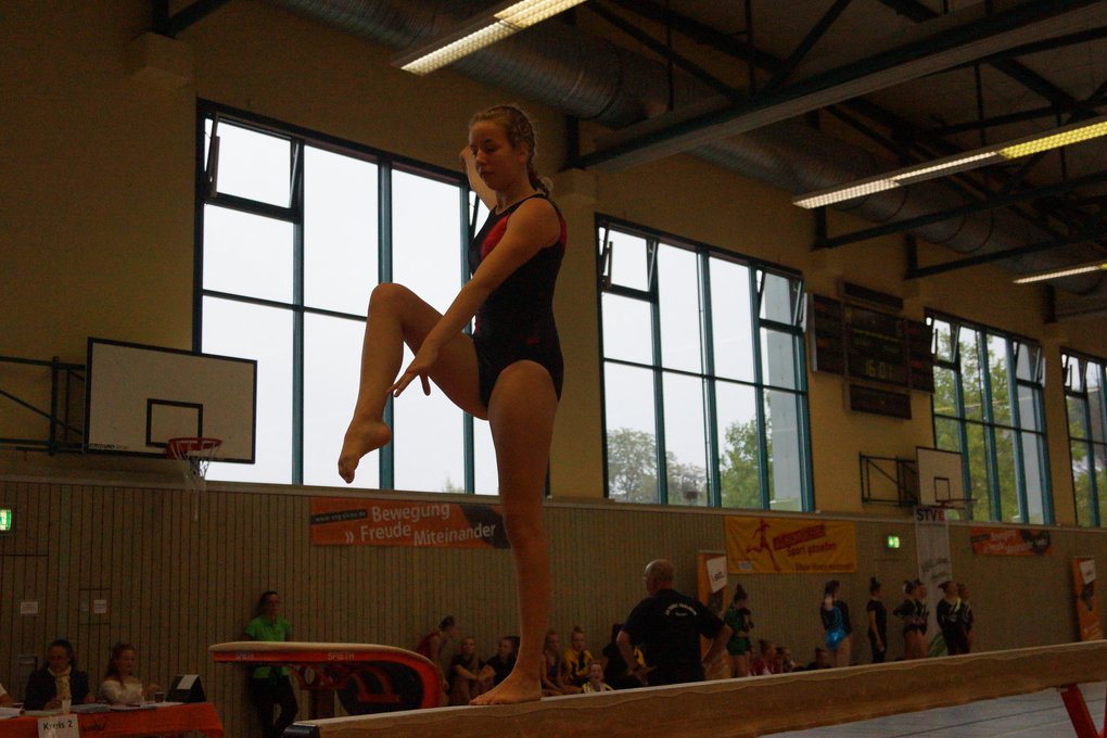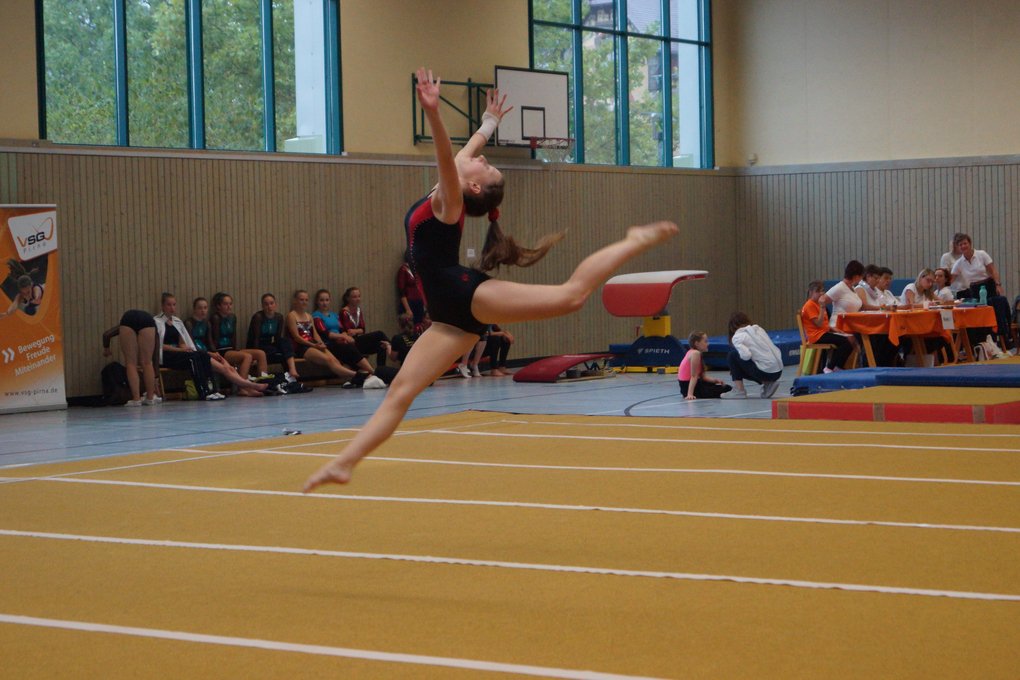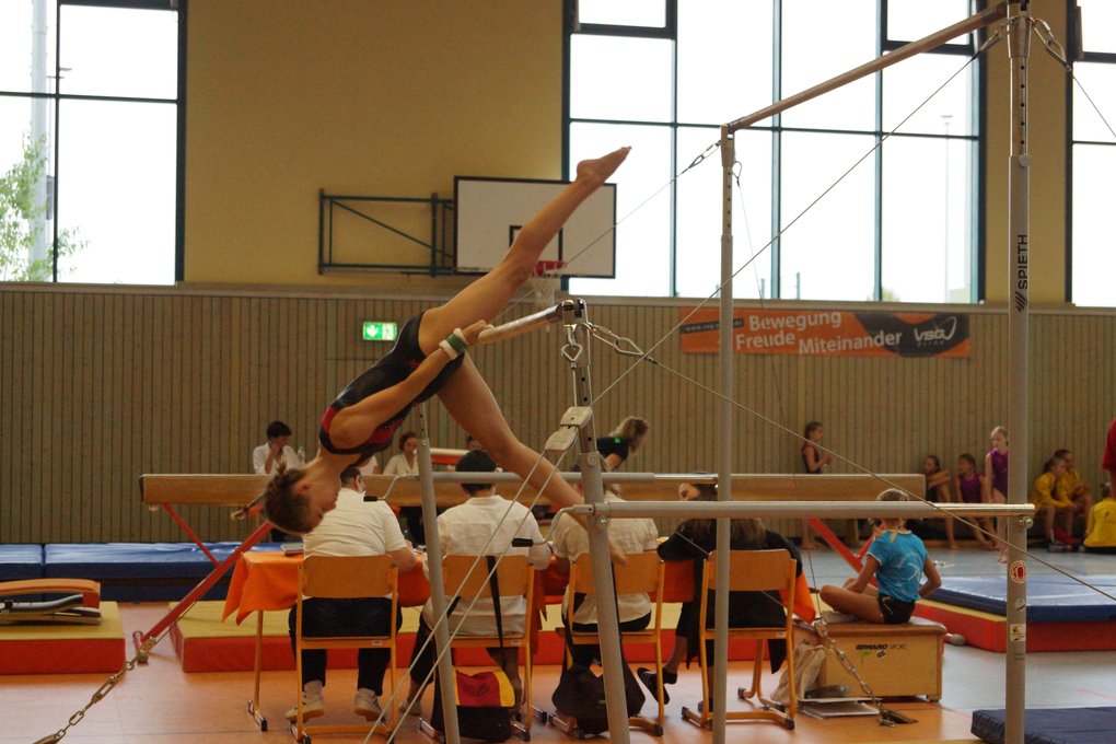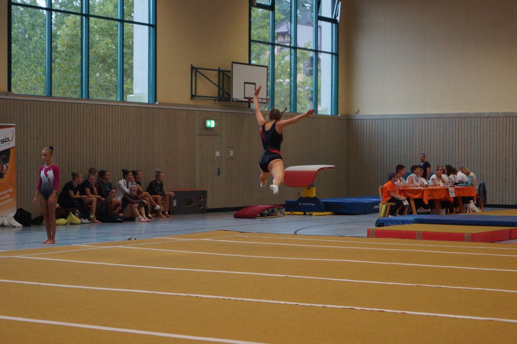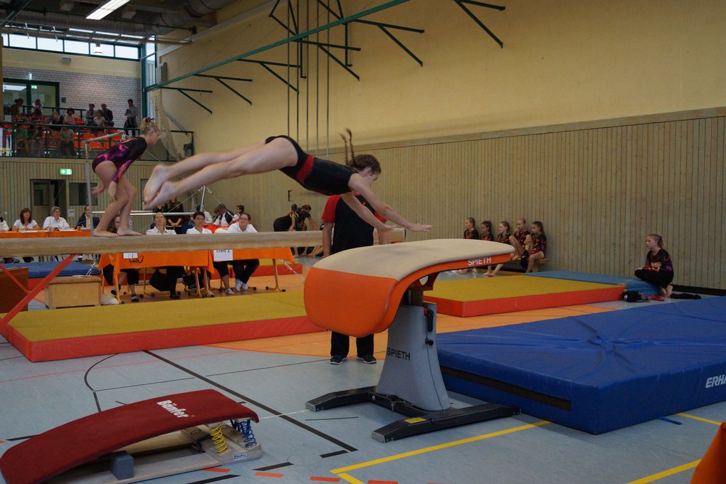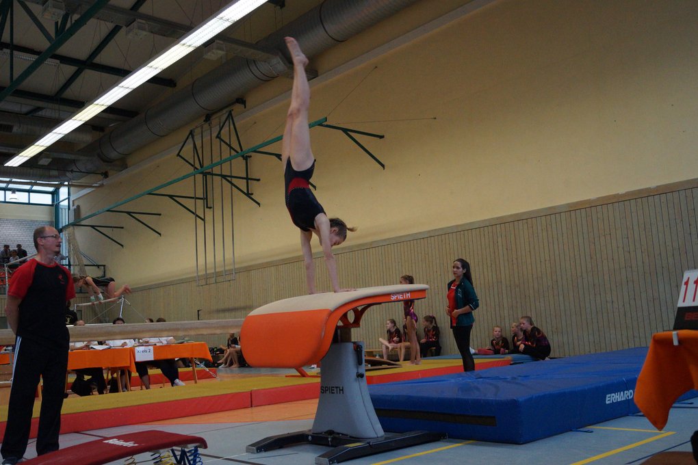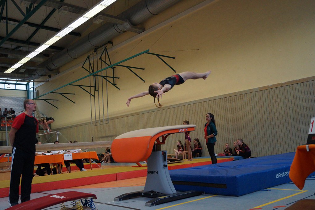 Nach nur drei Wochen Vorbereitung mussten sich unsere beiden Ligamannschaften in Pirna der schweren Aufgabe 2.Landesliga stellen. Vormittags begann unsere Mädchenmannschaft LK3. Mit viel Kampfgeist ging es an die Geräte. Nachdem am Stufenbarren alle ihre Übung präsentiert hatten, legte sich die erste Anspannung. Der Punktestand im Protokoll am Stufenbarren zeigte dann auch, das wir das beste Egebniss aller Mannschaften an diesem Gerät erturnten. Die anschließenden Übungen am Schwebebalken waren erwartungsgemäß noch etwas zittrig und alle waren froh das Gerät überstanden zu haben. Hier zeigten auch die anderen Mannschaften Nerven, was uns Platz drei an diesem Gerät bescherte. Weiter ging es zum Boden. Hier machte sich der Trainingsrückstand noch am deutlichsten bemerkbar. Auf der 12x12 m großen Matte wirkten unsere Übungen sehr zaghaft, was auch die Wertungen widerspiegelten. Nach dieser kleinen Enttäuschung ging es weiter zum Sprung. Dort gab es von Jasmin den besten Überschlag an diesem Tag. Auch die Anderen zeigten solide Sprünge. Nach diesem gelungenen Wettkampf war klar, dass wir uns keine Abstiegssorgen machen müssen. Der Jubel über den erreichten Platz 4 war entsprechend groß. Am Ende bedeutet dieser dismal sogar, dass wir im Oktober beim Relegationwettkampf noch einmal antreten dürfen.