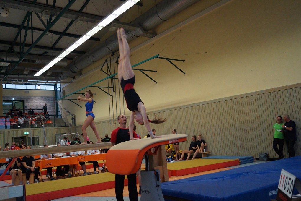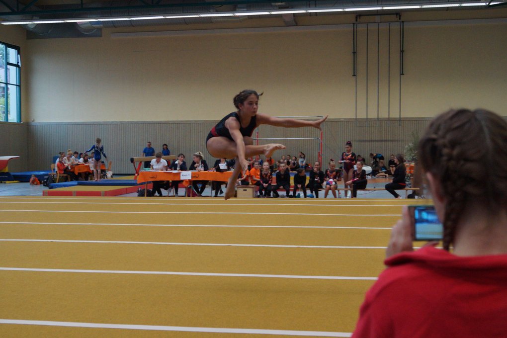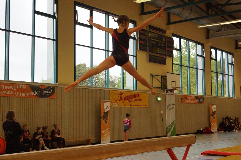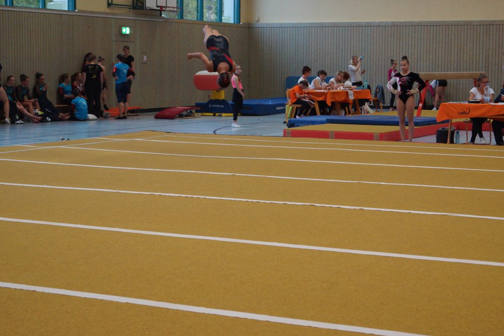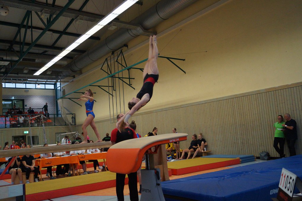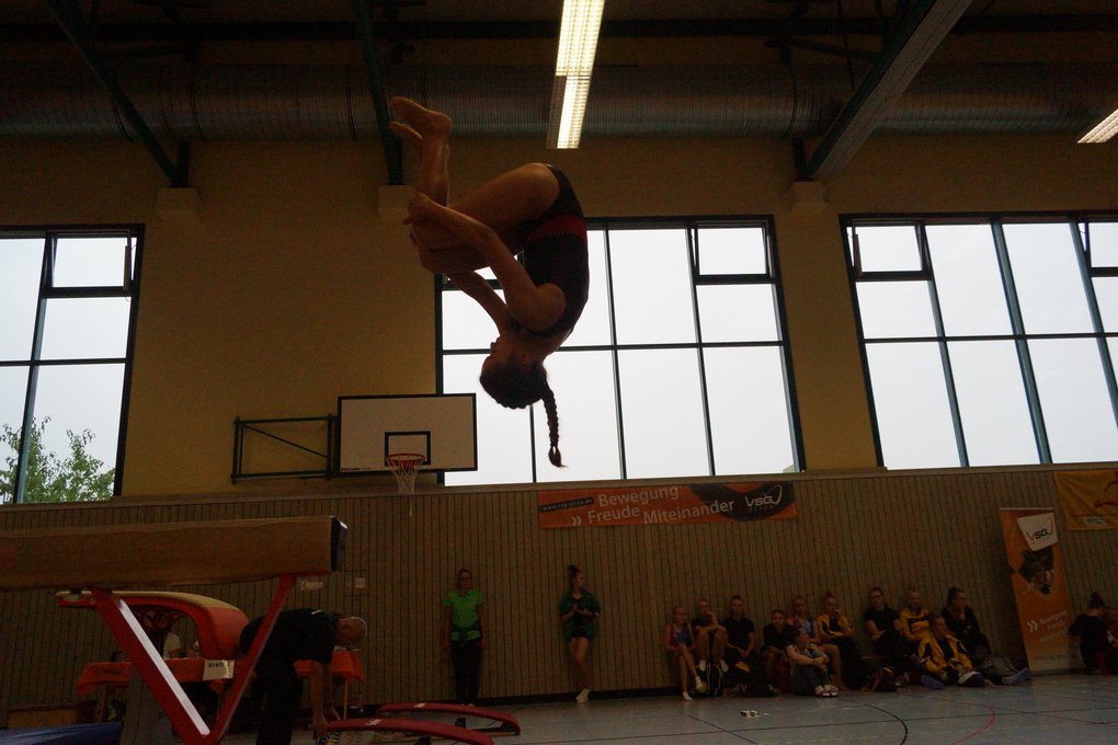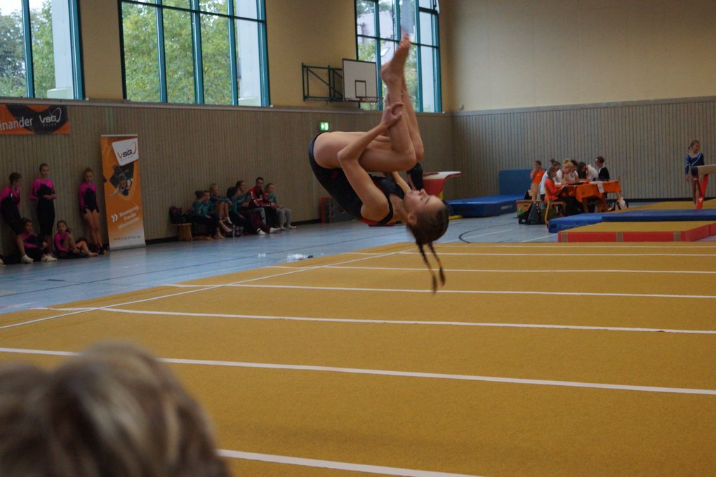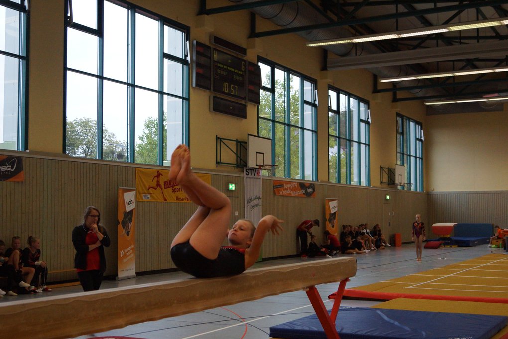 Nach nur drei Wochen Vorbereitung mussten sich unsere beiden Ligamannschaften in Pirna der schweren Aufgabe 2.Landesliga stellen. Vormittags begann unsere Mädchenmannschaft LK3. Mit viel Kampfgeist ging es an die Geräte. Nachdem am Stufenbarren alle ihre Übung präsentiert hatten, legte sich die erste Anspannung. Der Punktestand im Protokoll am Stufenbarren zeigte dann auch, das wir das beste Egebniss aller Mannschaften an diesem Gerät erturnten. Die anschließenden Übungen am Schwebebalken waren erwartungsgemäß noch etwas zittrig und alle waren froh das Gerät überstanden zu haben. Hier zeigten auch die anderen Mannschaften Nerven, was uns Platz drei an diesem Gerät bescherte. Weiter ging es zum Boden. Hier machte sich der Trainingsrückstand noch am deutlichsten bemerkbar. Auf der 12x12 m großen Matte wirkten unsere Übungen sehr zaghaft, was auch die Wertungen widerspiegelten. Nach dieser kleinen Enttäuschung ging es weiter zum Sprung. Dort gab es von Jasmin den besten Überschlag an diesem Tag. Auch die Anderen zeigten solide Sprünge. Nach diesem gelungenen Wettkampf war klar, dass wir uns keine Abstiegssorgen machen müssen. Der Jubel über den erreichten Platz 4 war entsprechend groß. Am Ende bedeutet dieser dismal sogar, dass wir im Oktober beim Relegationwettkampf noch einmal antreten dürfen.