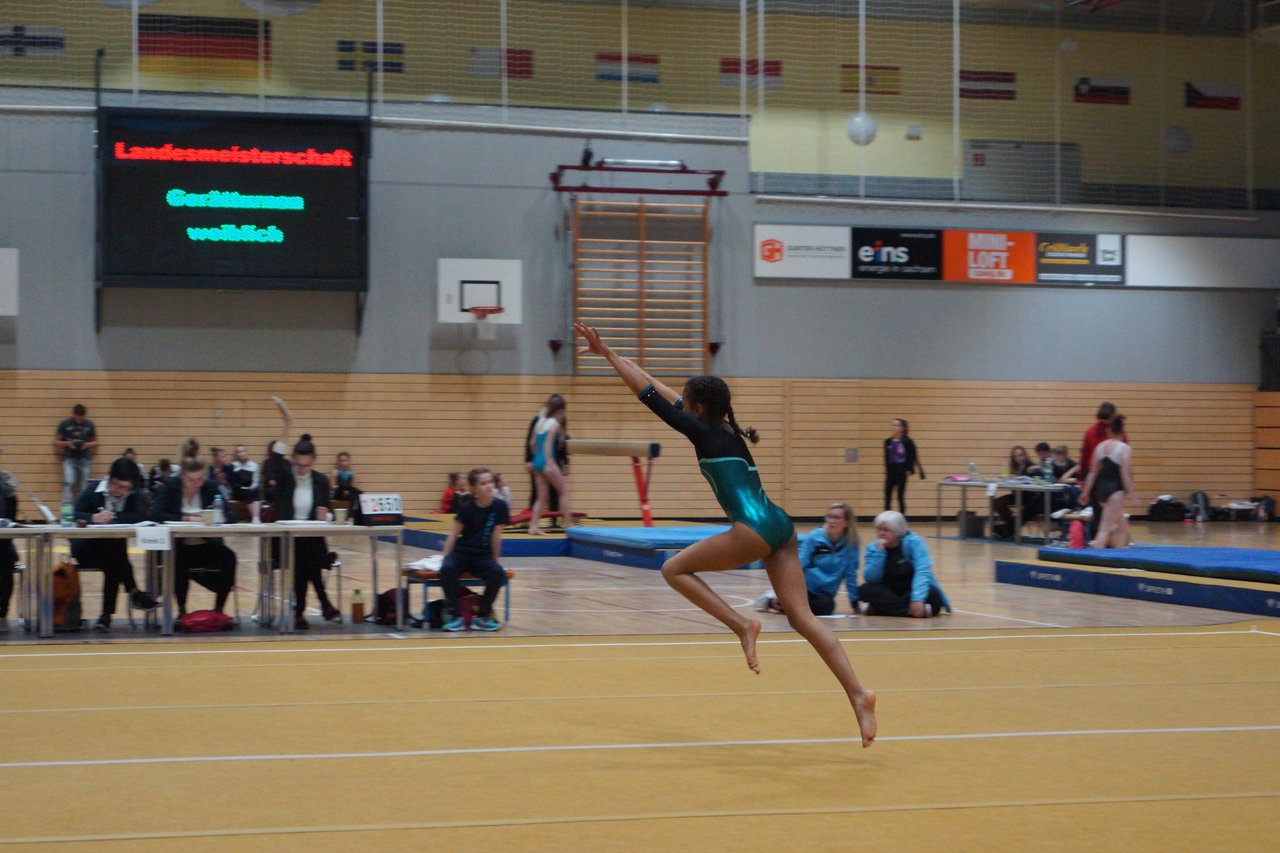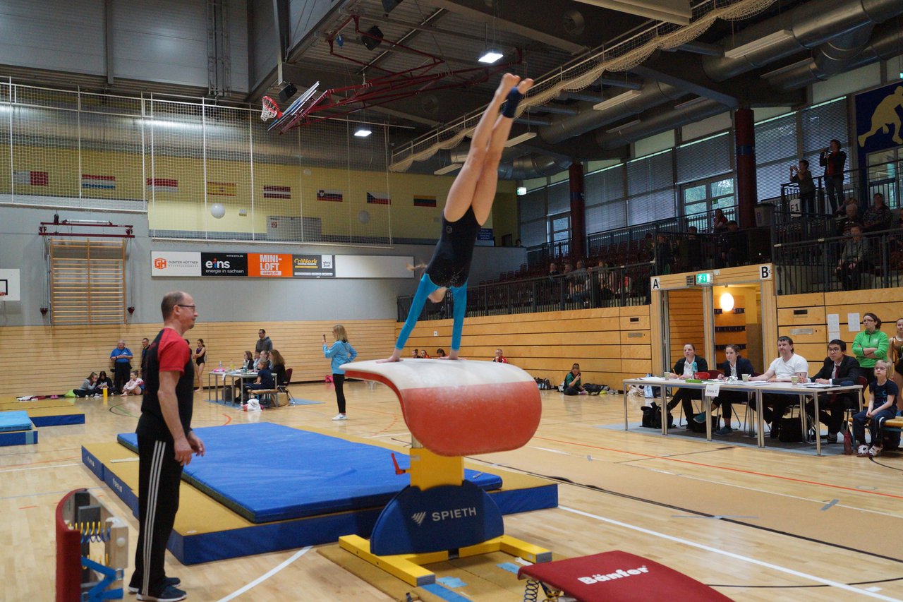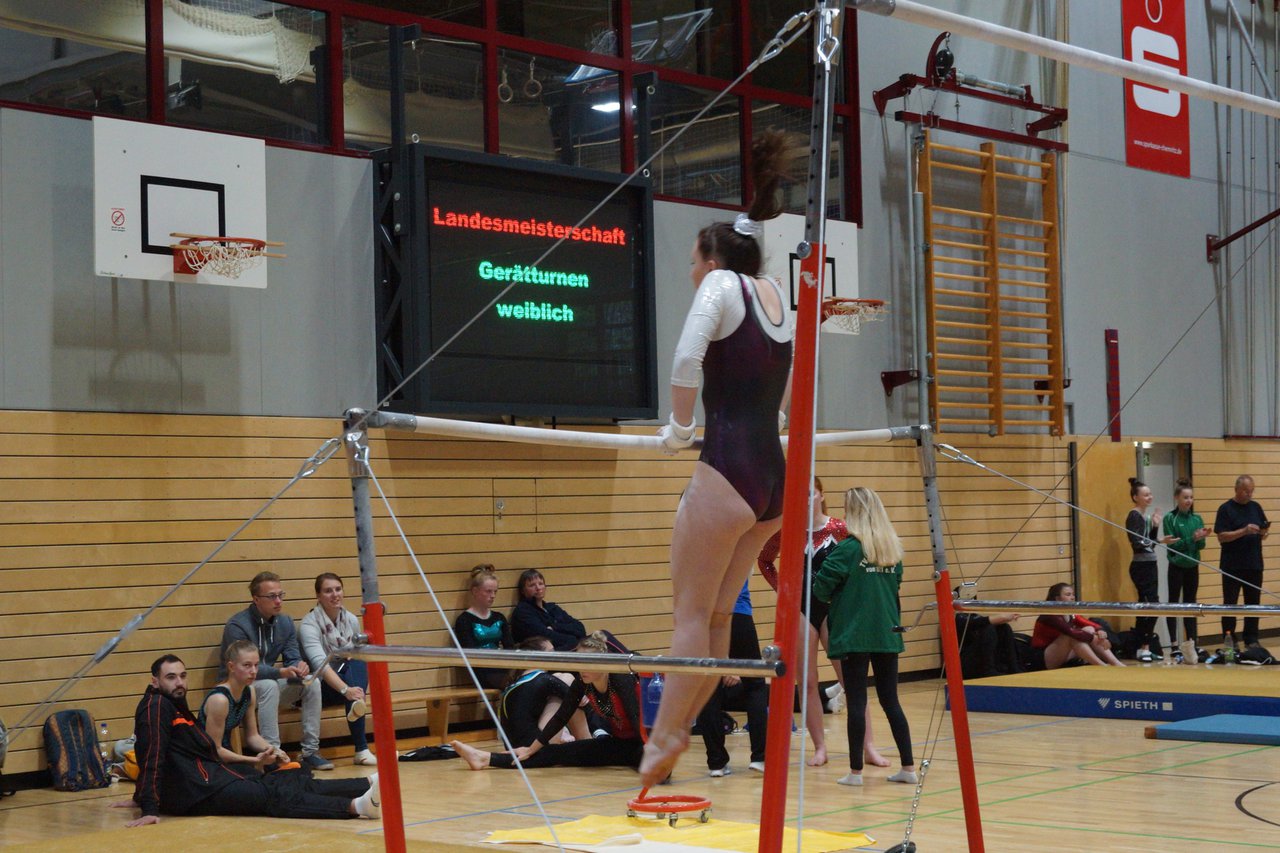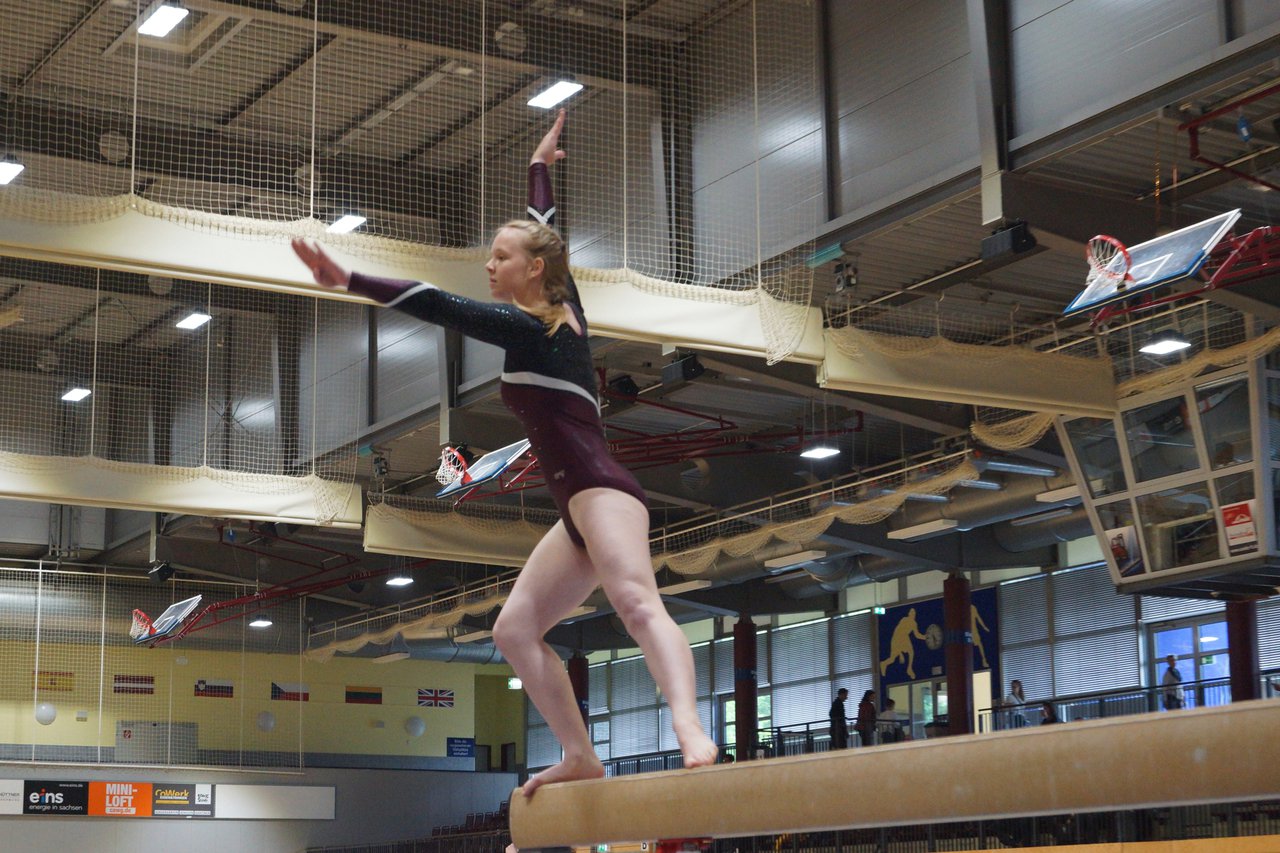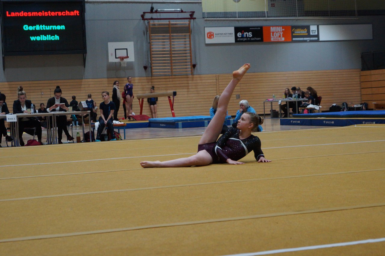 In der wie immer perfekt vorbereiteten Chemnitzer Richard Hartmann kämpften am 11. Mai sechs Turnerinnen unseres Vereines um die begehrten Sachsenmeister- Titel in der LK 3. Alle hatten sich viel vorgenommen und sehr fleißig für diesen Höhepunkt trainiert. In der AK 12/13 gingen Emely, Ivie und Milena an den Start. Für Milena und Ivie war das die erste Sachsenmeisterschaft in der LK 3, nachdem sie im letzten Jahr 3. und 6. in der LK4 belegt hatten. Leider lief es am Schwebebalken nicht optimal und am Boden wurden nicht alle Schwierigkeiten anerkannt, so dass nur Platz 10 (Ivie) und 14 (Milena) heraus kamen. Emely, inzwischen ein "alter Hase" in dieser Klasse bewies wieder einmal starke Nerven an allen Geräten. Sie zeigte die beste Stufenbarrenübung und verbesserte ihre Leistung am Boden mit einer neuen Übung noch einmal deutlich. Am Ende errang sie die Bronzemedaille. Alma startete eine Altersklasse höher und zeigte solide Leistungen, konnte aber bei den Älteren noch nicht mithalten. Am Ende wurde es Platz 15. Am Nachmittag gingen Marla (AK 16/17) und Felicitas (AK 18+) für uns an den Start. Für Marla war es die erste Sachsenmeisterschaft im Kürbereich. Leider kostete sie ein Sturz vom Balken die Chance auf Platz 6. Am Ende wurde sie 11. Felicitas turnte wie gewohnt durch, verpasste durch einige Wackler am Balken und etwas niedrige Wertungen an ihren Paradegeräten Sprung und Barren ganz knapp die Bronzemedaille.