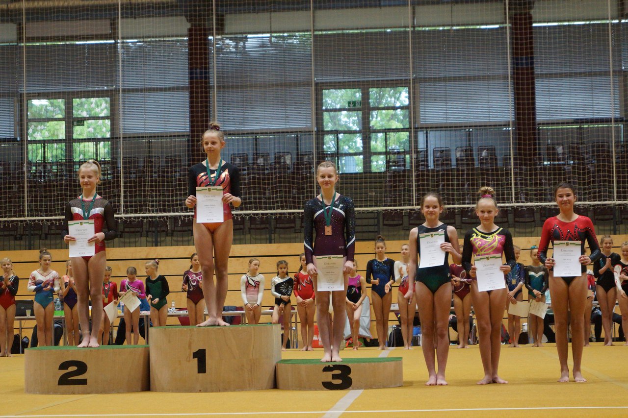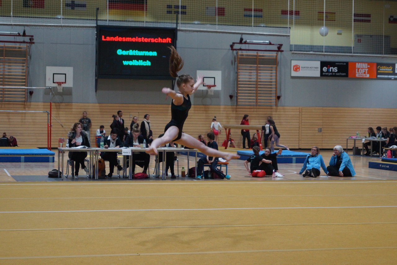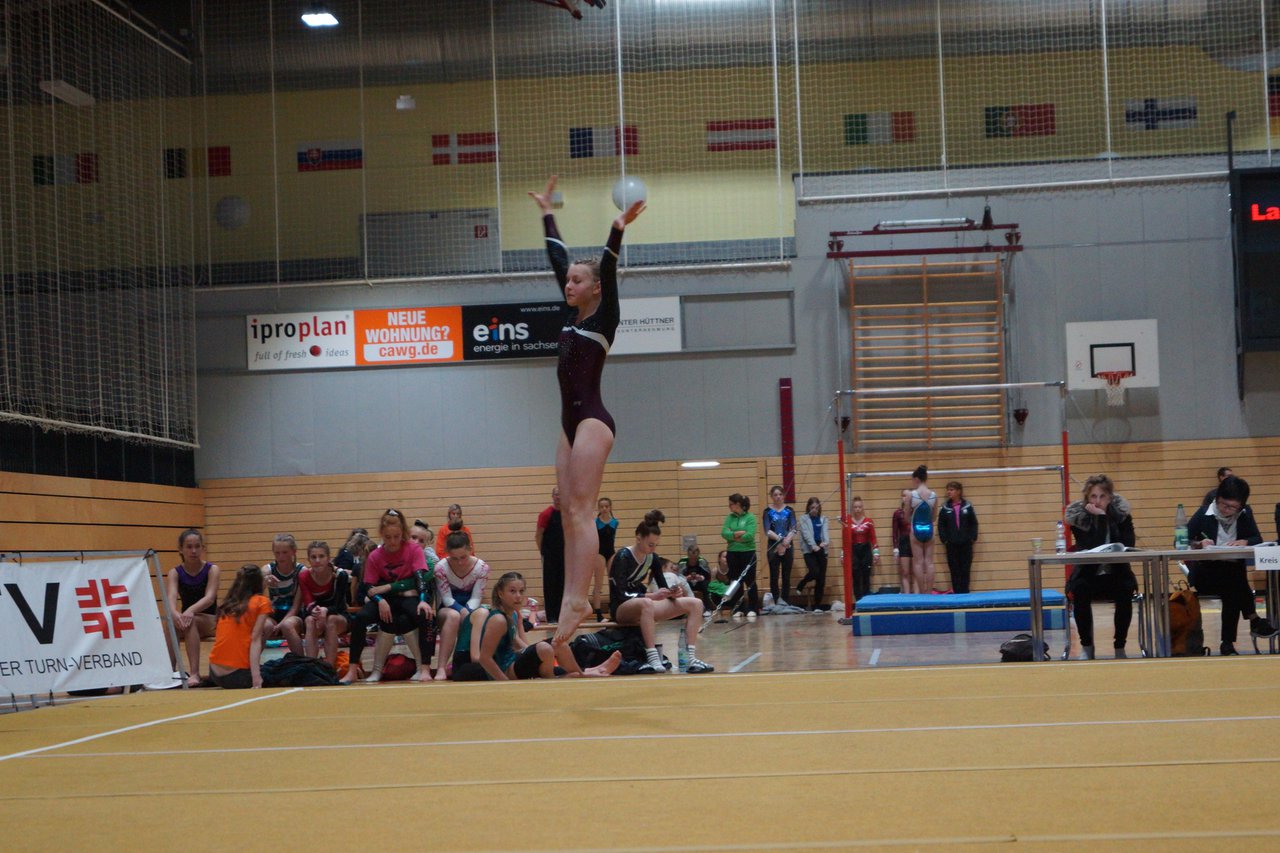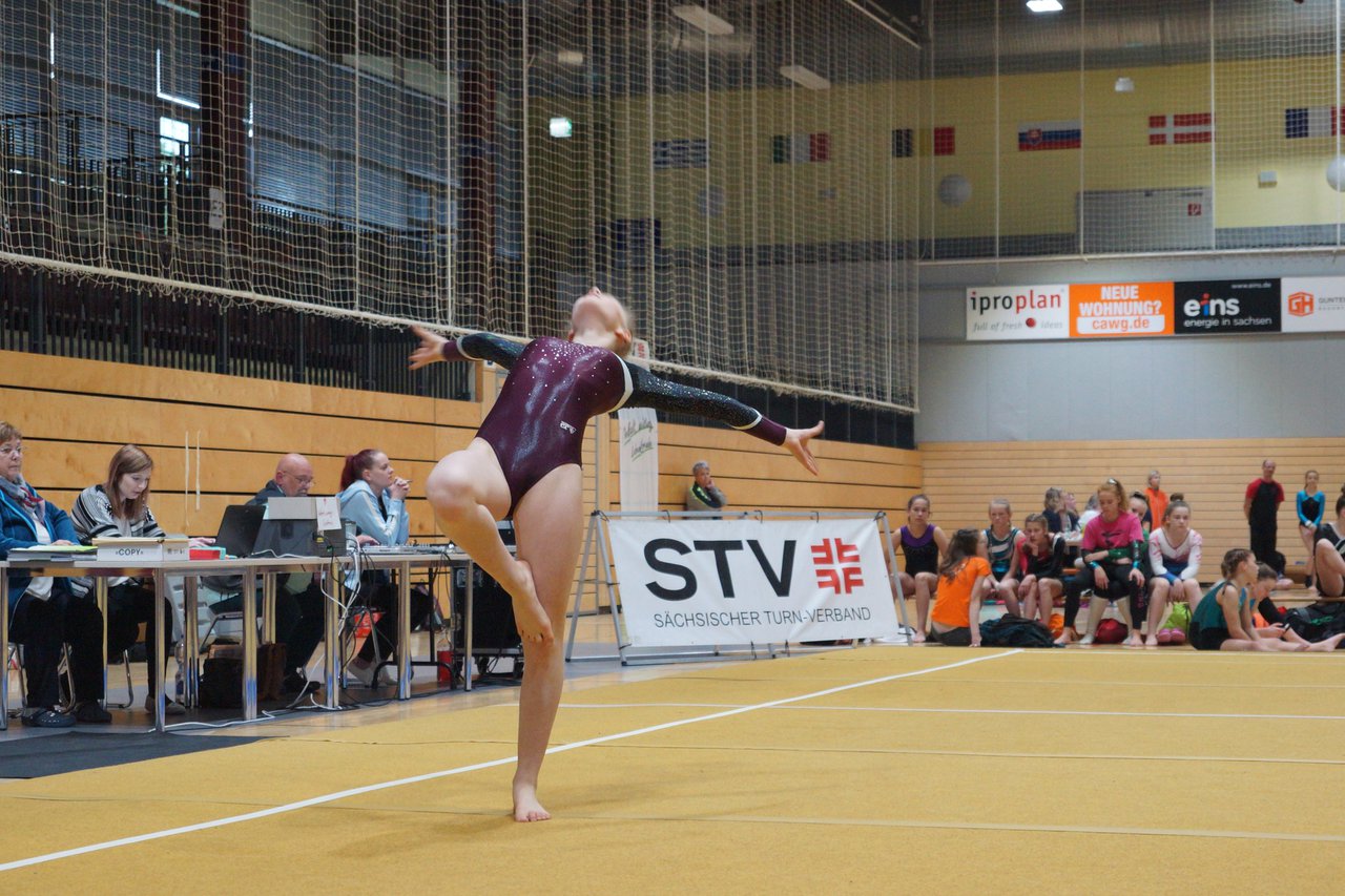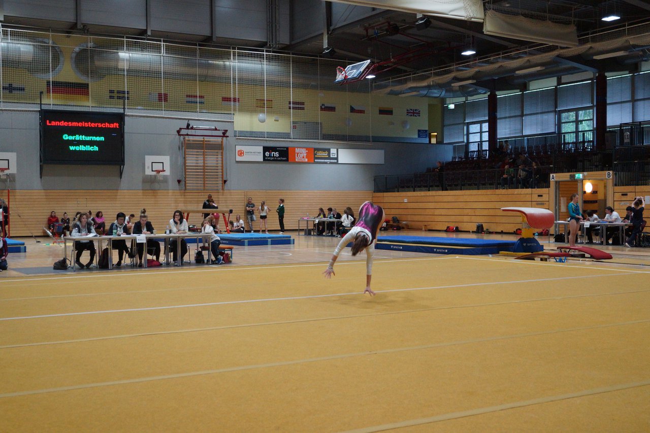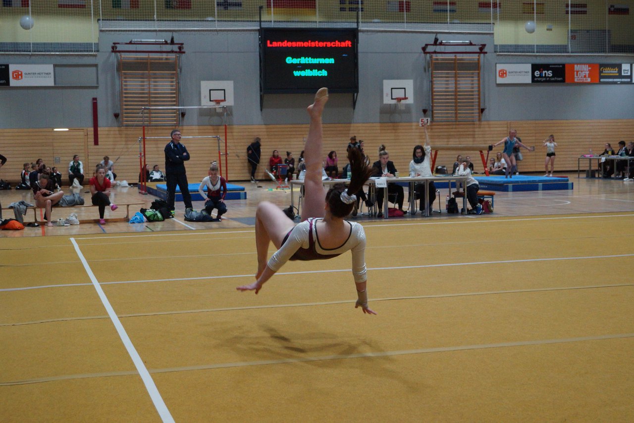 In der wie immer perfekt vorbereiteten Chemnitzer Richard Hartmann kämpften am 11. Mai sechs Turnerinnen unseres Vereines um die begehrten Sachsenmeister- Titel in der LK 3. Alle hatten sich viel vorgenommen und sehr fleißig für diesen Höhepunkt trainiert. In der AK 12/13 gingen Emely, Ivie und Milena an den Start. Für Milena und Ivie war das die erste Sachsenmeisterschaft in der LK 3, nachdem sie im letzten Jahr 3. und 6. in der LK4 belegt hatten. Leider lief es am Schwebebalken nicht optimal und am Boden wurden nicht alle Schwierigkeiten anerkannt, so dass nur Platz 10 (Ivie) und 14 (Milena) heraus kamen. Emely, inzwischen ein "alter Hase" in dieser Klasse bewies wieder einmal starke Nerven an allen Geräten. Sie zeigte die beste Stufenbarrenübung und verbesserte ihre Leistung am Boden mit einer neuen Übung noch einmal deutlich. Am Ende errang sie die Bronzemedaille. Alma startete eine Altersklasse höher und zeigte solide Leistungen, konnte aber bei den Älteren noch nicht mithalten. Am Ende wurde es Platz 15. Am Nachmittag gingen Marla (AK 16/17) und Felicitas (AK 18+) für uns an den Start. Für Marla war es die erste Sachsenmeisterschaft im Kürbereich. Leider kostete sie ein Sturz vom Balken die Chance auf Platz 6. Am Ende wurde sie 11. Felicitas turnte wie gewohnt durch, verpasste durch einige Wackler am Balken und etwas niedrige Wertungen an ihren Paradegeräten Sprung und Barren ganz knapp die Bronzemedaille.