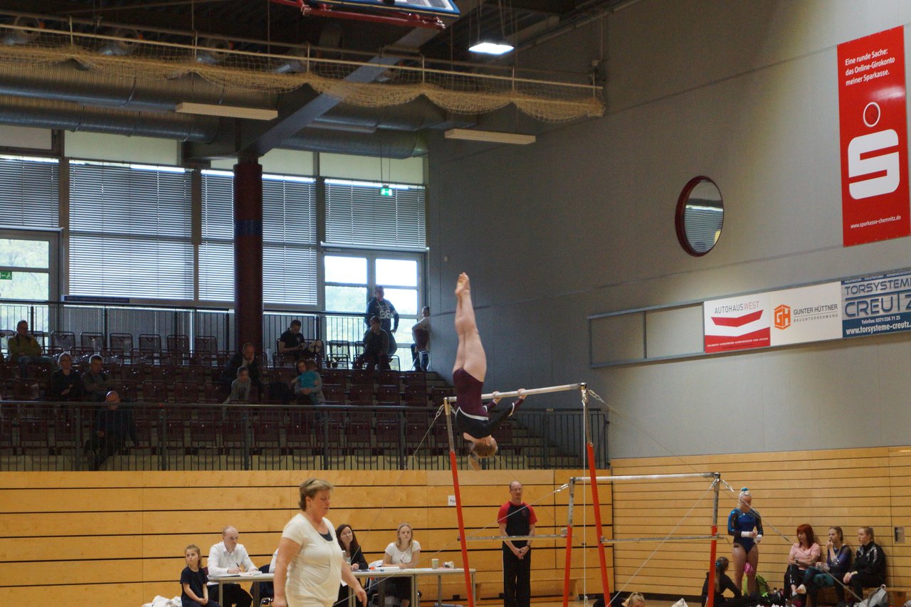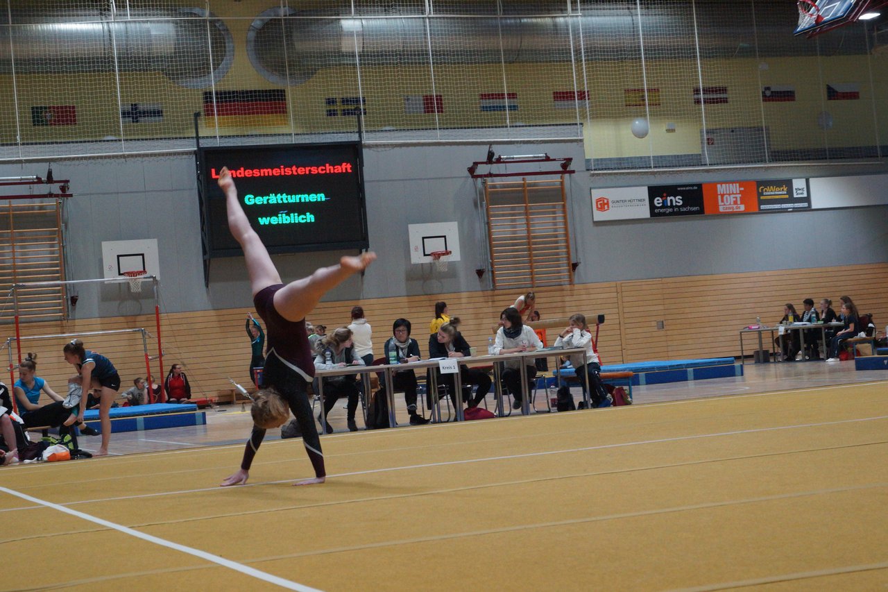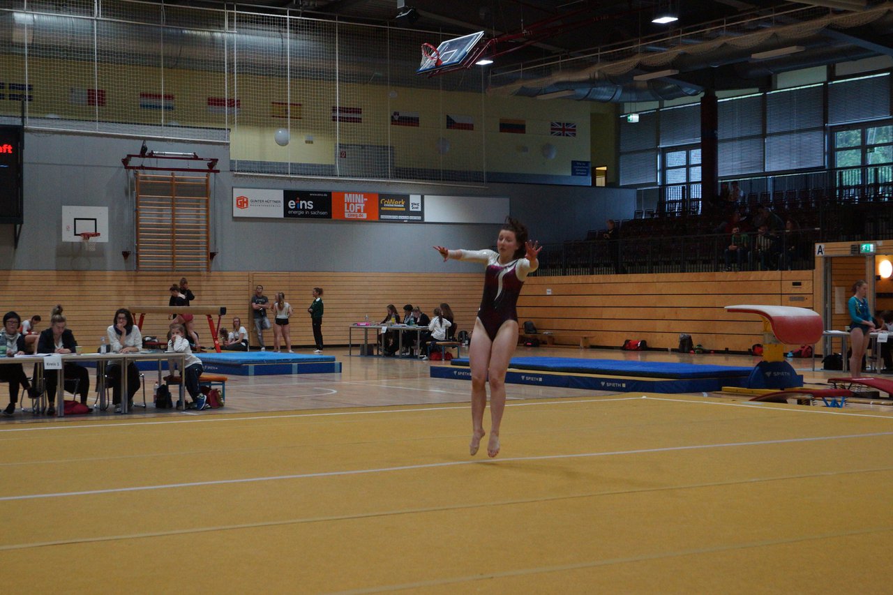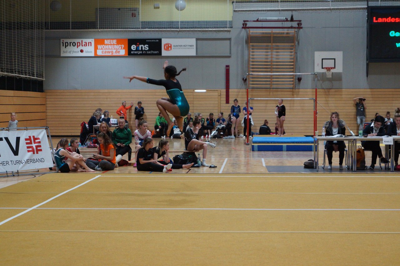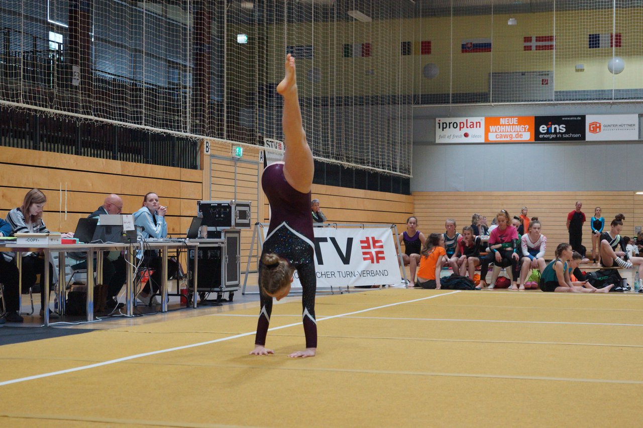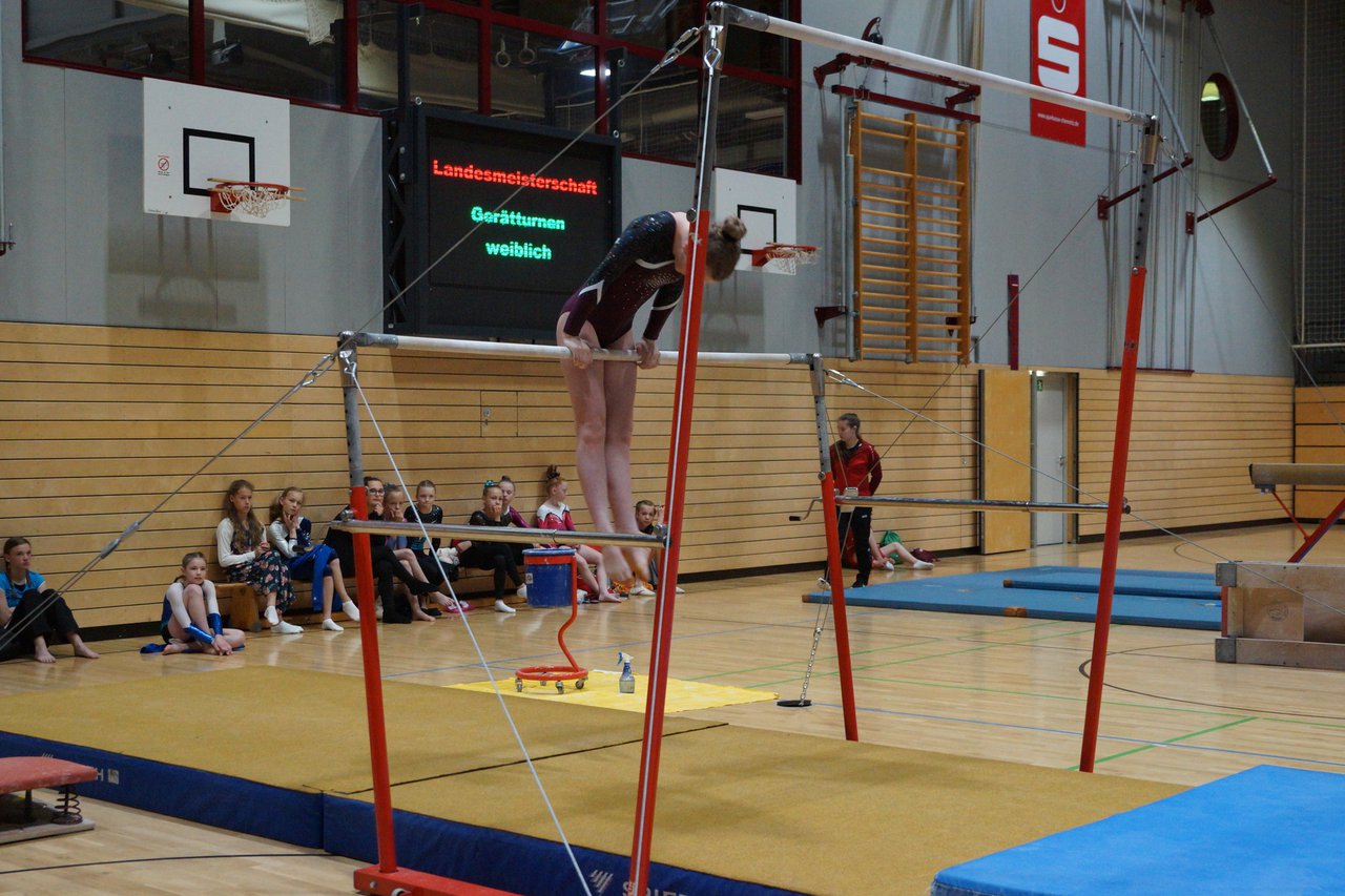 In der wie immer perfekt vorbereiteten Chemnitzer Richard Hartmann kämpften am 11. Mai sechs Turnerinnen unseres Vereines um die begehrten Sachsenmeister- Titel in der LK 3. Alle hatten sich viel vorgenommen und sehr fleißig für diesen Höhepunkt trainiert. In der AK 12/13 gingen Emely, Ivie und Milena an den Start. Für Milena und Ivie war das die erste Sachsenmeisterschaft in der LK 3, nachdem sie im letzten Jahr 3. und 6. in der LK4 belegt hatten. Leider lief es am Schwebebalken nicht optimal und am Boden wurden nicht alle Schwierigkeiten anerkannt, so dass nur Platz 10 (Ivie) und 14 (Milena) heraus kamen. Emely, inzwischen ein "alter Hase" in dieser Klasse bewies wieder einmal starke Nerven an allen Geräten. Sie zeigte die beste Stufenbarrenübung und verbesserte ihre Leistung am Boden mit einer neuen Übung noch einmal deutlich. Am Ende errang sie die Bronzemedaille. Alma startete eine Altersklasse höher und zeigte solide Leistungen, konnte aber bei den Älteren noch nicht mithalten. Am Ende wurde es Platz 15. Am Nachmittag gingen Marla (AK 16/17) und Felicitas (AK 18+) für uns an den Start. Für Marla war es die erste Sachsenmeisterschaft im Kürbereich. Leider kostete sie ein Sturz vom Balken die Chance auf Platz 6. Am Ende wurde sie 11. Felicitas turnte wie gewohnt durch, verpasste durch einige Wackler am Balken und etwas niedrige Wertungen an ihren Paradegeräten Sprung und Barren ganz knapp die Bronzemedaille.