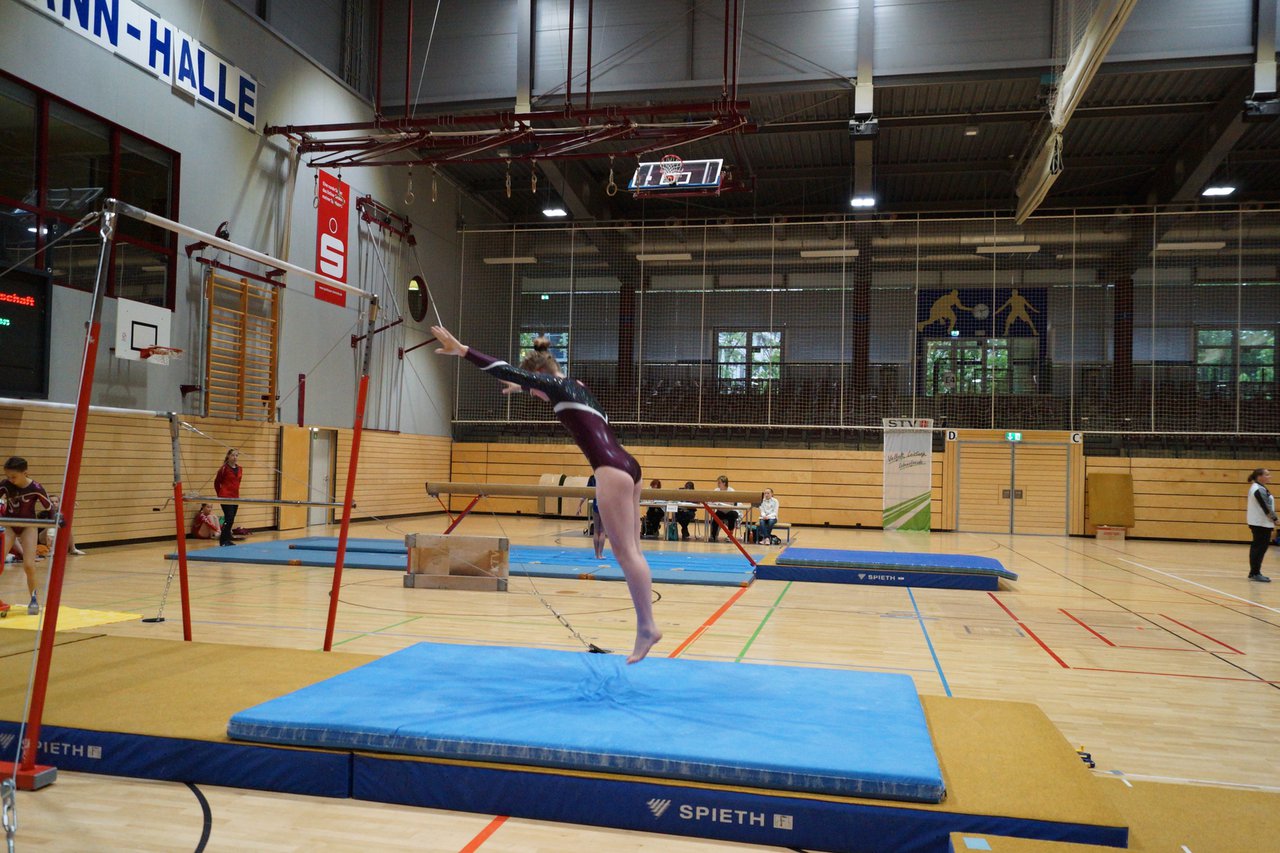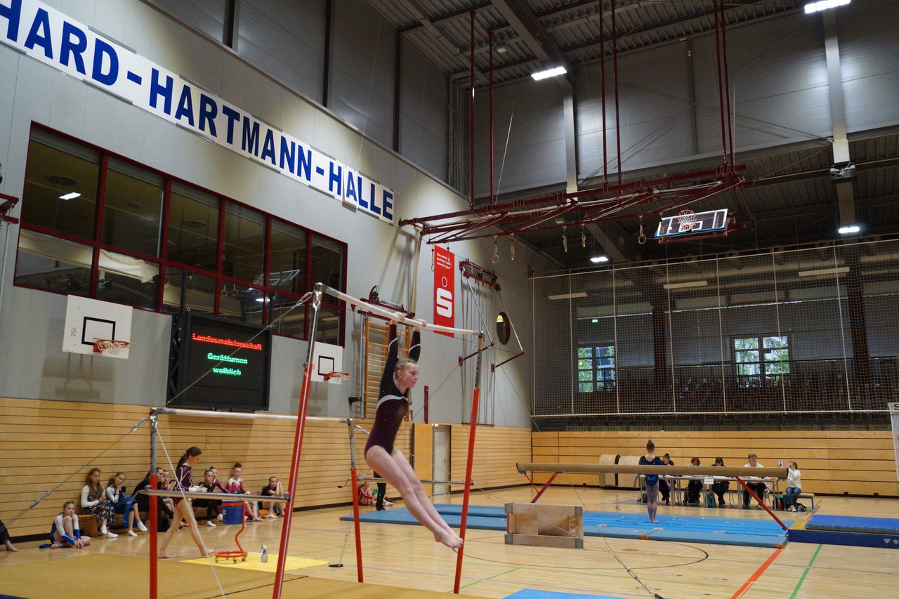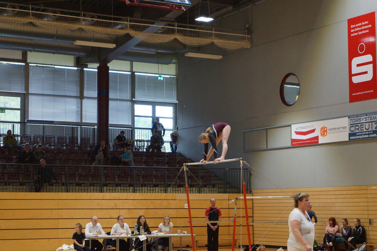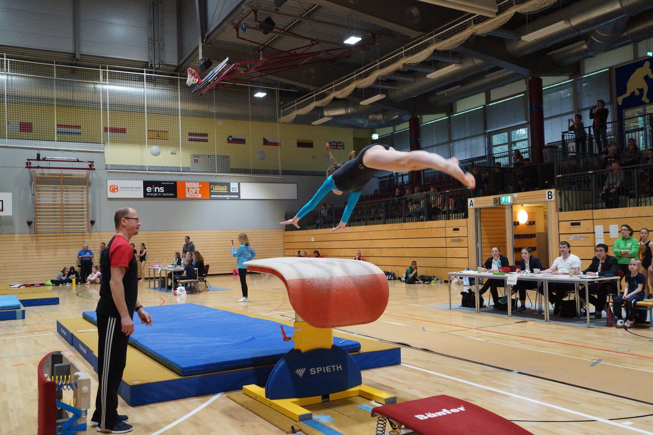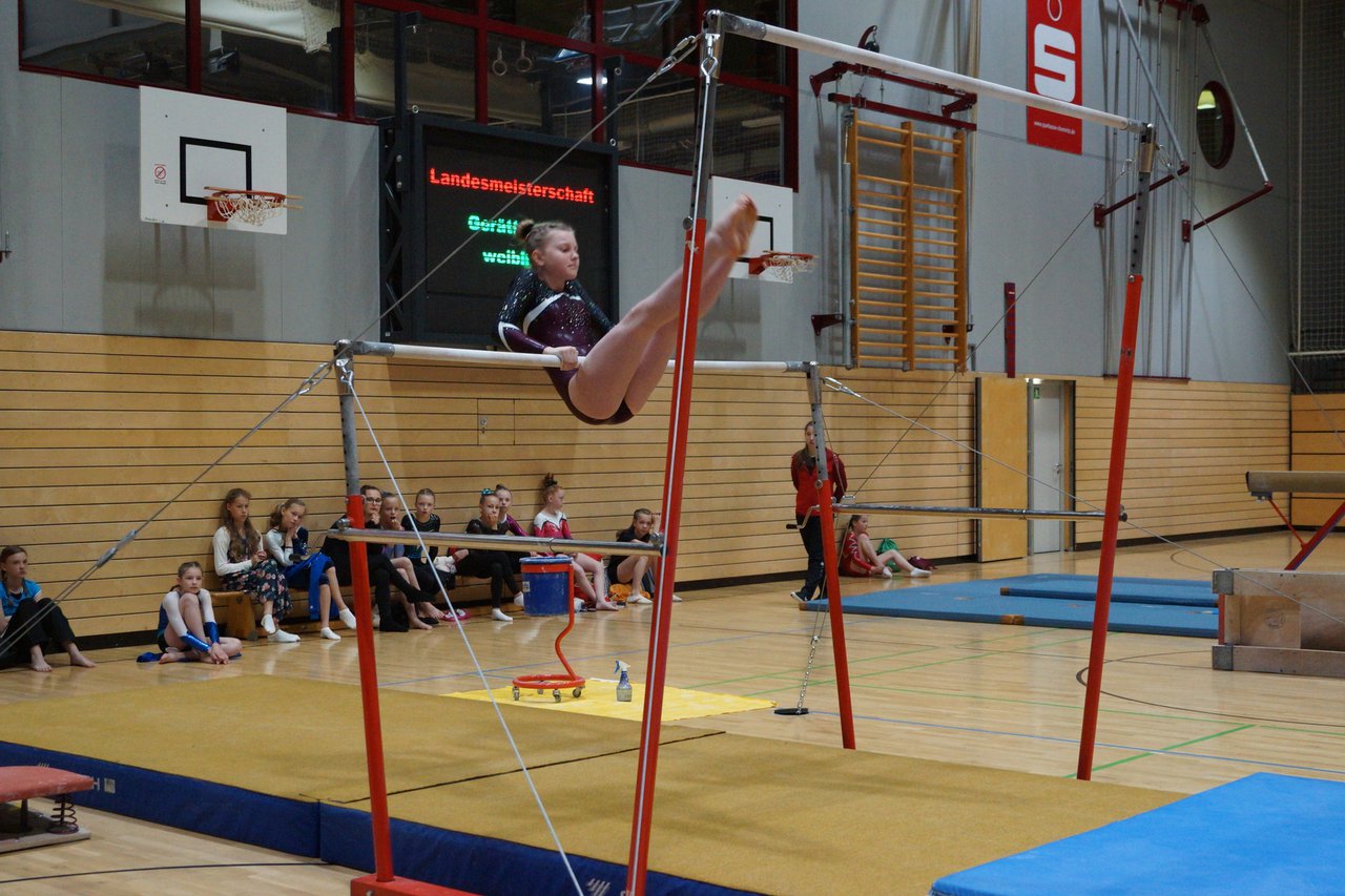 In der wie immer perfekt vorbereiteten Chemnitzer Richard Hartmann kämpften am 11. Mai sechs Turnerinnen unseres Vereines um die begehrten Sachsenmeister- Titel in der LK 3. Alle hatten sich viel vorgenommen und sehr fleißig für diesen Höhepunkt trainiert. In der AK 12/13 gingen Emely, Ivie und Milena an den Start. Für Milena und Ivie war das die erste Sachsenmeisterschaft in der LK 3, nachdem sie im letzten Jahr 3. und 6. in der LK4 belegt hatten. Leider lief es am Schwebebalken nicht optimal und am Boden wurden nicht alle Schwierigkeiten anerkannt, so dass nur Platz 10 (Ivie) und 14 (Milena) heraus kamen. Emely, inzwischen ein "alter Hase" in dieser Klasse bewies wieder einmal starke Nerven an allen Geräten. Sie zeigte die beste Stufenbarrenübung und verbesserte ihre Leistung am Boden mit einer neuen Übung noch einmal deutlich. Am Ende errang sie die Bronzemedaille. Alma startete eine Altersklasse höher und zeigte solide Leistungen, konnte aber bei den Älteren noch nicht mithalten. Am Ende wurde es Platz 15. Am Nachmittag gingen Marla (AK 16/17) und Felicitas (AK 18+) für uns an den Start. Für Marla war es die erste Sachsenmeisterschaft im Kürbereich. Leider kostete sie ein Sturz vom Balken die Chance auf Platz 6. Am Ende wurde sie 11. Felicitas turnte wie gewohnt durch, verpasste durch einige Wackler am Balken und etwas niedrige Wertungen an ihren Paradegeräten Sprung und Barren ganz knapp die Bronzemedaille.