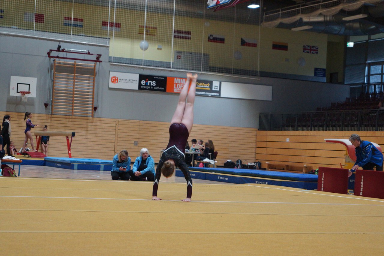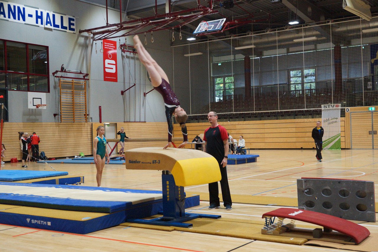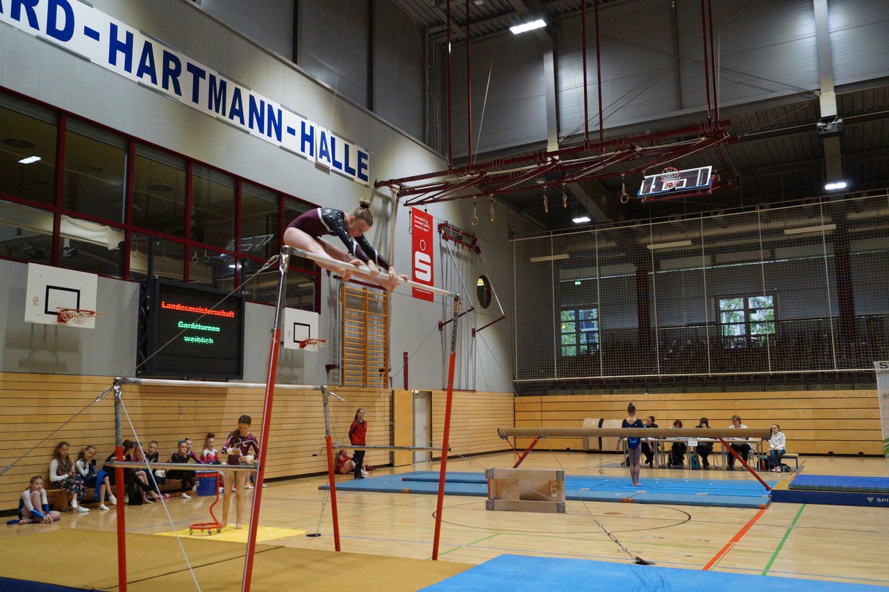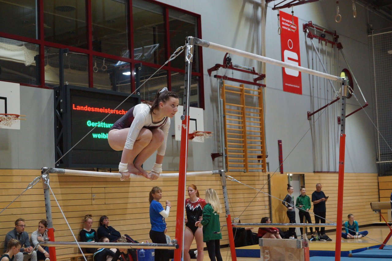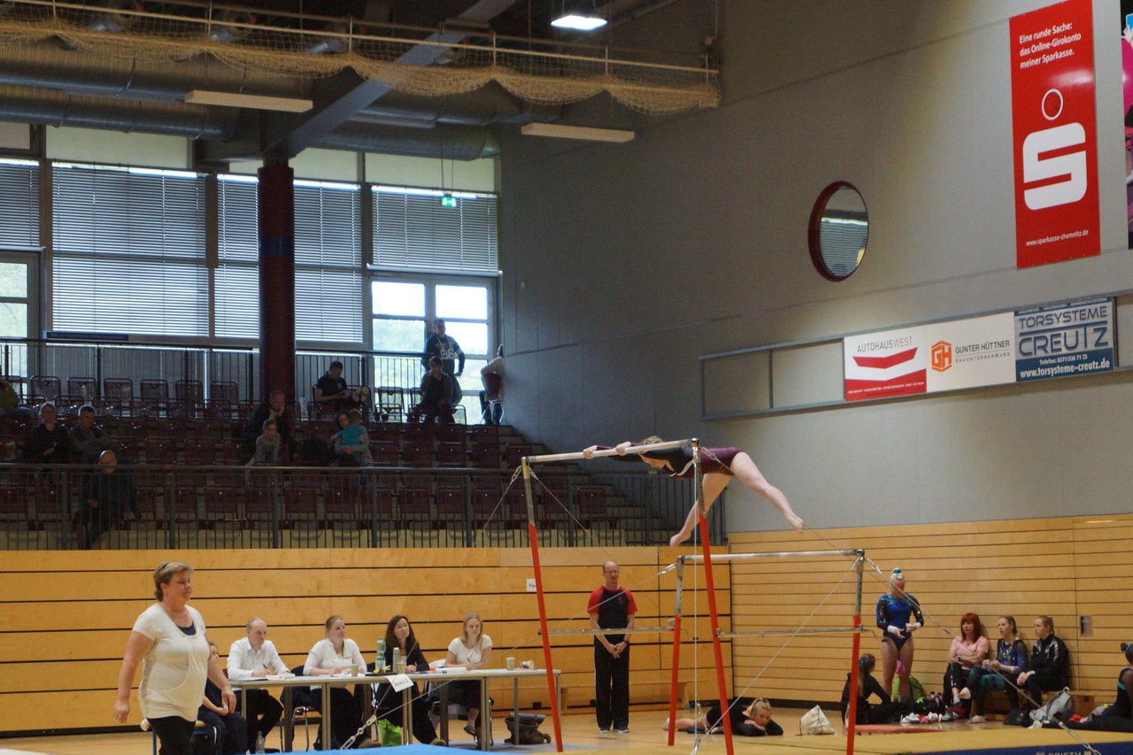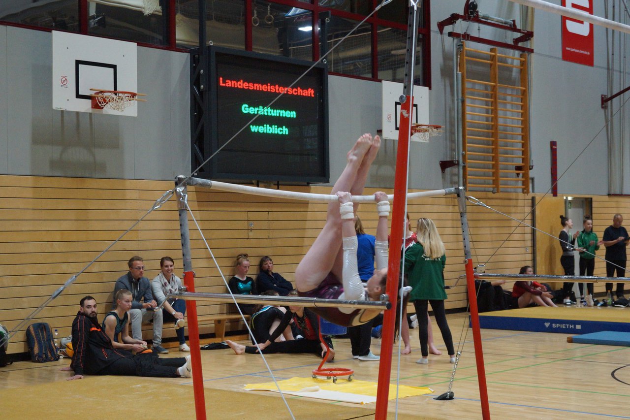 In der wie immer perfekt vorbereiteten Chemnitzer Richard Hartmann kämpften am 11. Mai sechs Turnerinnen unseres Vereines um die begehrten Sachsenmeister- Titel in der LK 3. Alle hatten sich viel vorgenommen und sehr fleißig für diesen Höhepunkt trainiert. In der AK 12/13 gingen Emely, Ivie und Milena an den Start. Für Milena und Ivie war das die erste Sachsenmeisterschaft in der LK 3, nachdem sie im letzten Jahr 3. und 6. in der LK4 belegt hatten. Leider lief es am Schwebebalken nicht optimal und am Boden wurden nicht alle Schwierigkeiten anerkannt, so dass nur Platz 10 (Ivie) und 14 (Milena) heraus kamen. Emely, inzwischen ein "alter Hase" in dieser Klasse bewies wieder einmal starke Nerven an allen Geräten. Sie zeigte die beste Stufenbarrenübung und verbesserte ihre Leistung am Boden mit einer neuen Übung noch einmal deutlich. Am Ende errang sie die Bronzemedaille. Alma startete eine Altersklasse höher und zeigte solide Leistungen, konnte aber bei den Älteren noch nicht mithalten. Am Ende wurde es Platz 15. Am Nachmittag gingen Marla (AK 16/17) und Felicitas (AK 18+) für uns an den Start. Für Marla war es die erste Sachsenmeisterschaft im Kürbereich. Leider kostete sie ein Sturz vom Balken die Chance auf Platz 6. Am Ende wurde sie 11. Felicitas turnte wie gewohnt durch, verpasste durch einige Wackler am Balken und etwas niedrige Wertungen an ihren Paradegeräten Sprung und Barren ganz knapp die Bronzemedaille.