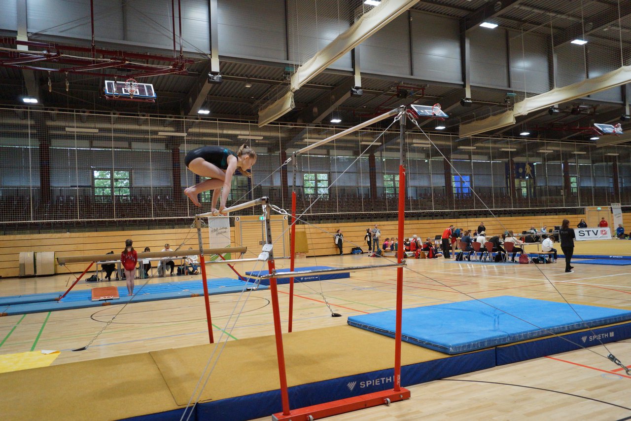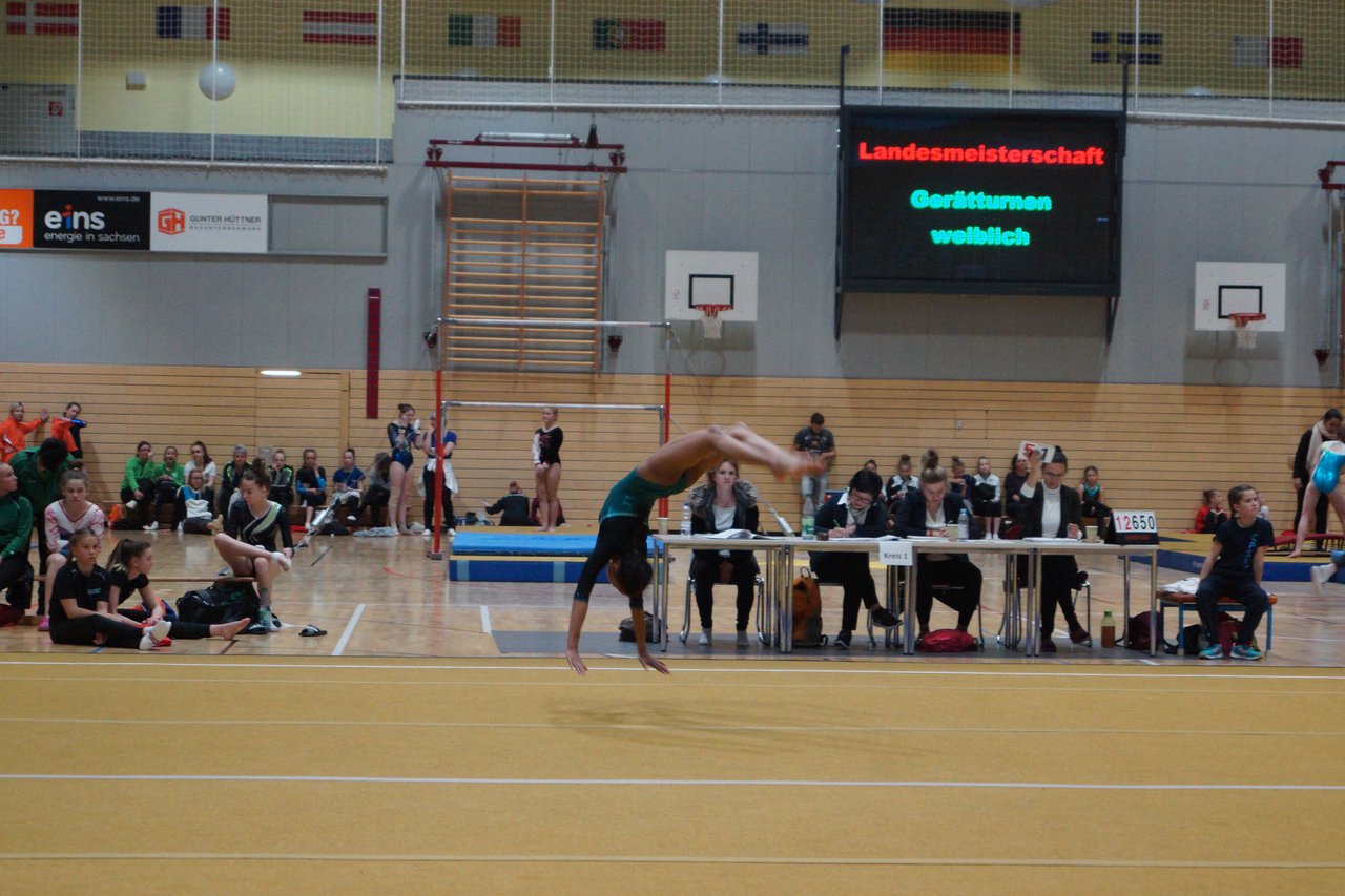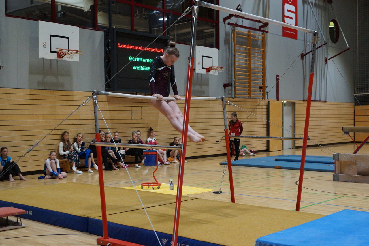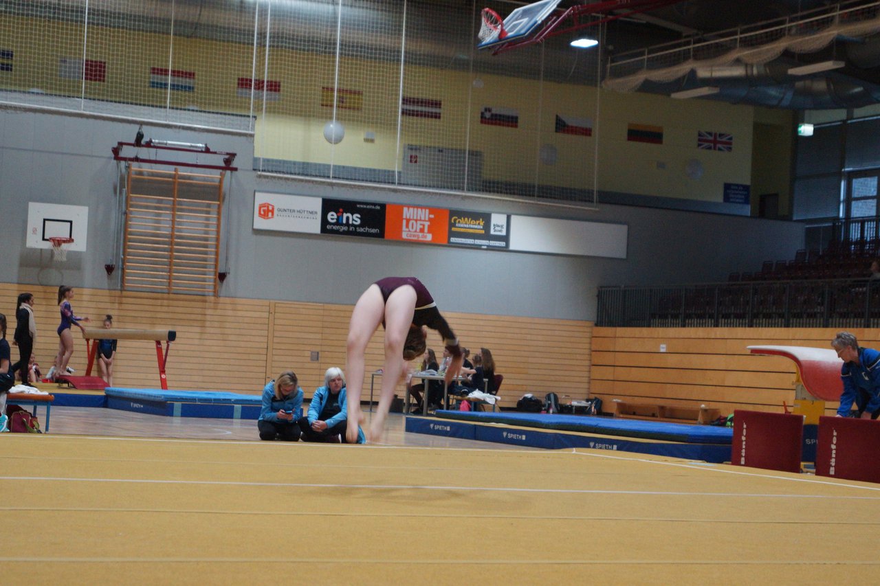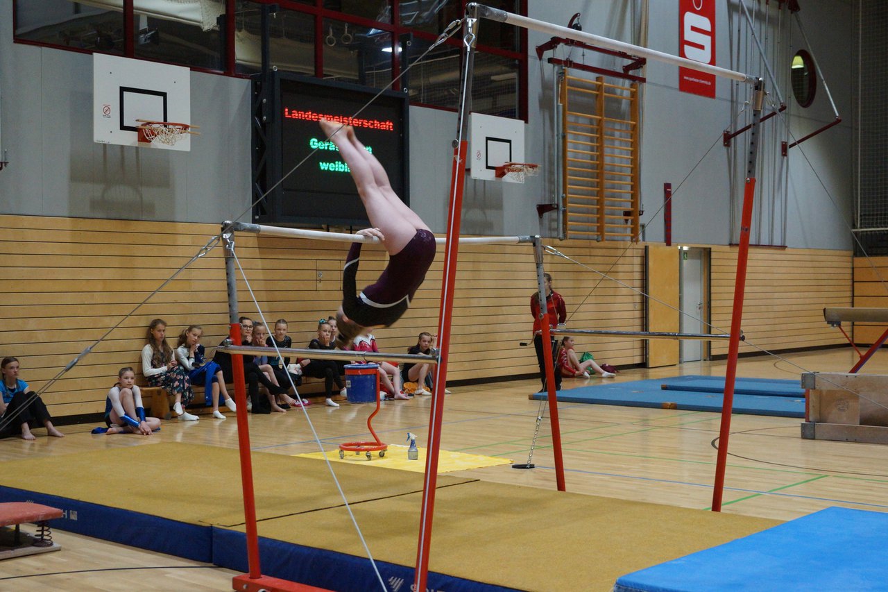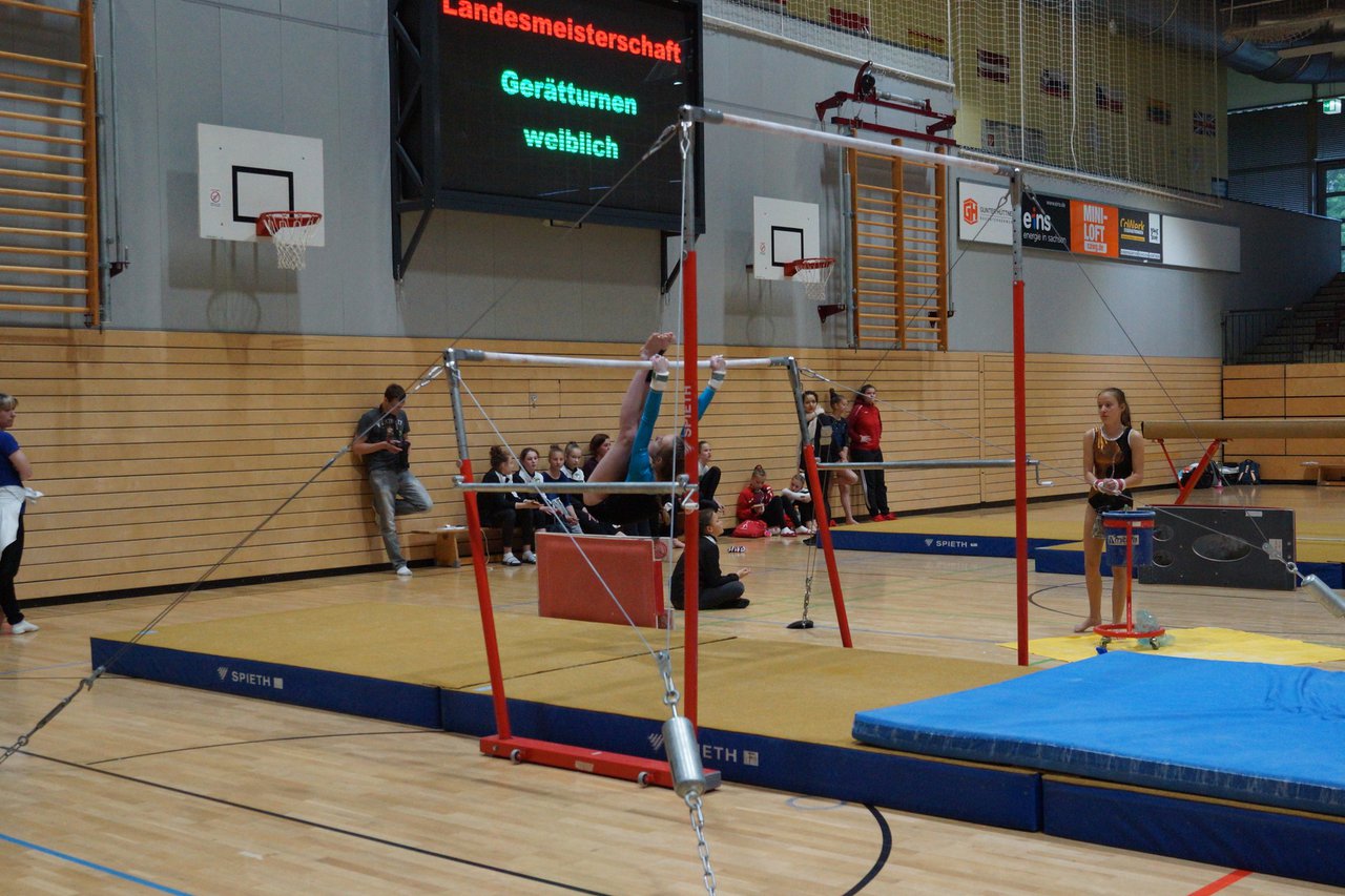 In der wie immer perfekt vorbereiteten Chemnitzer Richard Hartmann kämpften am 11. Mai sechs Turnerinnen unseres Vereines um die begehrten Sachsenmeister- Titel in der LK 3. Alle hatten sich viel vorgenommen und sehr fleißig für diesen Höhepunkt trainiert. In der AK 12/13 gingen Emely, Ivie und Milena an den Start. Für Milena und Ivie war das die erste Sachsenmeisterschaft in der LK 3, nachdem sie im letzten Jahr 3. und 6. in der LK4 belegt hatten. Leider lief es am Schwebebalken nicht optimal und am Boden wurden nicht alle Schwierigkeiten anerkannt, so dass nur Platz 10 (Ivie) und 14 (Milena) heraus kamen. Emely, inzwischen ein "alter Hase" in dieser Klasse bewies wieder einmal starke Nerven an allen Geräten. Sie zeigte die beste Stufenbarrenübung und verbesserte ihre Leistung am Boden mit einer neuen Übung noch einmal deutlich. Am Ende errang sie die Bronzemedaille. Alma startete eine Altersklasse höher und zeigte solide Leistungen, konnte aber bei den Älteren noch nicht mithalten. Am Ende wurde es Platz 15. Am Nachmittag gingen Marla (AK 16/17) und Felicitas (AK 18+) für uns an den Start. Für Marla war es die erste Sachsenmeisterschaft im Kürbereich. Leider kostete sie ein Sturz vom Balken die Chance auf Platz 6. Am Ende wurde sie 11. Felicitas turnte wie gewohnt durch, verpasste durch einige Wackler am Balken und etwas niedrige Wertungen an ihren Paradegeräten Sprung und Barren ganz knapp die Bronzemedaille.