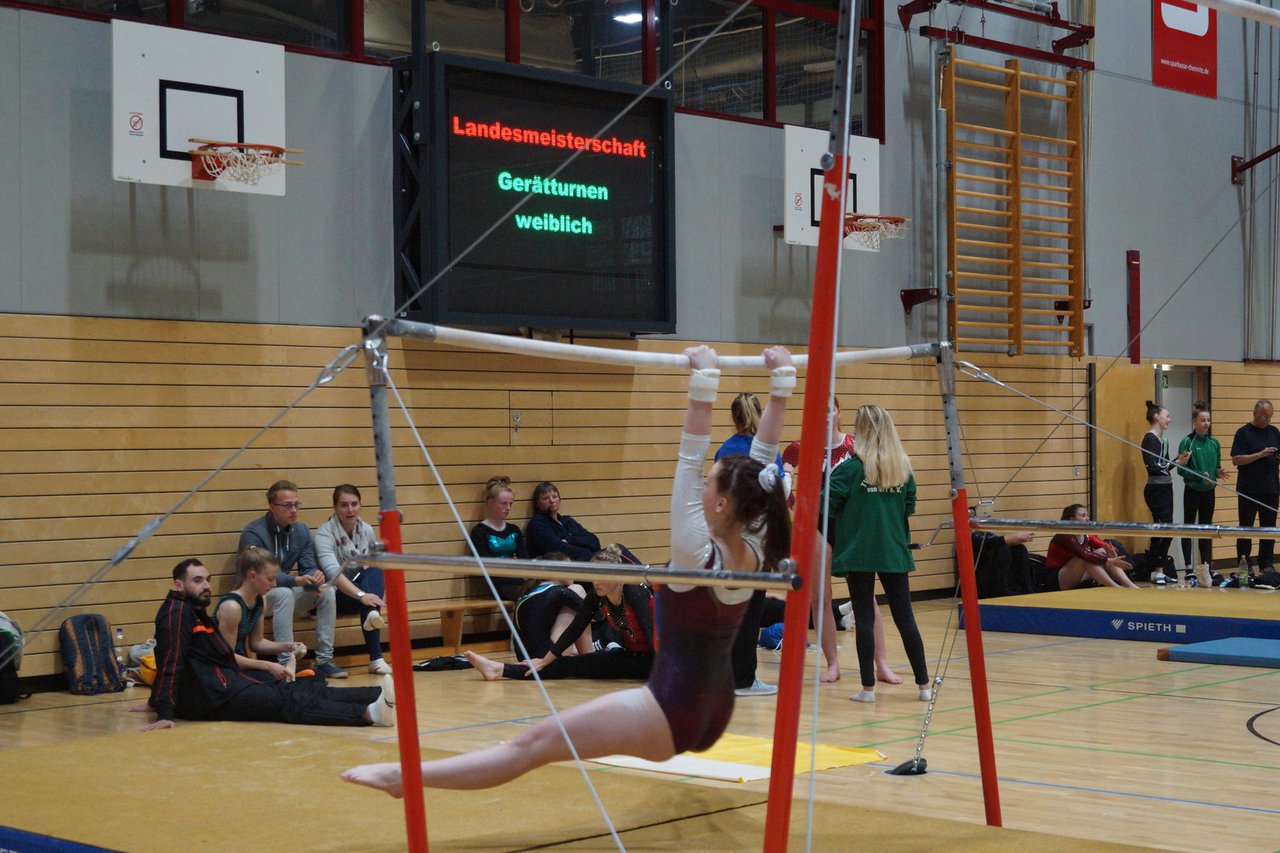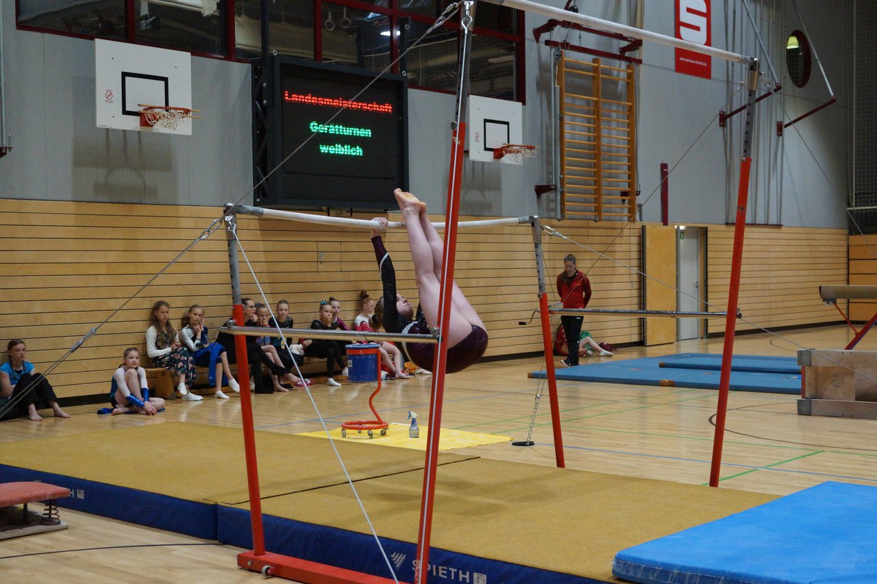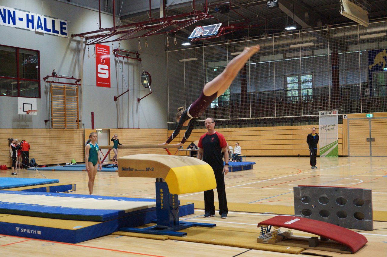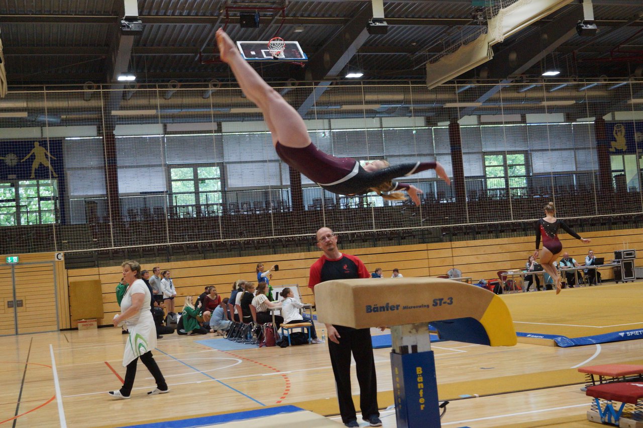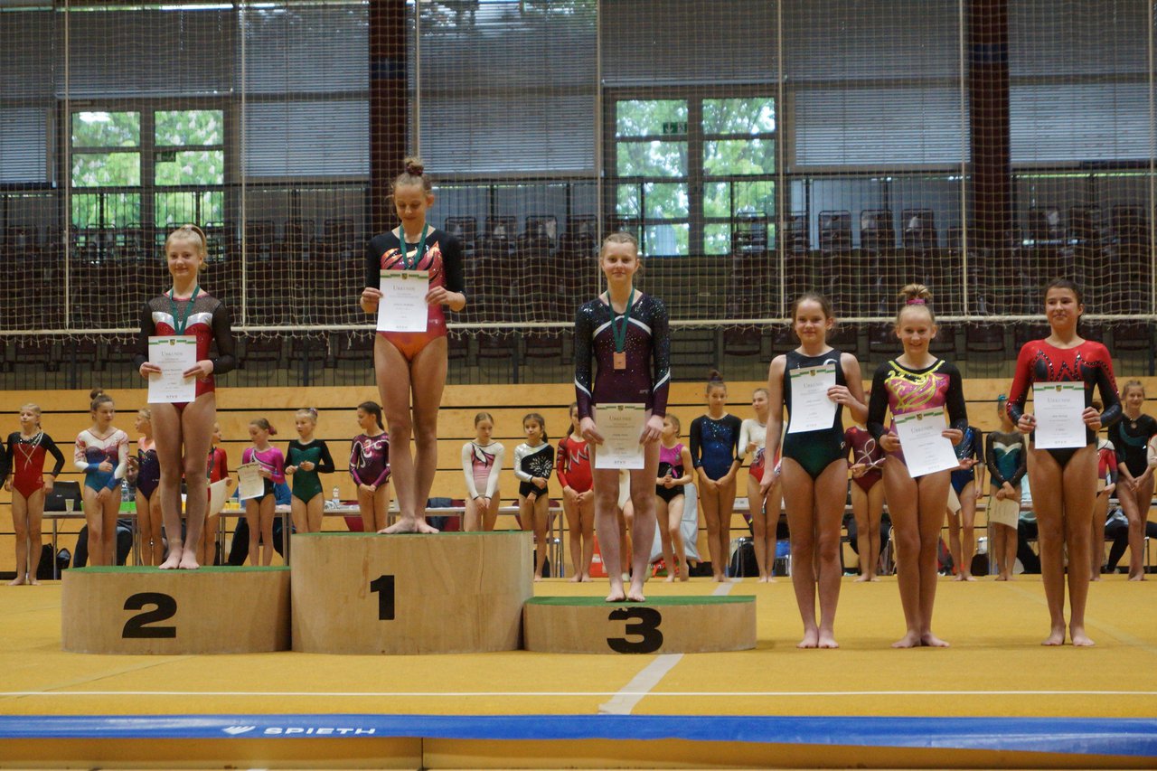 In der wie immer perfekt vorbereiteten Chemnitzer Richard Hartmann kämpften am 11. Mai sechs Turnerinnen unseres Vereines um die begehrten Sachsenmeister- Titel in der LK 3. Alle hatten sich viel vorgenommen und sehr fleißig für diesen Höhepunkt trainiert. In der AK 12/13 gingen Emely, Ivie und Milena an den Start. Für Milena und Ivie war das die erste Sachsenmeisterschaft in der LK 3, nachdem sie im letzten Jahr 3. und 6. in der LK4 belegt hatten. Leider lief es am Schwebebalken nicht optimal und am Boden wurden nicht alle Schwierigkeiten anerkannt, so dass nur Platz 10 (Ivie) und 14 (Milena) heraus kamen. Emely, inzwischen ein "alter Hase" in dieser Klasse bewies wieder einmal starke Nerven an allen Geräten. Sie zeigte die beste Stufenbarrenübung und verbesserte ihre Leistung am Boden mit einer neuen Übung noch einmal deutlich. Am Ende errang sie die Bronzemedaille. Alma startete eine Altersklasse höher und zeigte solide Leistungen, konnte aber bei den Älteren noch nicht mithalten. Am Ende wurde es Platz 15. Am Nachmittag gingen Marla (AK 16/17) und Felicitas (AK 18+) für uns an den Start. Für Marla war es die erste Sachsenmeisterschaft im Kürbereich. Leider kostete sie ein Sturz vom Balken die Chance auf Platz 6. Am Ende wurde sie 11. Felicitas turnte wie gewohnt durch, verpasste durch einige Wackler am Balken und etwas niedrige Wertungen an ihren Paradegeräten Sprung und Barren ganz knapp die Bronzemedaille.