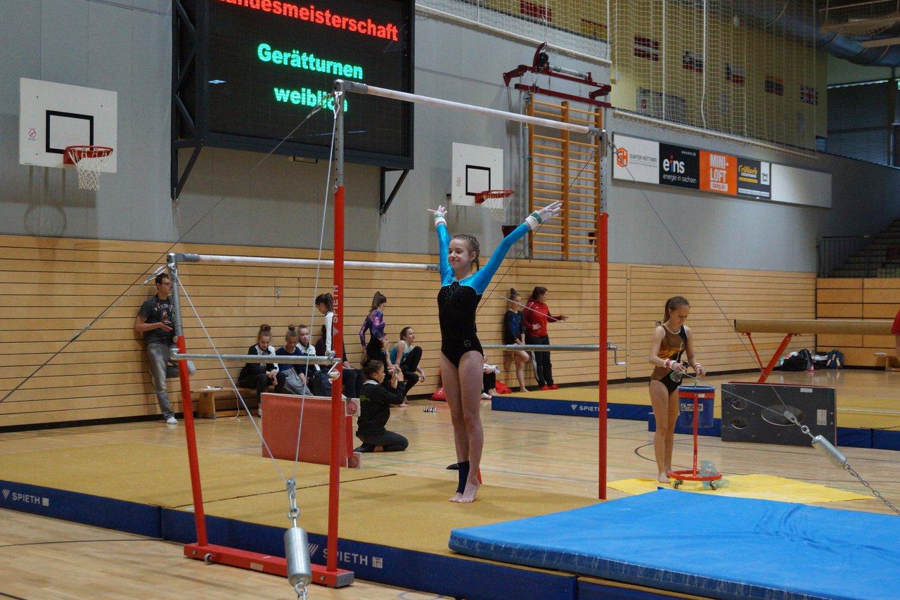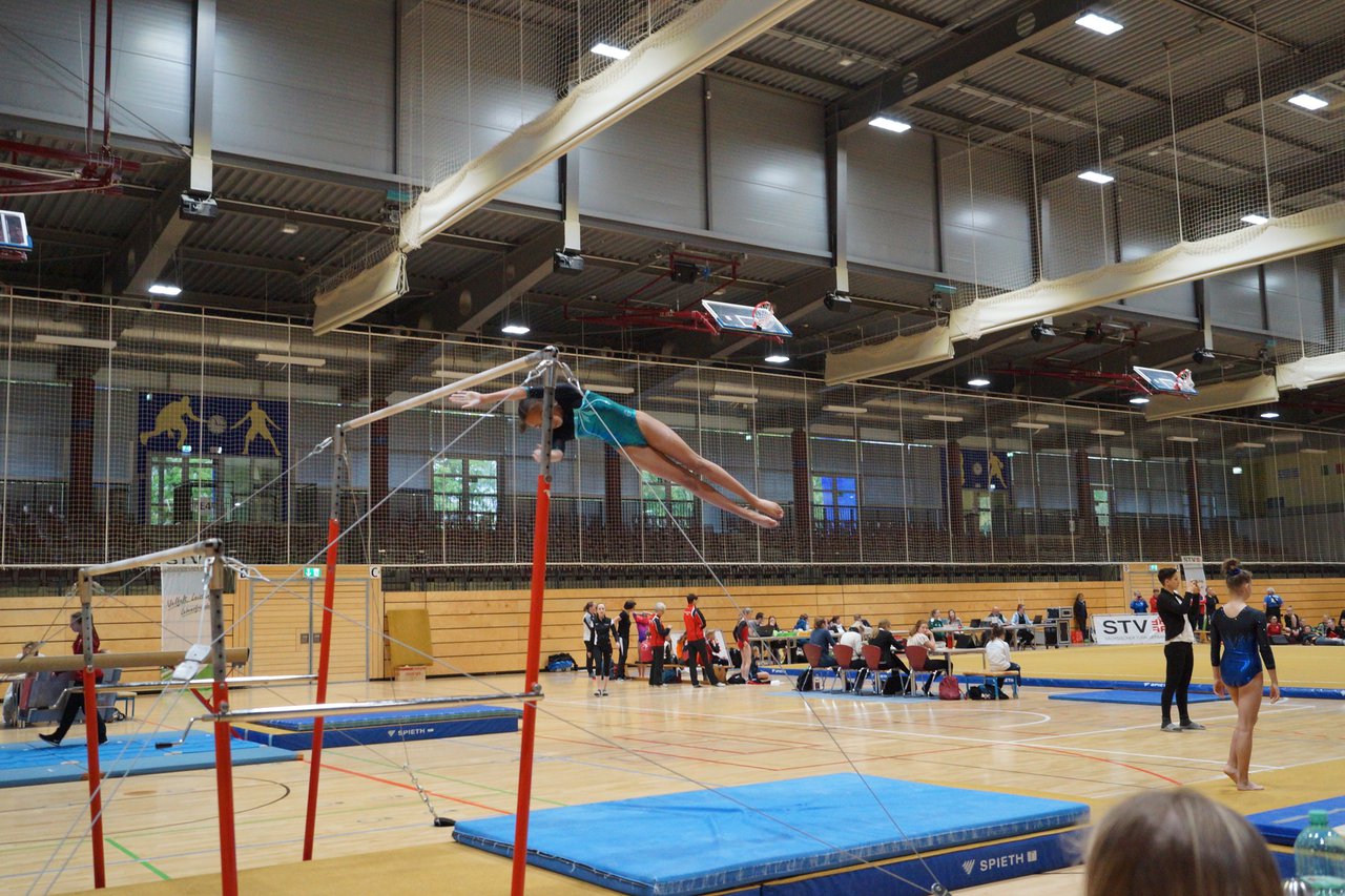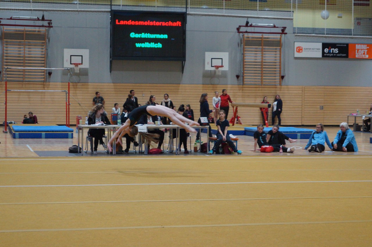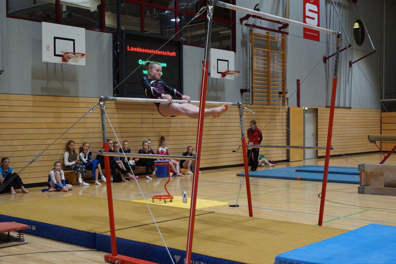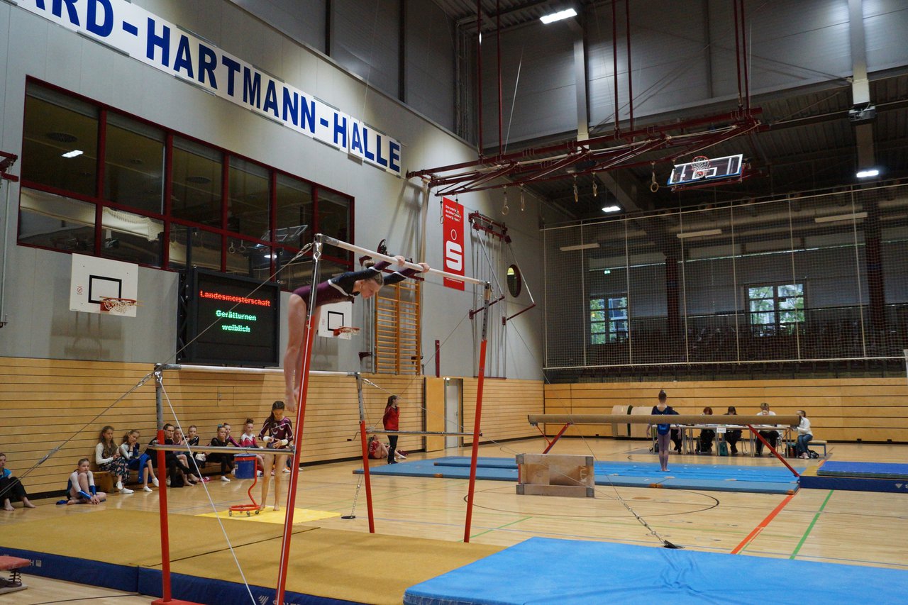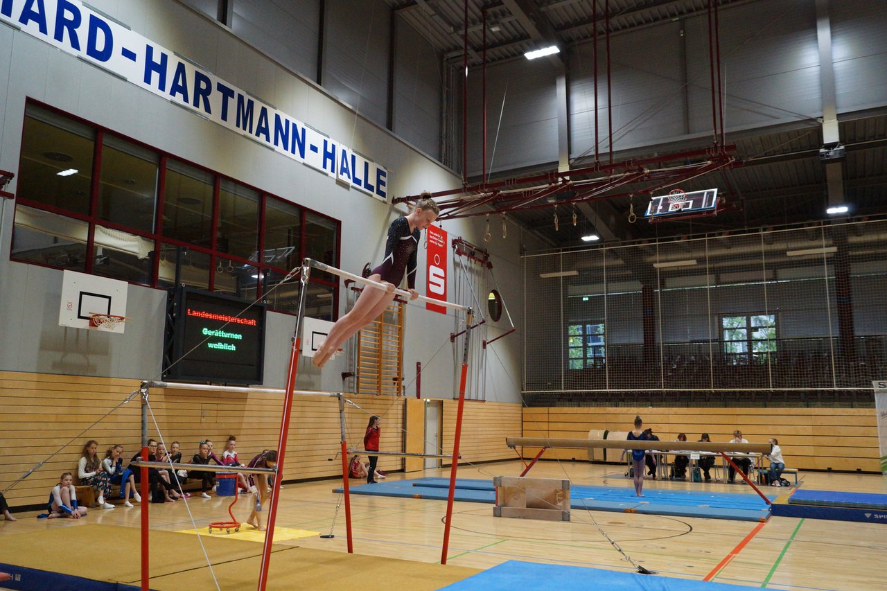 In der wie immer perfekt vorbereiteten Chemnitzer Richard Hartmann kämpften am 11. Mai sechs Turnerinnen unseres Vereines um die begehrten Sachsenmeister- Titel in der LK 3. Alle hatten sich viel vorgenommen und sehr fleißig für diesen Höhepunkt trainiert. In der AK 12/13 gingen Emely, Ivie und Milena an den Start. Für Milena und Ivie war das die erste Sachsenmeisterschaft in der LK 3, nachdem sie im letzten Jahr 3. und 6. in der LK4 belegt hatten. Leider lief es am Schwebebalken nicht optimal und am Boden wurden nicht alle Schwierigkeiten anerkannt, so dass nur Platz 10 (Ivie) und 14 (Milena) heraus kamen. Emely, inzwischen ein "alter Hase" in dieser Klasse bewies wieder einmal starke Nerven an allen Geräten. Sie zeigte die beste Stufenbarrenübung und verbesserte ihre Leistung am Boden mit einer neuen Übung noch einmal deutlich. Am Ende errang sie die Bronzemedaille. Alma startete eine Altersklasse höher und zeigte solide Leistungen, konnte aber bei den Älteren noch nicht mithalten. Am Ende wurde es Platz 15. Am Nachmittag gingen Marla (AK 16/17) und Felicitas (AK 18+) für uns an den Start. Für Marla war es die erste Sachsenmeisterschaft im Kürbereich. Leider kostete sie ein Sturz vom Balken die Chance auf Platz 6. Am Ende wurde sie 11. Felicitas turnte wie gewohnt durch, verpasste durch einige Wackler am Balken und etwas niedrige Wertungen an ihren Paradegeräten Sprung und Barren ganz knapp die Bronzemedaille.