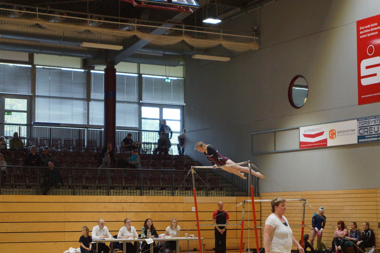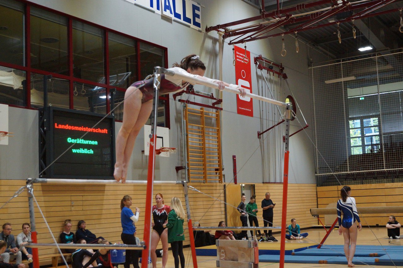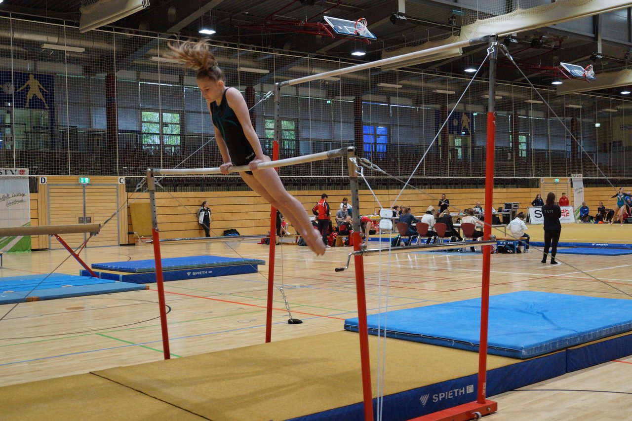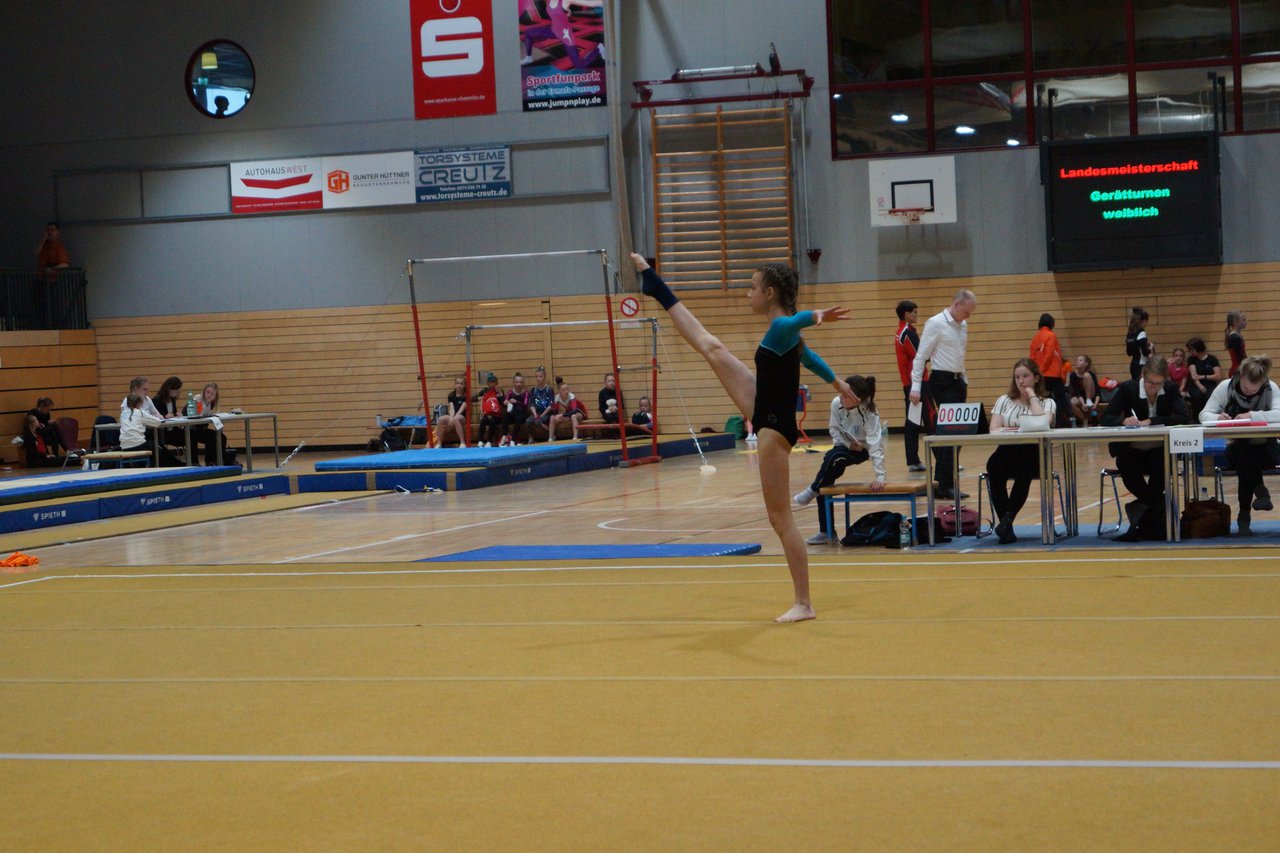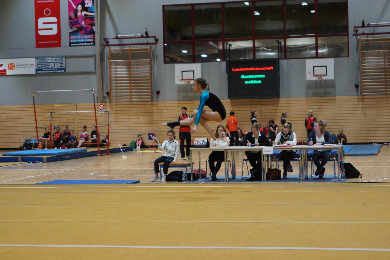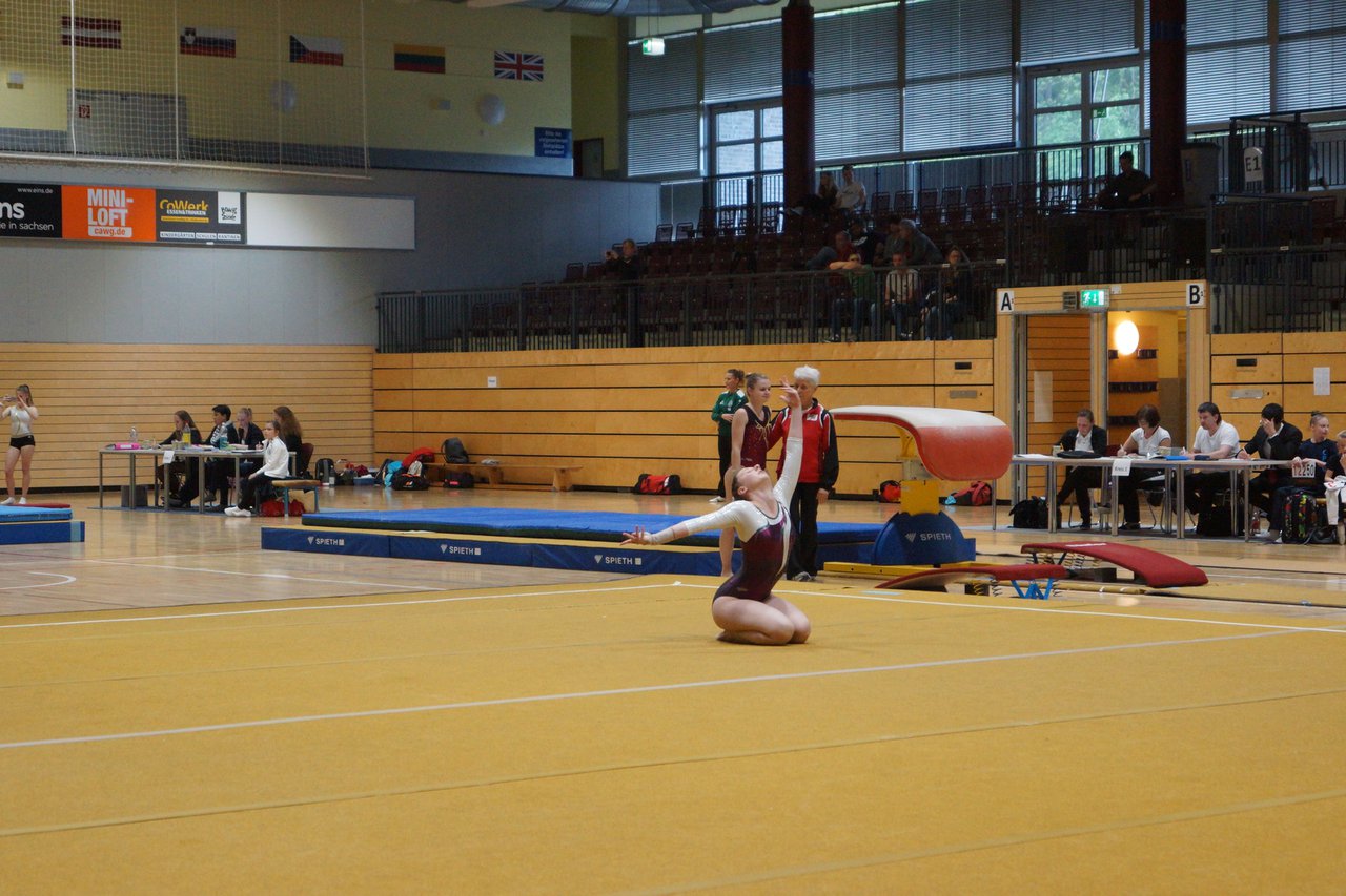 In der wie immer perfekt vorbereiteten Chemnitzer Richard Hartmann kämpften am 11. Mai sechs Turnerinnen unseres Vereines um die begehrten Sachsenmeister- Titel in der LK 3. Alle hatten sich viel vorgenommen und sehr fleißig für diesen Höhepunkt trainiert. In der AK 12/13 gingen Emely, Ivie und Milena an den Start. Für Milena und Ivie war das die erste Sachsenmeisterschaft in der LK 3, nachdem sie im letzten Jahr 3. und 6. in der LK4 belegt hatten. Leider lief es am Schwebebalken nicht optimal und am Boden wurden nicht alle Schwierigkeiten anerkannt, so dass nur Platz 10 (Ivie) und 14 (Milena) heraus kamen. Emely, inzwischen ein "alter Hase" in dieser Klasse bewies wieder einmal starke Nerven an allen Geräten. Sie zeigte die beste Stufenbarrenübung und verbesserte ihre Leistung am Boden mit einer neuen Übung noch einmal deutlich. Am Ende errang sie die Bronzemedaille. Alma startete eine Altersklasse höher und zeigte solide Leistungen, konnte aber bei den Älteren noch nicht mithalten. Am Ende wurde es Platz 15. Am Nachmittag gingen Marla (AK 16/17) und Felicitas (AK 18+) für uns an den Start. Für Marla war es die erste Sachsenmeisterschaft im Kürbereich. Leider kostete sie ein Sturz vom Balken die Chance auf Platz 6. Am Ende wurde sie 11. Felicitas turnte wie gewohnt durch, verpasste durch einige Wackler am Balken und etwas niedrige Wertungen an ihren Paradegeräten Sprung und Barren ganz knapp die Bronzemedaille.