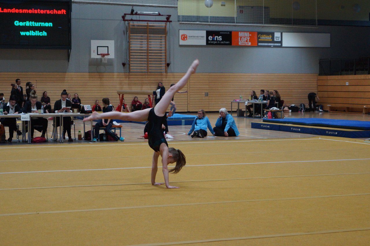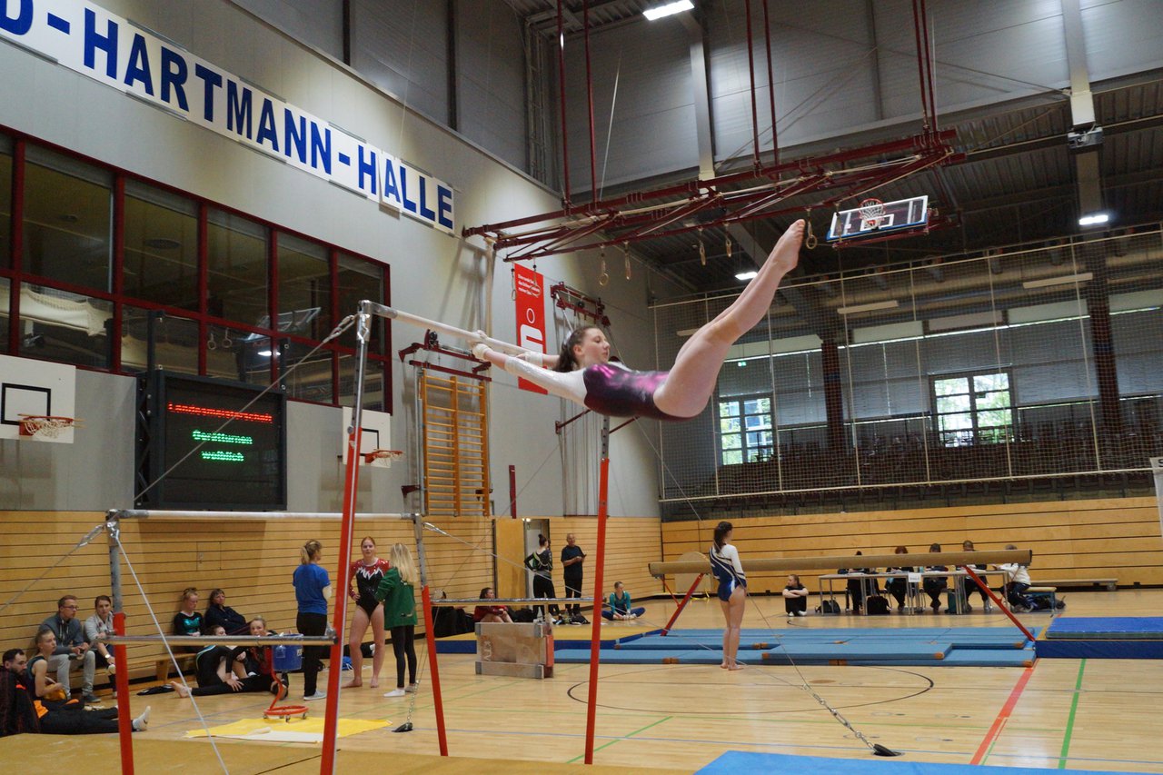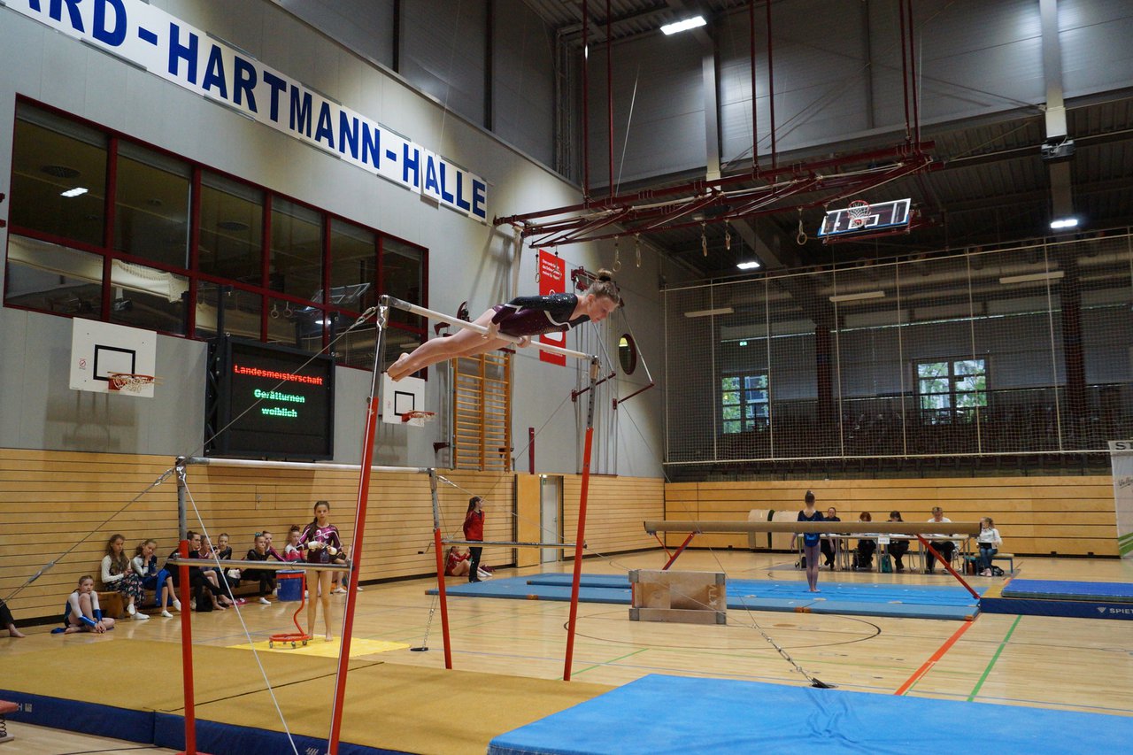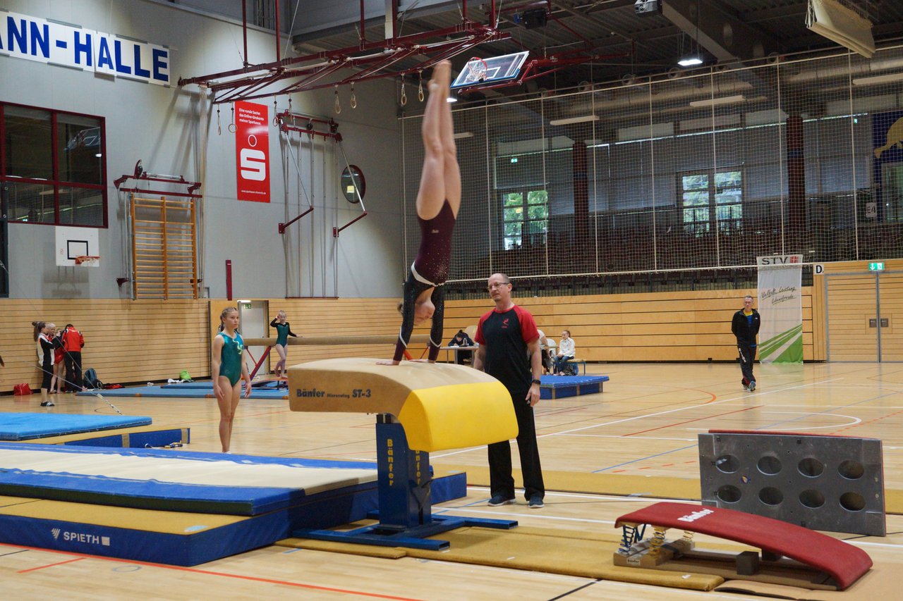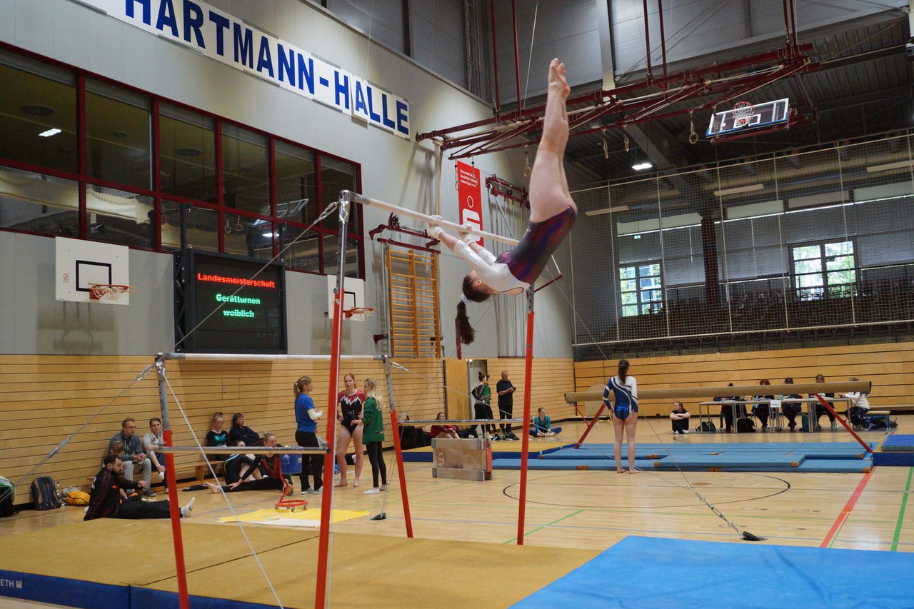 In der wie immer perfekt vorbereiteten Chemnitzer Richard Hartmann kämpften am 11. Mai sechs Turnerinnen unseres Vereines um die begehrten Sachsenmeister- Titel in der LK 3. Alle hatten sich viel vorgenommen und sehr fleißig für diesen Höhepunkt trainiert. In der AK 12/13 gingen Emely, Ivie und Milena an den Start. Für Milena und Ivie war das die erste Sachsenmeisterschaft in der LK 3, nachdem sie im letzten Jahr 3. und 6. in der LK4 belegt hatten. Leider lief es am Schwebebalken nicht optimal und am Boden wurden nicht alle Schwierigkeiten anerkannt, so dass nur Platz 10 (Ivie) und 14 (Milena) heraus kamen. Emely, inzwischen ein "alter Hase" in dieser Klasse bewies wieder einmal starke Nerven an allen Geräten. Sie zeigte die beste Stufenbarrenübung und verbesserte ihre Leistung am Boden mit einer neuen Übung noch einmal deutlich. Am Ende errang sie die Bronzemedaille. Alma startete eine Altersklasse höher und zeigte solide Leistungen, konnte aber bei den Älteren noch nicht mithalten. Am Ende wurde es Platz 15. Am Nachmittag gingen Marla (AK 16/17) und Felicitas (AK 18+) für uns an den Start. Für Marla war es die erste Sachsenmeisterschaft im Kürbereich. Leider kostete sie ein Sturz vom Balken die Chance auf Platz 6. Am Ende wurde sie 11. Felicitas turnte wie gewohnt durch, verpasste durch einige Wackler am Balken und etwas niedrige Wertungen an ihren Paradegeräten Sprung und Barren ganz knapp die Bronzemedaille.