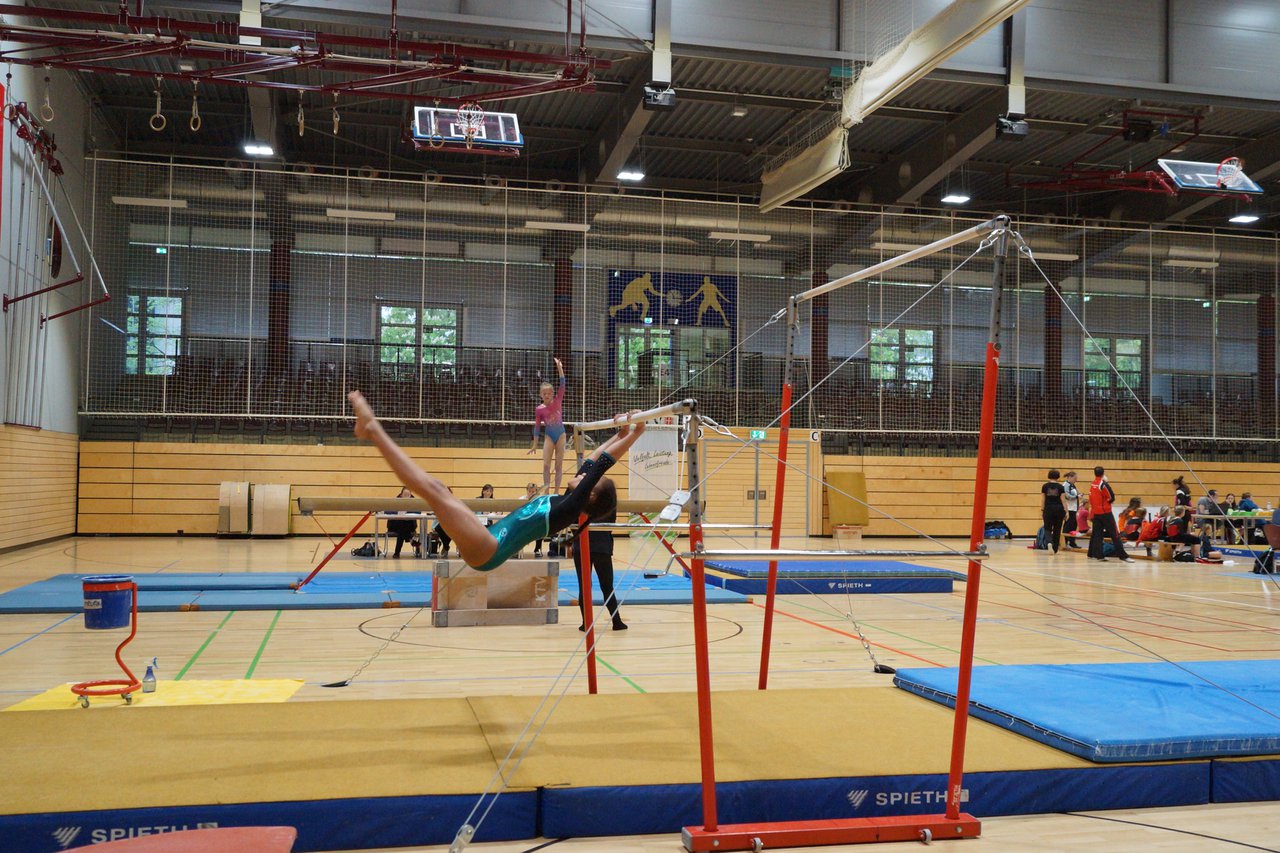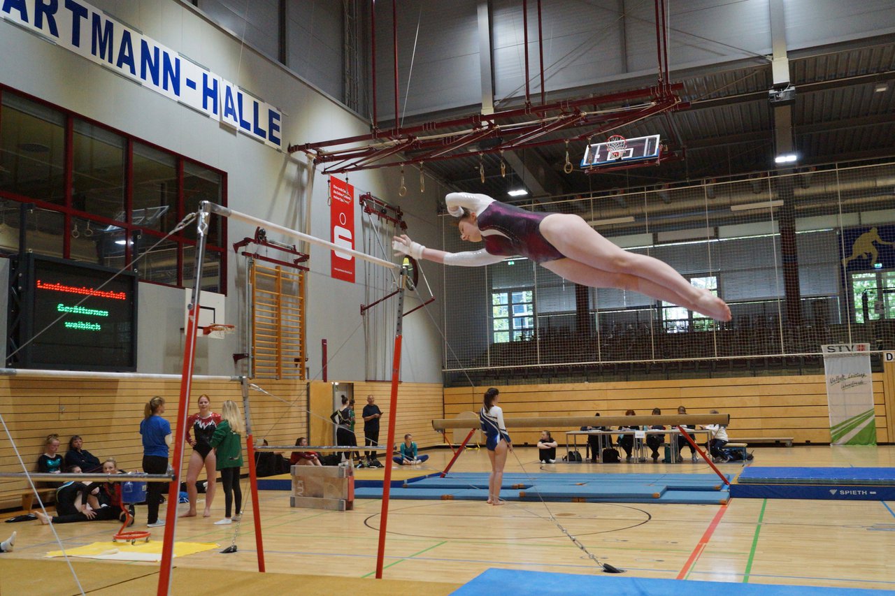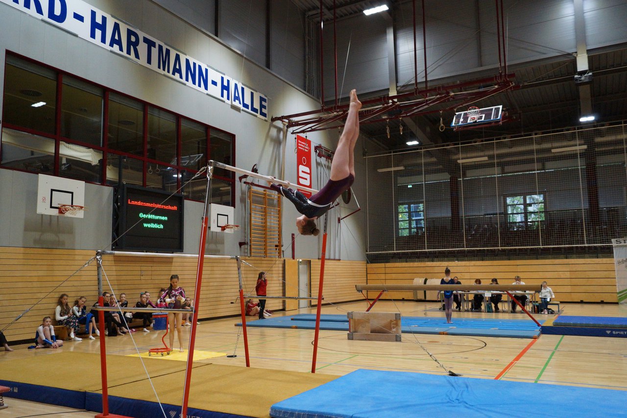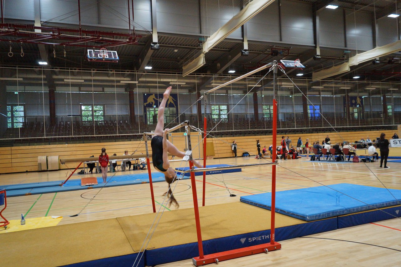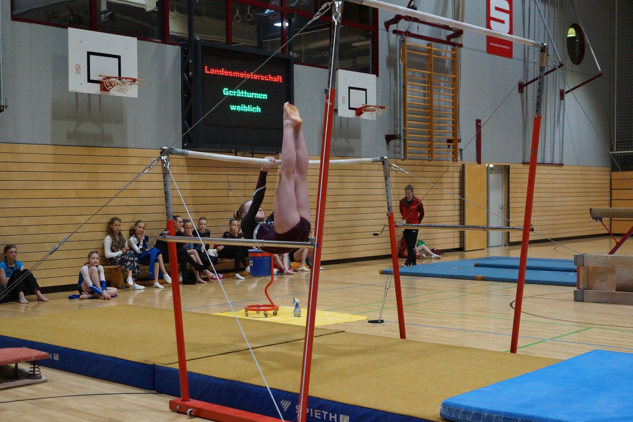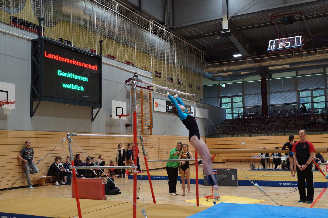 In der wie immer perfekt vorbereiteten Chemnitzer Richard Hartmann kämpften am 11. Mai sechs Turnerinnen unseres Vereines um die begehrten Sachsenmeister- Titel in der LK 3. Alle hatten sich viel vorgenommen und sehr fleißig für diesen Höhepunkt trainiert. In der AK 12/13 gingen Emely, Ivie und Milena an den Start. Für Milena und Ivie war das die erste Sachsenmeisterschaft in der LK 3, nachdem sie im letzten Jahr 3. und 6. in der LK4 belegt hatten. Leider lief es am Schwebebalken nicht optimal und am Boden wurden nicht alle Schwierigkeiten anerkannt, so dass nur Platz 10 (Ivie) und 14 (Milena) heraus kamen. Emely, inzwischen ein "alter Hase" in dieser Klasse bewies wieder einmal starke Nerven an allen Geräten. Sie zeigte die beste Stufenbarrenübung und verbesserte ihre Leistung am Boden mit einer neuen Übung noch einmal deutlich. Am Ende errang sie die Bronzemedaille. Alma startete eine Altersklasse höher und zeigte solide Leistungen, konnte aber bei den Älteren noch nicht mithalten. Am Ende wurde es Platz 15. Am Nachmittag gingen Marla (AK 16/17) und Felicitas (AK 18+) für uns an den Start. Für Marla war es die erste Sachsenmeisterschaft im Kürbereich. Leider kostete sie ein Sturz vom Balken die Chance auf Platz 6. Am Ende wurde sie 11. Felicitas turnte wie gewohnt durch, verpasste durch einige Wackler am Balken und etwas niedrige Wertungen an ihren Paradegeräten Sprung und Barren ganz knapp die Bronzemedaille.