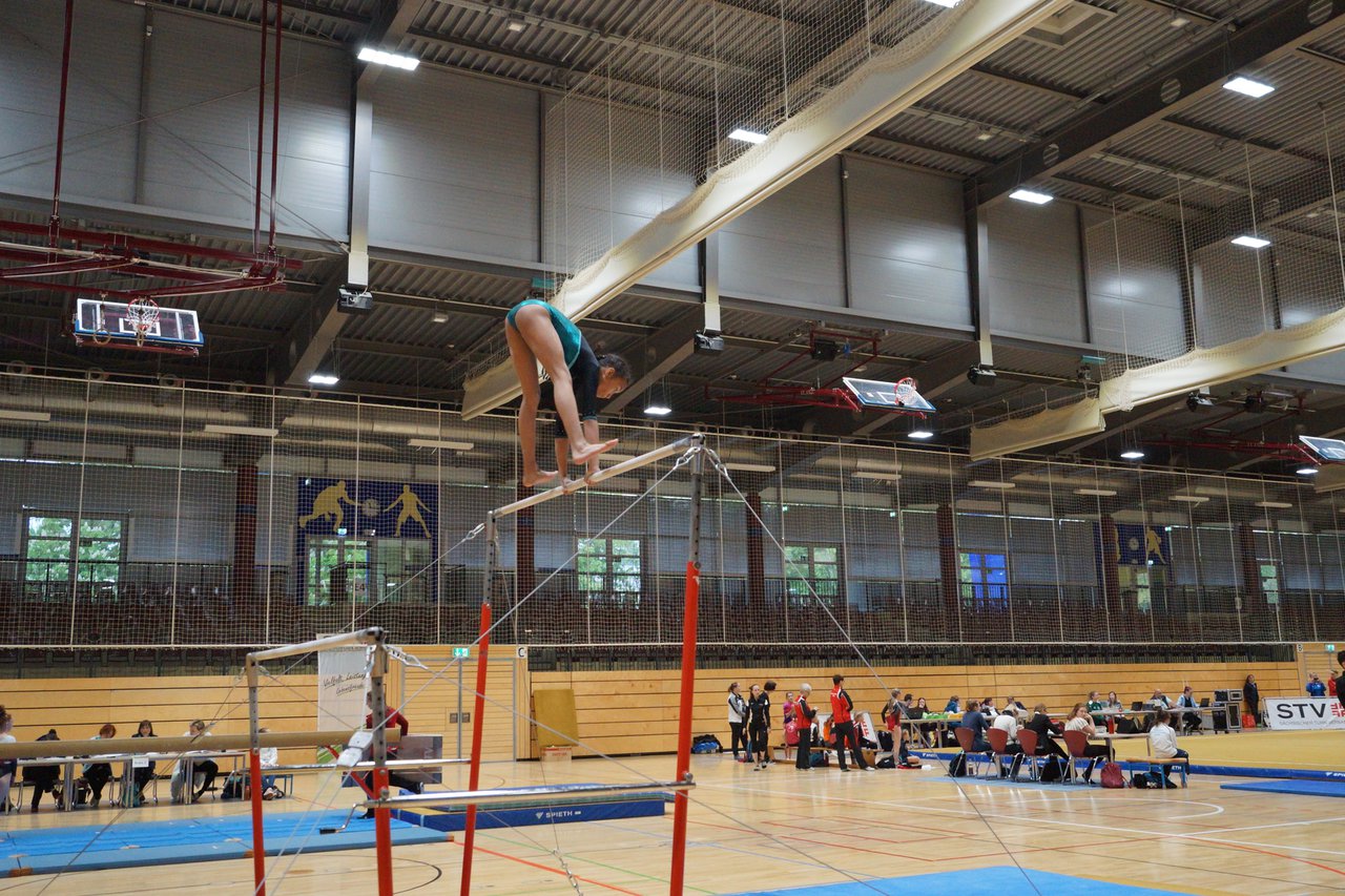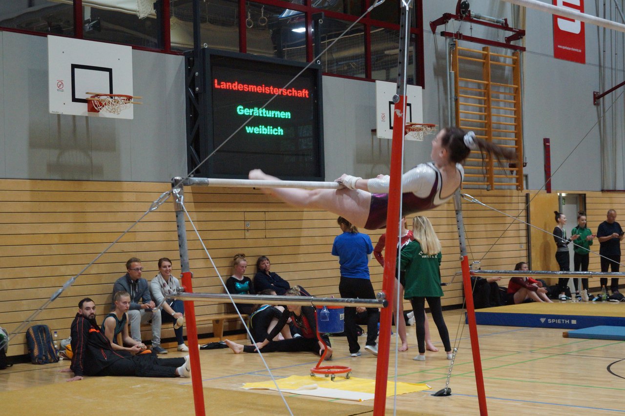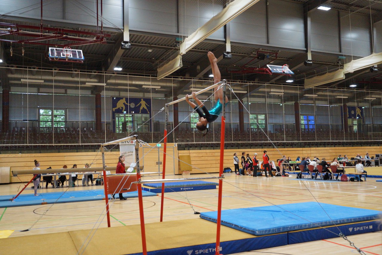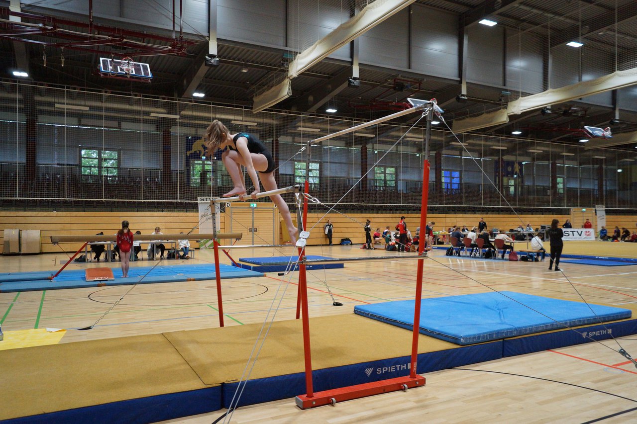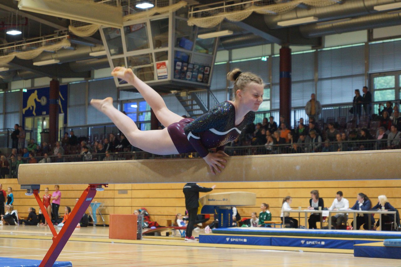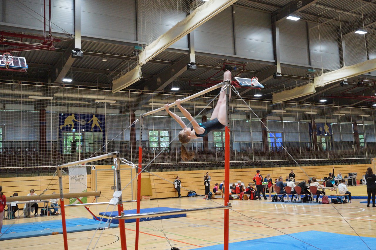 In der wie immer perfekt vorbereiteten Chemnitzer Richard Hartmann kämpften am 11. Mai sechs Turnerinnen unseres Vereines um die begehrten Sachsenmeister- Titel in der LK 3. Alle hatten sich viel vorgenommen und sehr fleißig für diesen Höhepunkt trainiert. In der AK 12/13 gingen Emely, Ivie und Milena an den Start. Für Milena und Ivie war das die erste Sachsenmeisterschaft in der LK 3, nachdem sie im letzten Jahr 3. und 6. in der LK4 belegt hatten. Leider lief es am Schwebebalken nicht optimal und am Boden wurden nicht alle Schwierigkeiten anerkannt, so dass nur Platz 10 (Ivie) und 14 (Milena) heraus kamen. Emely, inzwischen ein "alter Hase" in dieser Klasse bewies wieder einmal starke Nerven an allen Geräten. Sie zeigte die beste Stufenbarrenübung und verbesserte ihre Leistung am Boden mit einer neuen Übung noch einmal deutlich. Am Ende errang sie die Bronzemedaille. Alma startete eine Altersklasse höher und zeigte solide Leistungen, konnte aber bei den Älteren noch nicht mithalten. Am Ende wurde es Platz 15. Am Nachmittag gingen Marla (AK 16/17) und Felicitas (AK 18+) für uns an den Start. Für Marla war es die erste Sachsenmeisterschaft im Kürbereich. Leider kostete sie ein Sturz vom Balken die Chance auf Platz 6. Am Ende wurde sie 11. Felicitas turnte wie gewohnt durch, verpasste durch einige Wackler am Balken und etwas niedrige Wertungen an ihren Paradegeräten Sprung und Barren ganz knapp die Bronzemedaille.