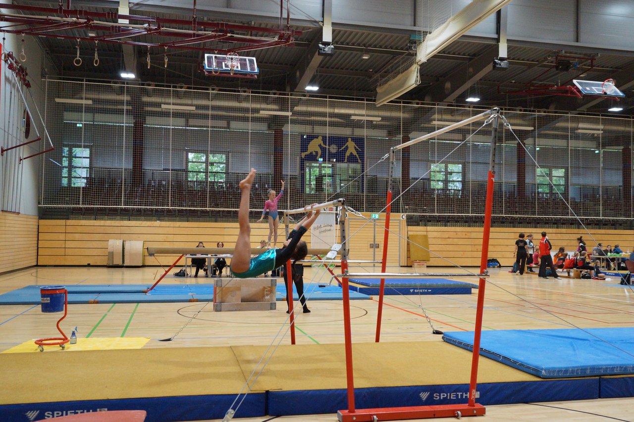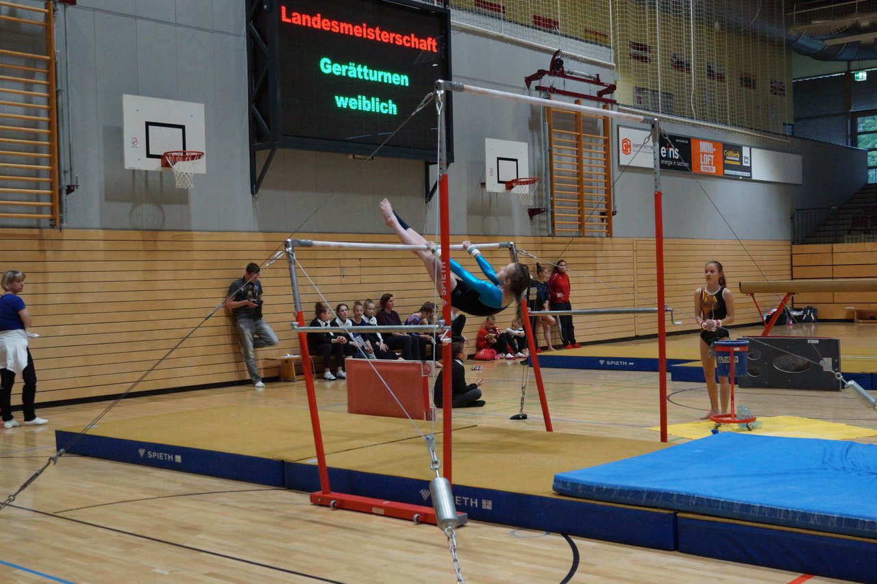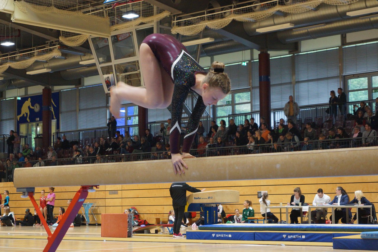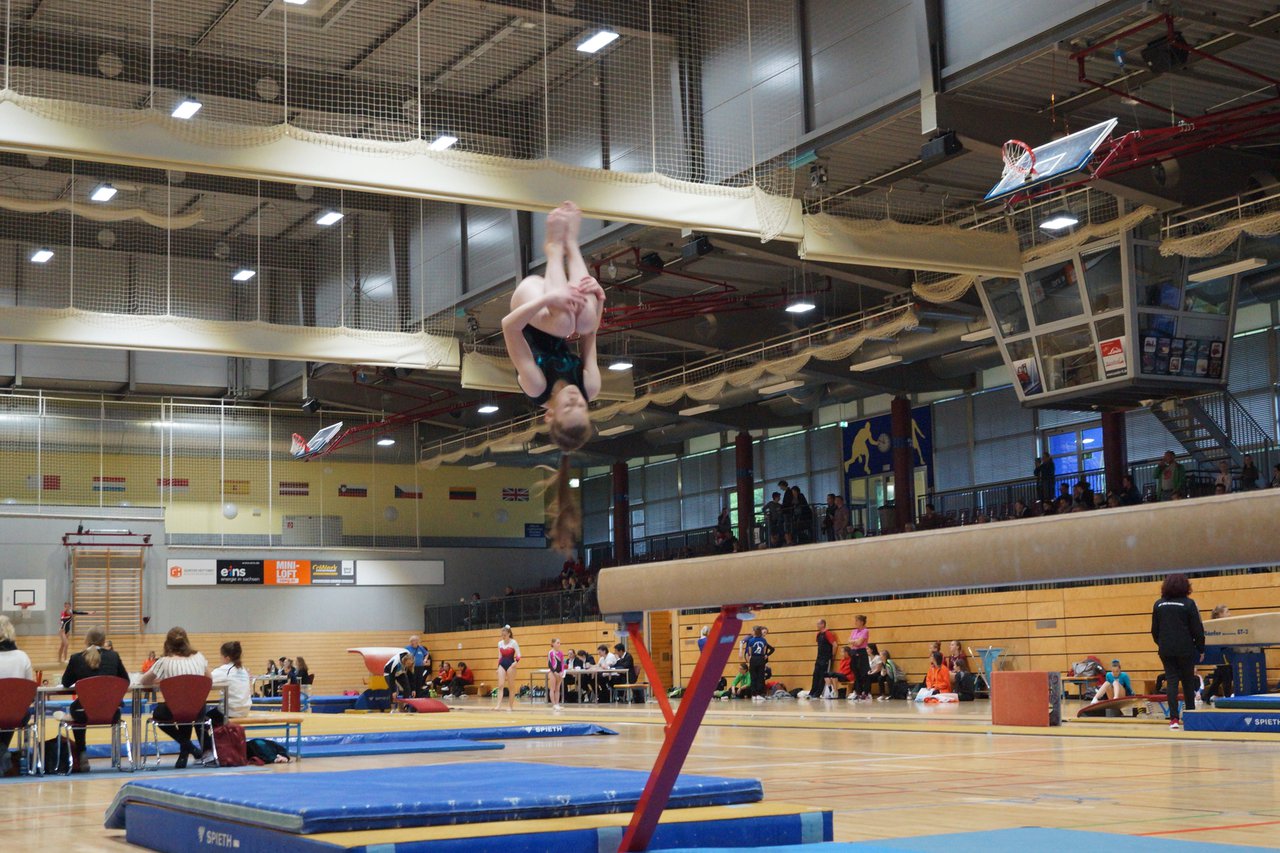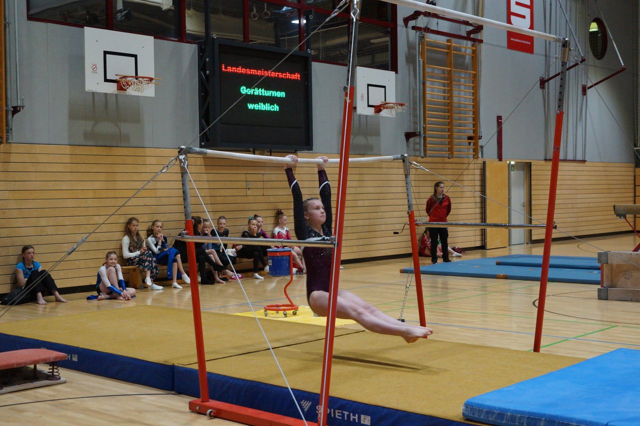 In der wie immer perfekt vorbereiteten Chemnitzer Richard Hartmann kämpften am 11. Mai sechs Turnerinnen unseres Vereines um die begehrten Sachsenmeister- Titel in der LK 3. Alle hatten sich viel vorgenommen und sehr fleißig für diesen Höhepunkt trainiert. In der AK 12/13 gingen Emely, Ivie und Milena an den Start. Für Milena und Ivie war das die erste Sachsenmeisterschaft in der LK 3, nachdem sie im letzten Jahr 3. und 6. in der LK4 belegt hatten. Leider lief es am Schwebebalken nicht optimal und am Boden wurden nicht alle Schwierigkeiten anerkannt, so dass nur Platz 10 (Ivie) und 14 (Milena) heraus kamen. Emely, inzwischen ein "alter Hase" in dieser Klasse bewies wieder einmal starke Nerven an allen Geräten. Sie zeigte die beste Stufenbarrenübung und verbesserte ihre Leistung am Boden mit einer neuen Übung noch einmal deutlich. Am Ende errang sie die Bronzemedaille. Alma startete eine Altersklasse höher und zeigte solide Leistungen, konnte aber bei den Älteren noch nicht mithalten. Am Ende wurde es Platz 15. Am Nachmittag gingen Marla (AK 16/17) und Felicitas (AK 18+) für uns an den Start. Für Marla war es die erste Sachsenmeisterschaft im Kürbereich. Leider kostete sie ein Sturz vom Balken die Chance auf Platz 6. Am Ende wurde sie 11. Felicitas turnte wie gewohnt durch, verpasste durch einige Wackler am Balken und etwas niedrige Wertungen an ihren Paradegeräten Sprung und Barren ganz knapp die Bronzemedaille.