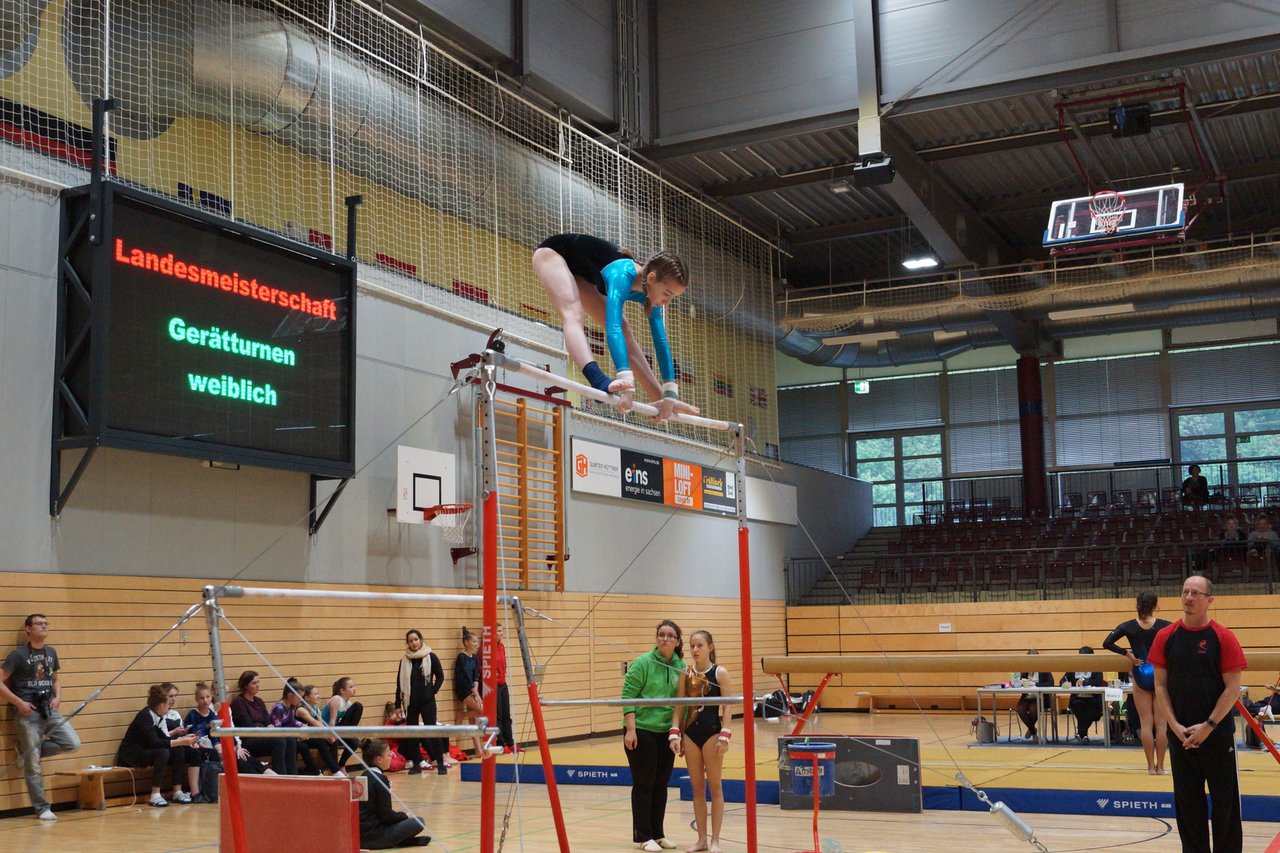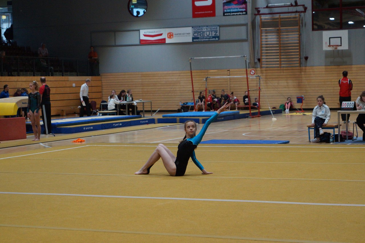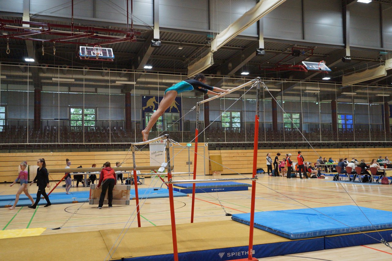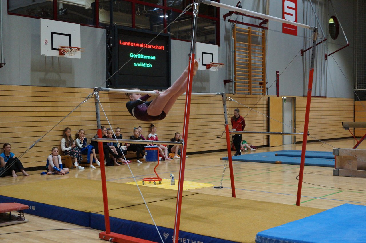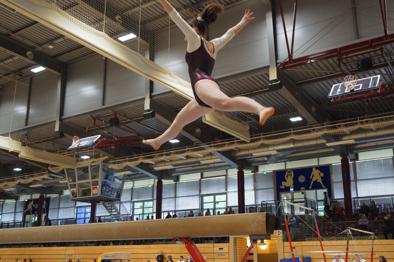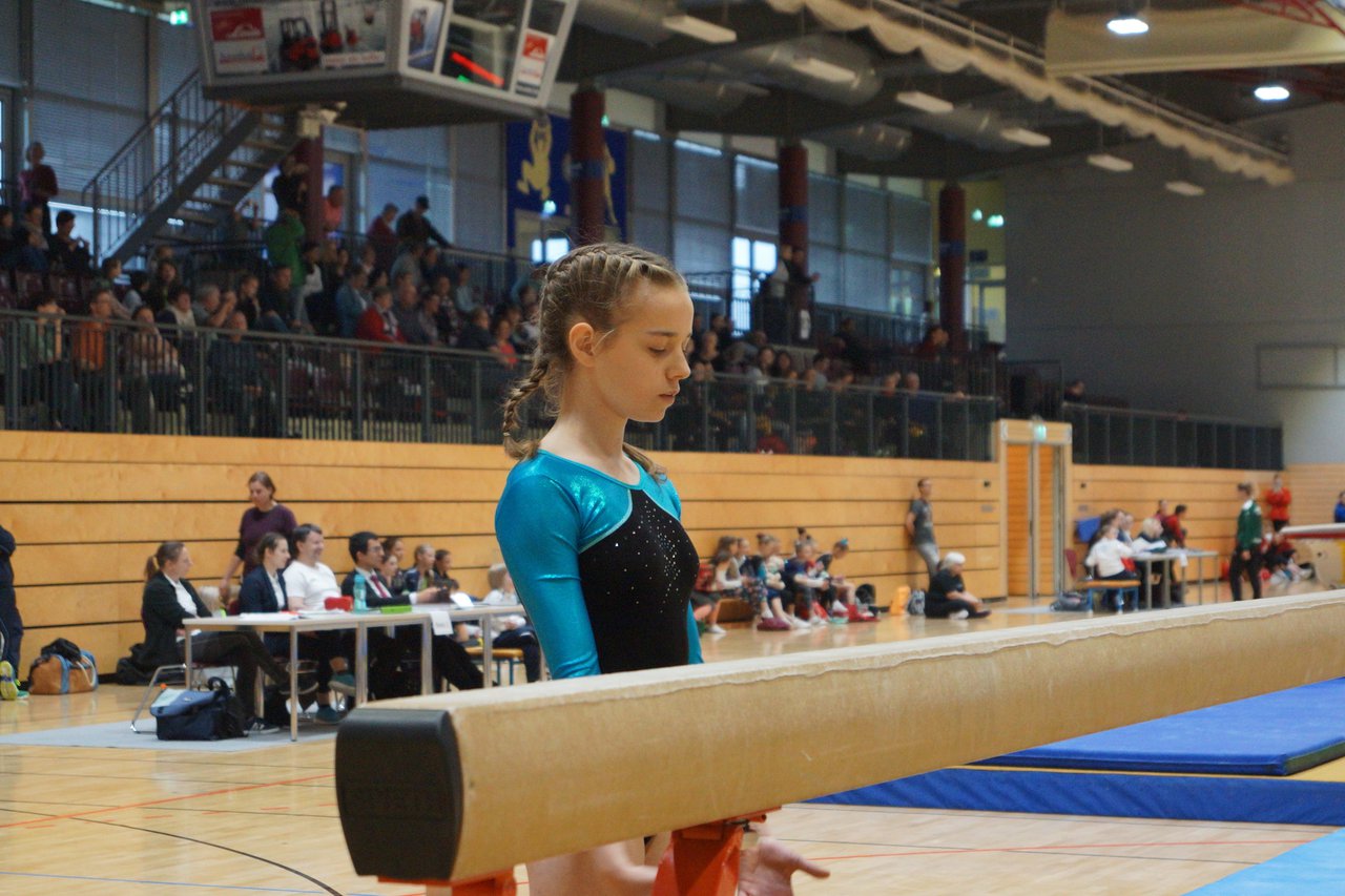 In der wie immer perfekt vorbereiteten Chemnitzer Richard Hartmann kämpften am 11. Mai sechs Turnerinnen unseres Vereines um die begehrten Sachsenmeister- Titel in der LK 3. Alle hatten sich viel vorgenommen und sehr fleißig für diesen Höhepunkt trainiert. In der AK 12/13 gingen Emely, Ivie und Milena an den Start. Für Milena und Ivie war das die erste Sachsenmeisterschaft in der LK 3, nachdem sie im letzten Jahr 3. und 6. in der LK4 belegt hatten. Leider lief es am Schwebebalken nicht optimal und am Boden wurden nicht alle Schwierigkeiten anerkannt, so dass nur Platz 10 (Ivie) und 14 (Milena) heraus kamen. Emely, inzwischen ein "alter Hase" in dieser Klasse bewies wieder einmal starke Nerven an allen Geräten. Sie zeigte die beste Stufenbarrenübung und verbesserte ihre Leistung am Boden mit einer neuen Übung noch einmal deutlich. Am Ende errang sie die Bronzemedaille. Alma startete eine Altersklasse höher und zeigte solide Leistungen, konnte aber bei den Älteren noch nicht mithalten. Am Ende wurde es Platz 15. Am Nachmittag gingen Marla (AK 16/17) und Felicitas (AK 18+) für uns an den Start. Für Marla war es die erste Sachsenmeisterschaft im Kürbereich. Leider kostete sie ein Sturz vom Balken die Chance auf Platz 6. Am Ende wurde sie 11. Felicitas turnte wie gewohnt durch, verpasste durch einige Wackler am Balken und etwas niedrige Wertungen an ihren Paradegeräten Sprung und Barren ganz knapp die Bronzemedaille.