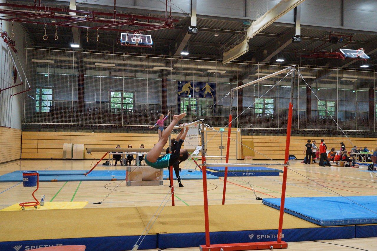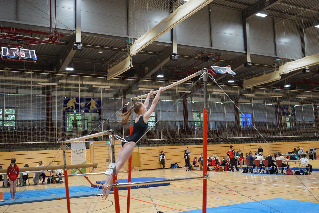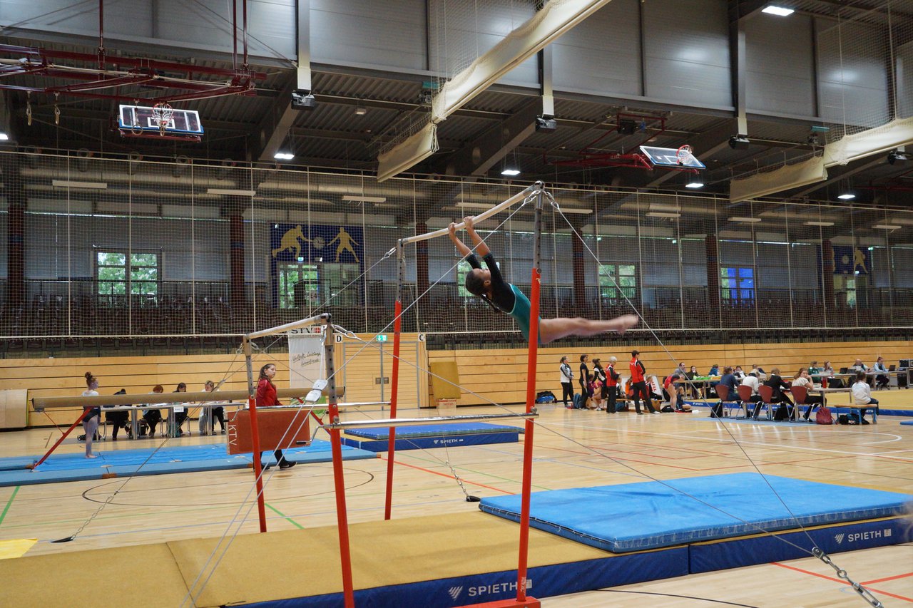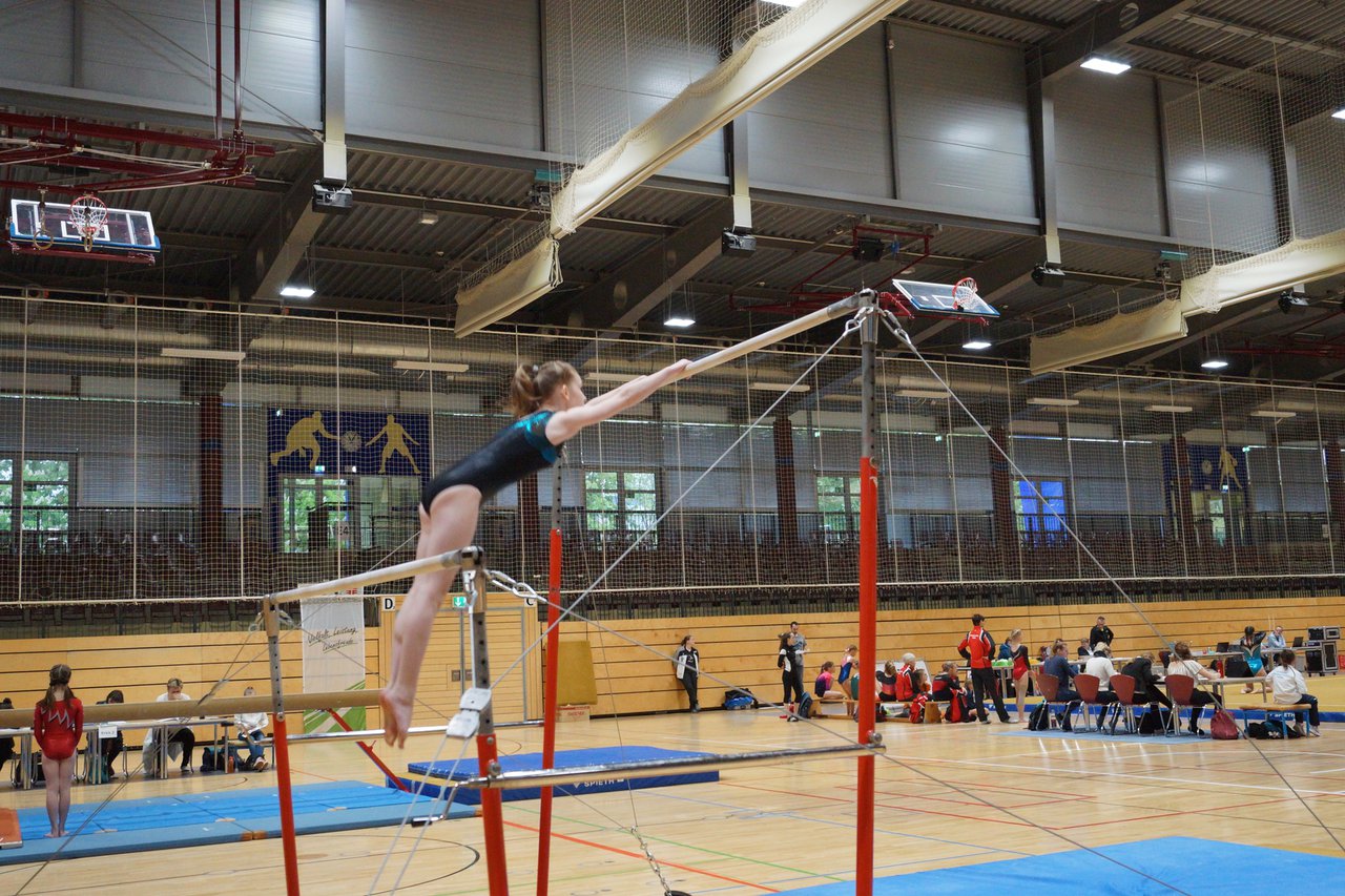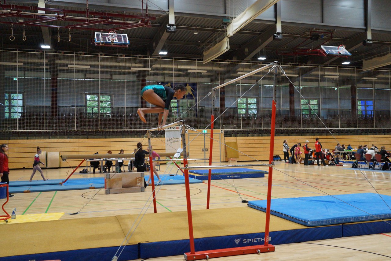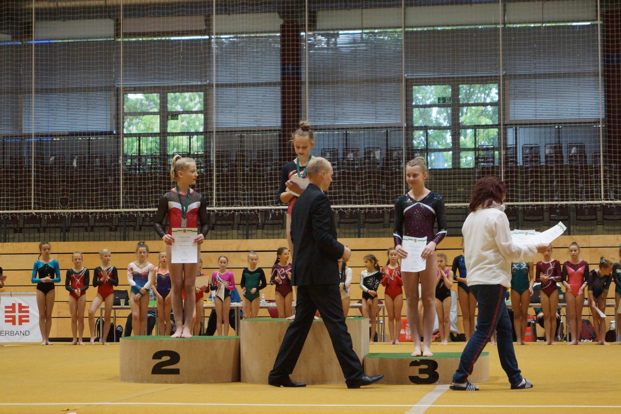 In der wie immer perfekt vorbereiteten Chemnitzer Richard Hartmann kämpften am 11. Mai sechs Turnerinnen unseres Vereines um die begehrten Sachsenmeister- Titel in der LK 3. Alle hatten sich viel vorgenommen und sehr fleißig für diesen Höhepunkt trainiert. In der AK 12/13 gingen Emely, Ivie und Milena an den Start. Für Milena und Ivie war das die erste Sachsenmeisterschaft in der LK 3, nachdem sie im letzten Jahr 3. und 6. in der LK4 belegt hatten. Leider lief es am Schwebebalken nicht optimal und am Boden wurden nicht alle Schwierigkeiten anerkannt, so dass nur Platz 10 (Ivie) und 14 (Milena) heraus kamen. Emely, inzwischen ein "alter Hase" in dieser Klasse bewies wieder einmal starke Nerven an allen Geräten. Sie zeigte die beste Stufenbarrenübung und verbesserte ihre Leistung am Boden mit einer neuen Übung noch einmal deutlich. Am Ende errang sie die Bronzemedaille. Alma startete eine Altersklasse höher und zeigte solide Leistungen, konnte aber bei den Älteren noch nicht mithalten. Am Ende wurde es Platz 15. Am Nachmittag gingen Marla (AK 16/17) und Felicitas (AK 18+) für uns an den Start. Für Marla war es die erste Sachsenmeisterschaft im Kürbereich. Leider kostete sie ein Sturz vom Balken die Chance auf Platz 6. Am Ende wurde sie 11. Felicitas turnte wie gewohnt durch, verpasste durch einige Wackler am Balken und etwas niedrige Wertungen an ihren Paradegeräten Sprung und Barren ganz knapp die Bronzemedaille.