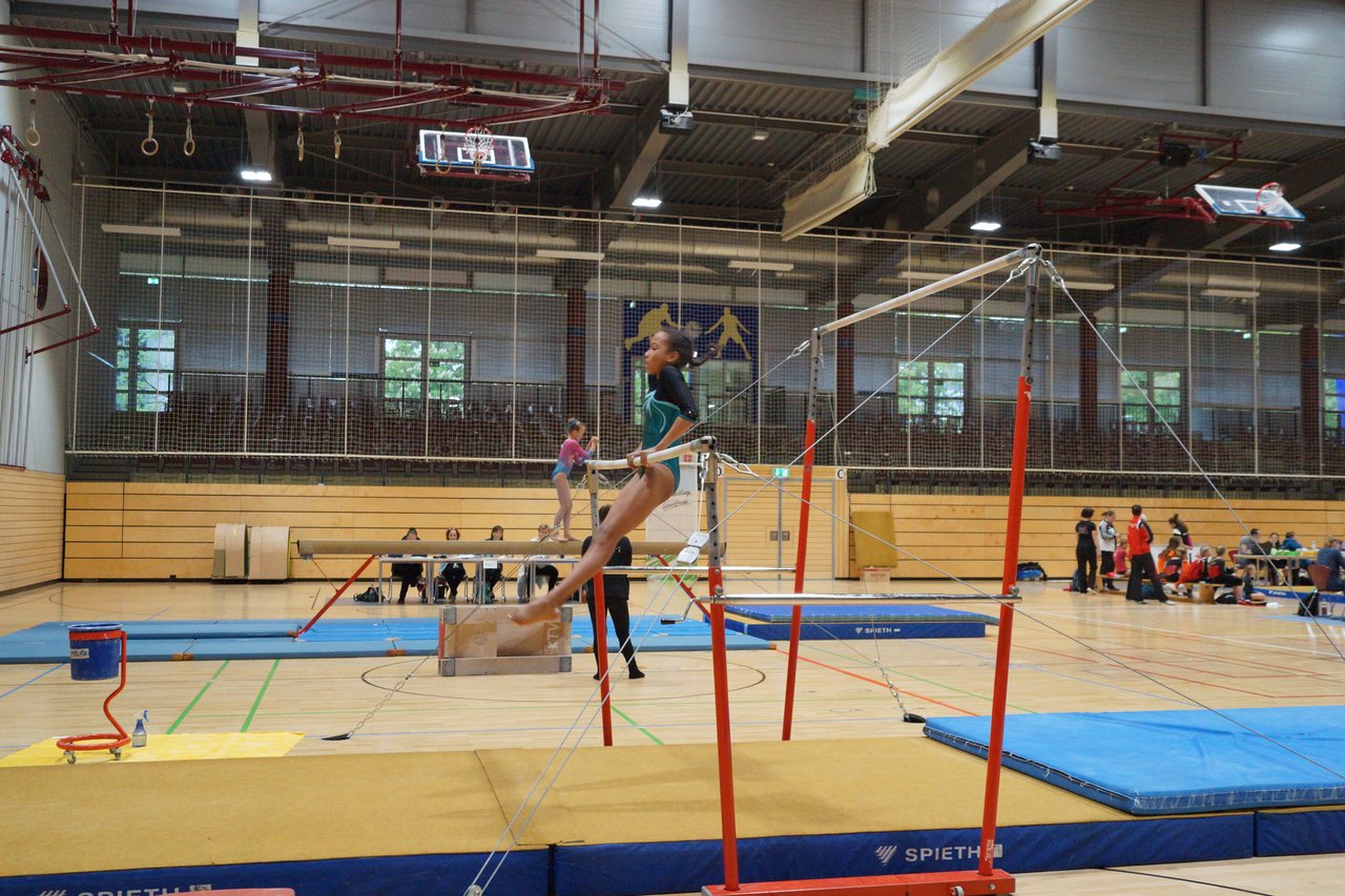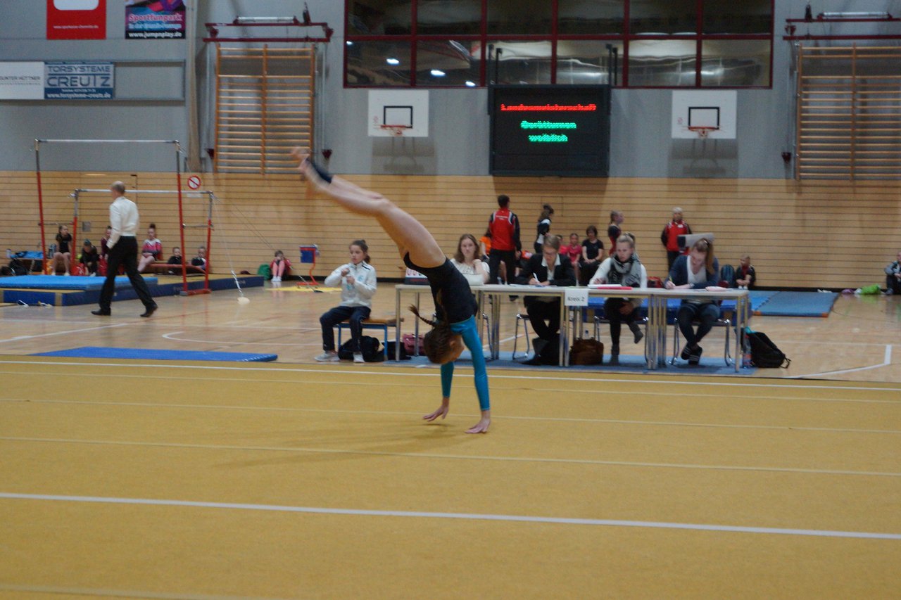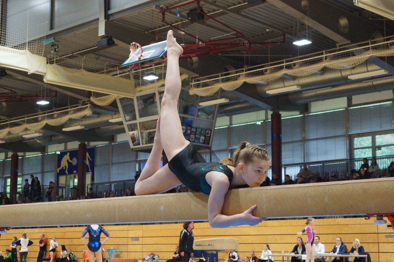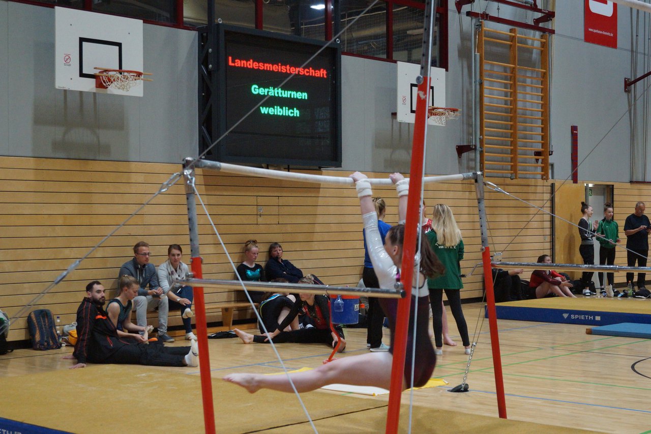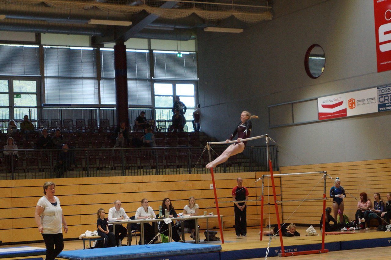 In der wie immer perfekt vorbereiteten Chemnitzer Richard Hartmann kämpften am 11. Mai sechs Turnerinnen unseres Vereines um die begehrten Sachsenmeister- Titel in der LK 3. Alle hatten sich viel vorgenommen und sehr fleißig für diesen Höhepunkt trainiert. In der AK 12/13 gingen Emely, Ivie und Milena an den Start. Für Milena und Ivie war das die erste Sachsenmeisterschaft in der LK 3, nachdem sie im letzten Jahr 3. und 6. in der LK4 belegt hatten. Leider lief es am Schwebebalken nicht optimal und am Boden wurden nicht alle Schwierigkeiten anerkannt, so dass nur Platz 10 (Ivie) und 14 (Milena) heraus kamen. Emely, inzwischen ein "alter Hase" in dieser Klasse bewies wieder einmal starke Nerven an allen Geräten. Sie zeigte die beste Stufenbarrenübung und verbesserte ihre Leistung am Boden mit einer neuen Übung noch einmal deutlich. Am Ende errang sie die Bronzemedaille. Alma startete eine Altersklasse höher und zeigte solide Leistungen, konnte aber bei den Älteren noch nicht mithalten. Am Ende wurde es Platz 15. Am Nachmittag gingen Marla (AK 16/17) und Felicitas (AK 18+) für uns an den Start. Für Marla war es die erste Sachsenmeisterschaft im Kürbereich. Leider kostete sie ein Sturz vom Balken die Chance auf Platz 6. Am Ende wurde sie 11. Felicitas turnte wie gewohnt durch, verpasste durch einige Wackler am Balken und etwas niedrige Wertungen an ihren Paradegeräten Sprung und Barren ganz knapp die Bronzemedaille.
