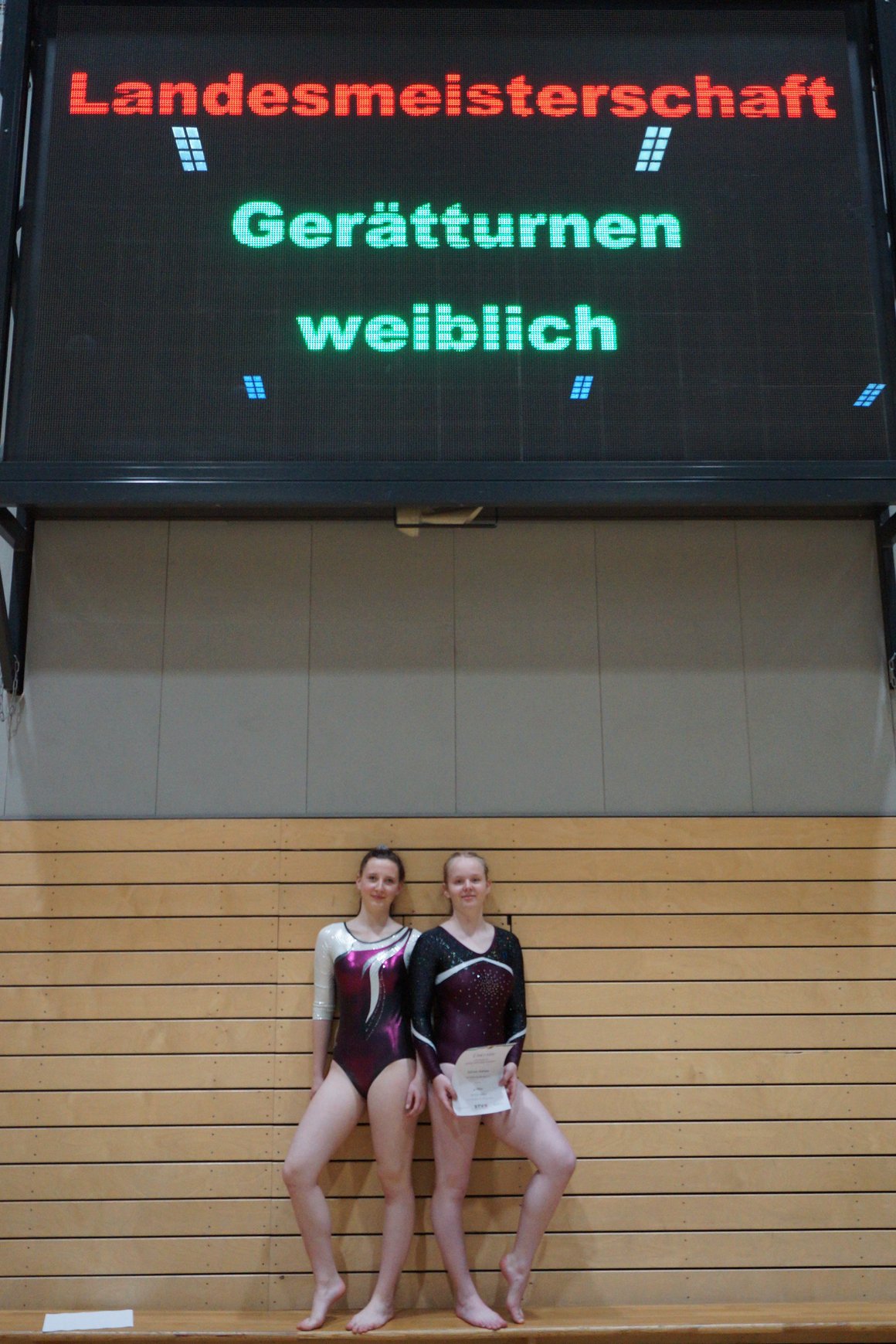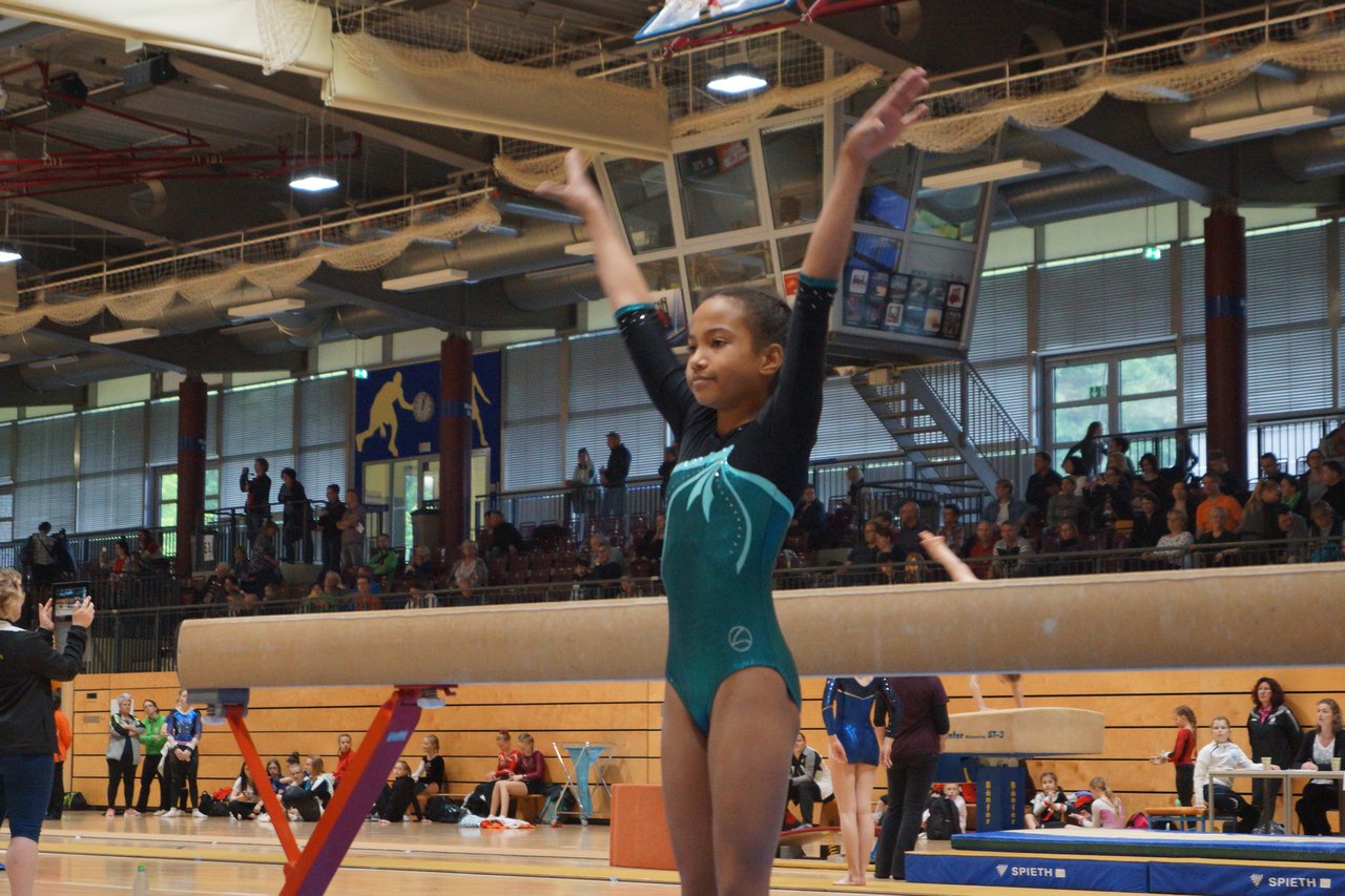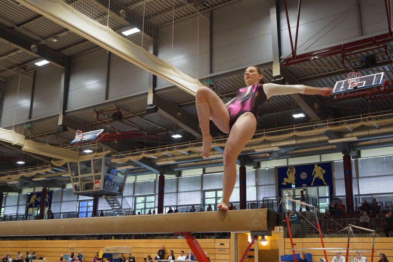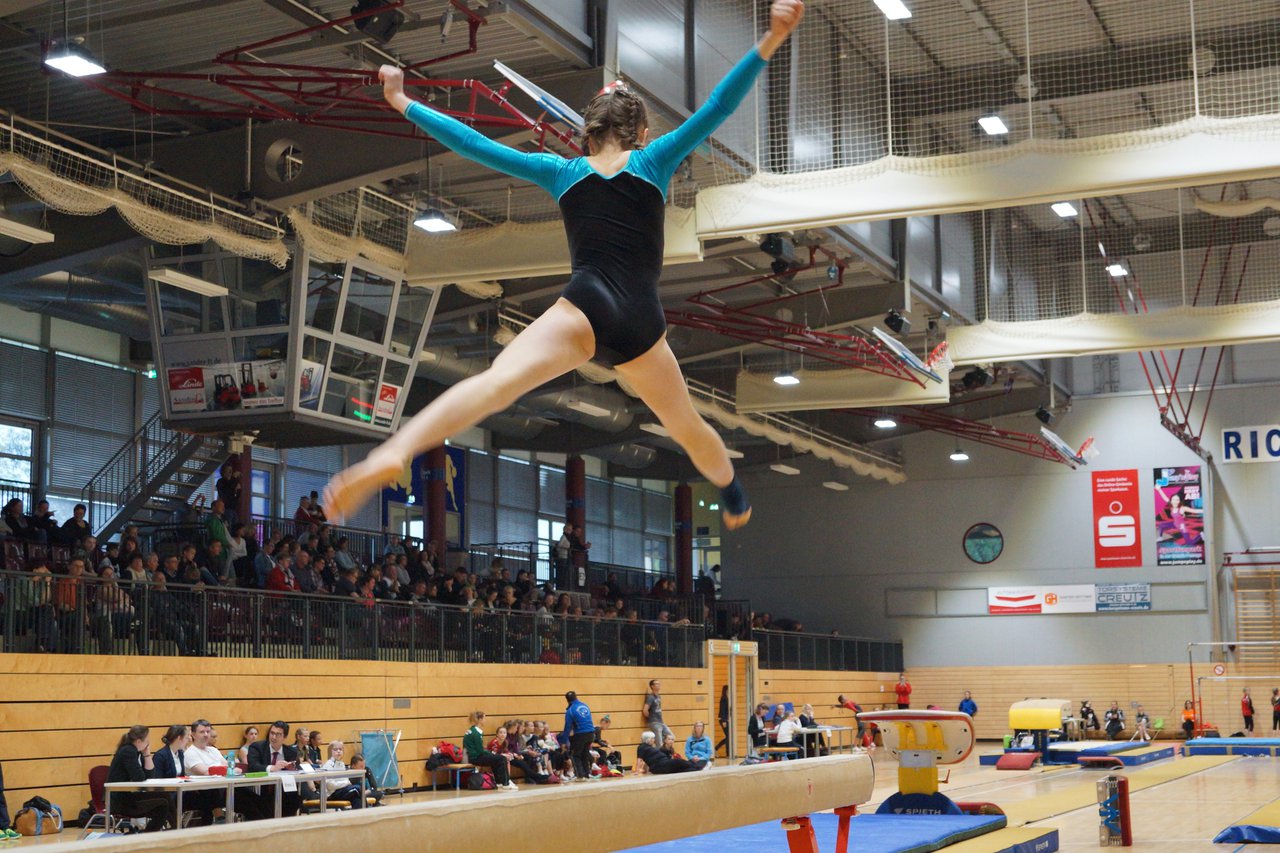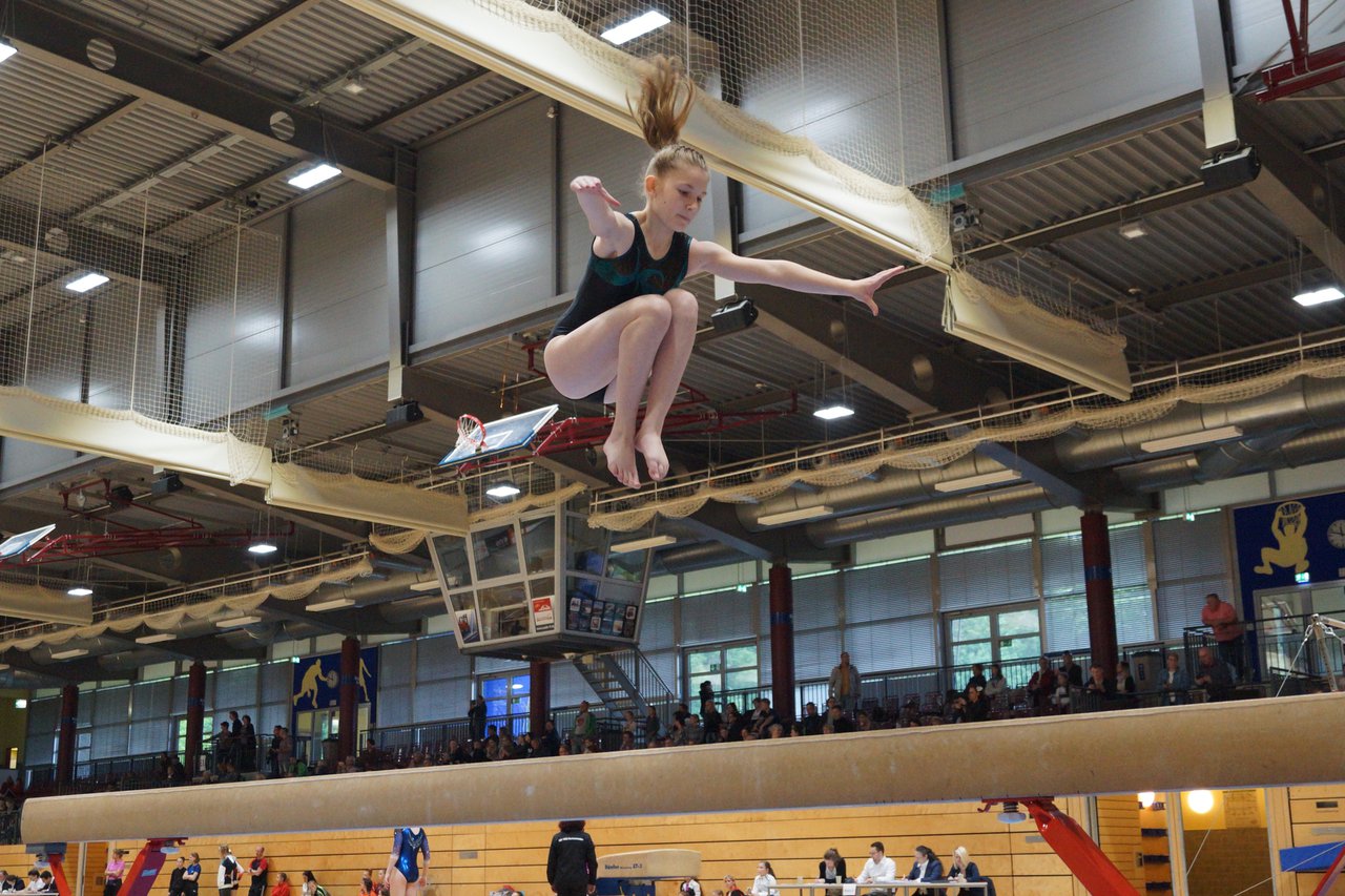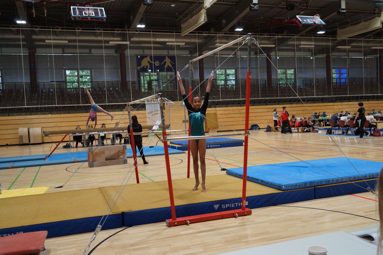 In der wie immer perfekt vorbereiteten Chemnitzer Richard Hartmann kämpften am 11. Mai sechs Turnerinnen unseres Vereines um die begehrten Sachsenmeister- Titel in der LK 3. Alle hatten sich viel vorgenommen und sehr fleißig für diesen Höhepunkt trainiert. In der AK 12/13 gingen Emely, Ivie und Milena an den Start. Für Milena und Ivie war das die erste Sachsenmeisterschaft in der LK 3, nachdem sie im letzten Jahr 3. und 6. in der LK4 belegt hatten. Leider lief es am Schwebebalken nicht optimal und am Boden wurden nicht alle Schwierigkeiten anerkannt, so dass nur Platz 10 (Ivie) und 14 (Milena) heraus kamen. Emely, inzwischen ein "alter Hase" in dieser Klasse bewies wieder einmal starke Nerven an allen Geräten. Sie zeigte die beste Stufenbarrenübung und verbesserte ihre Leistung am Boden mit einer neuen Übung noch einmal deutlich. Am Ende errang sie die Bronzemedaille. Alma startete eine Altersklasse höher und zeigte solide Leistungen, konnte aber bei den Älteren noch nicht mithalten. Am Ende wurde es Platz 15. Am Nachmittag gingen Marla (AK 16/17) und Felicitas (AK 18+) für uns an den Start. Für Marla war es die erste Sachsenmeisterschaft im Kürbereich. Leider kostete sie ein Sturz vom Balken die Chance auf Platz 6. Am Ende wurde sie 11. Felicitas turnte wie gewohnt durch, verpasste durch einige Wackler am Balken und etwas niedrige Wertungen an ihren Paradegeräten Sprung und Barren ganz knapp die Bronzemedaille.