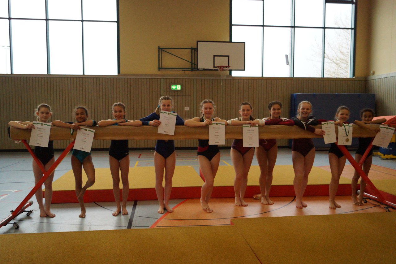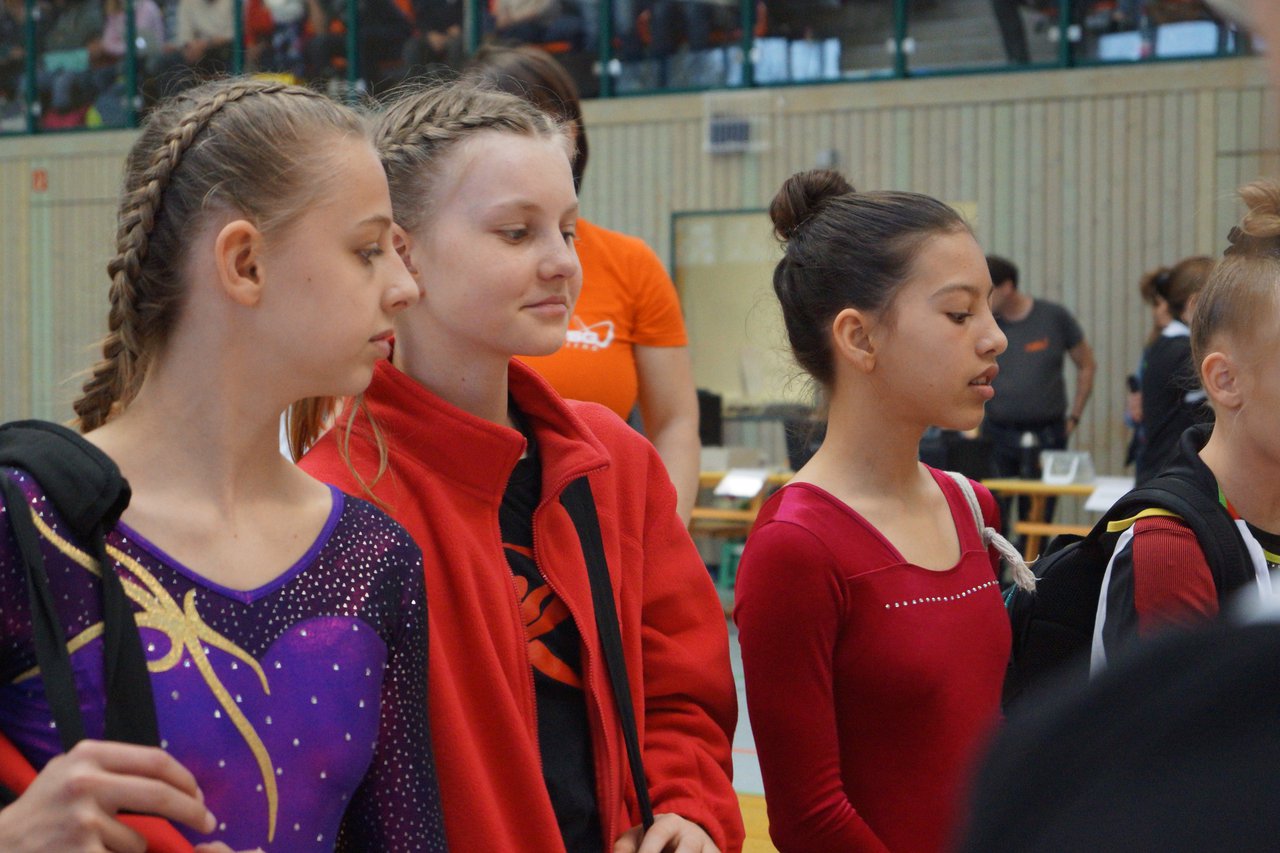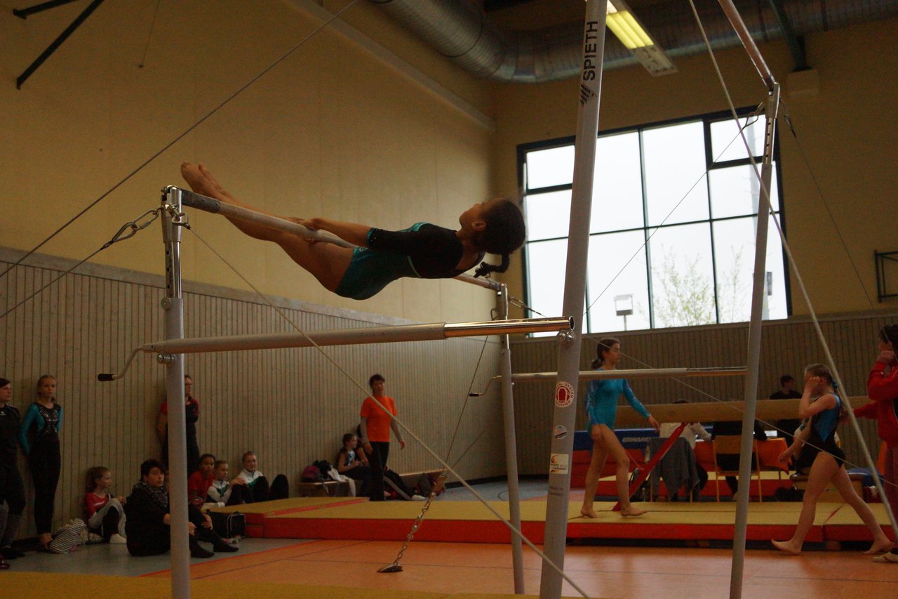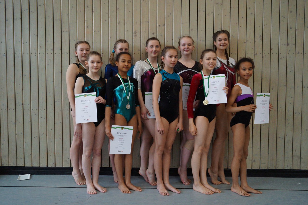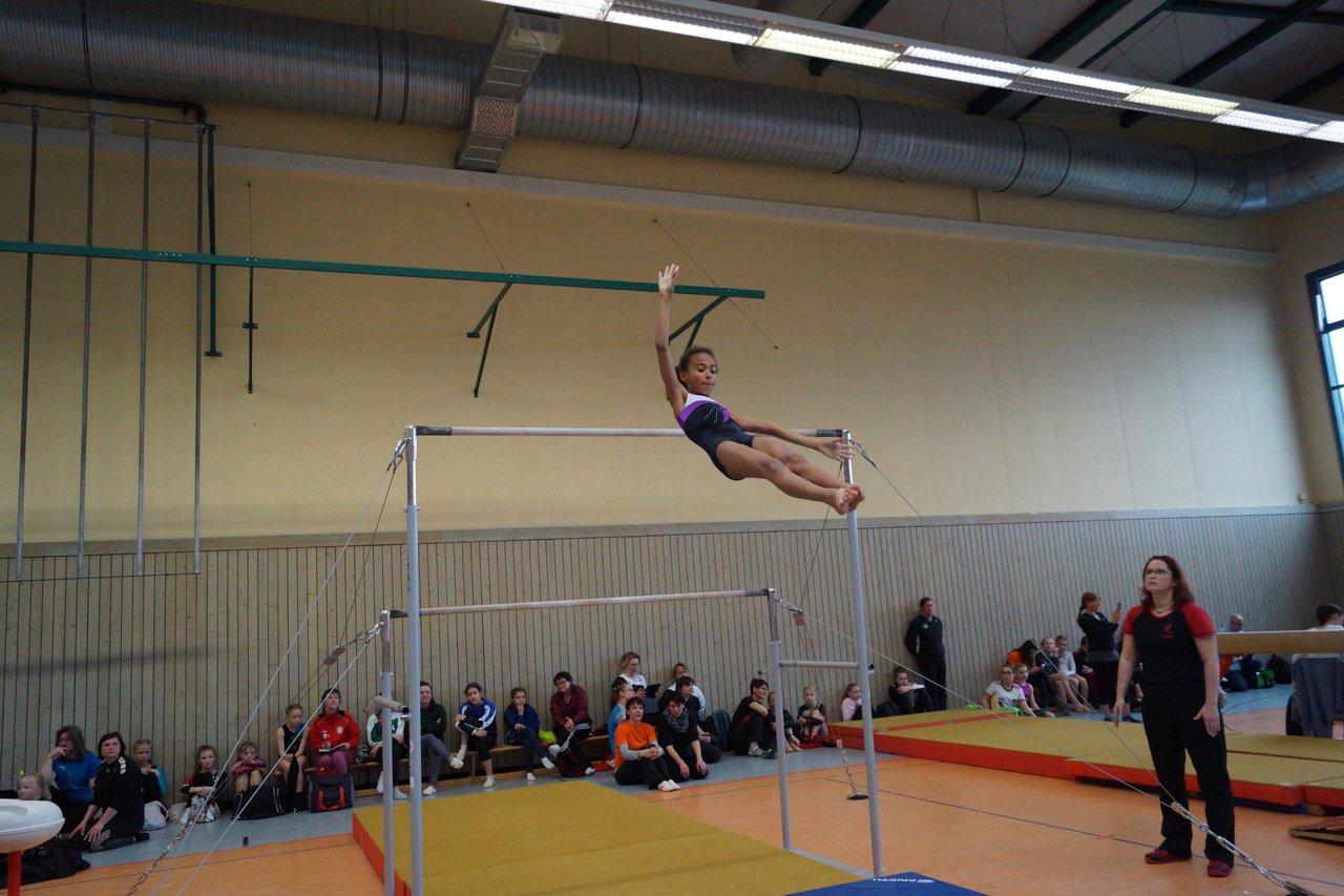 Auf den Bronzerang in der gleichen Klasse schaffte es Emely, die leider eine bessere Platzierung durch ein fehlendes Element am Stufenbarren verschenkte, vor Milena. Ebenfalls Platz 4 ging an Eniye (LK 4 bis AK 11), die durch den Sturz vom Balken die Medaillenränge verpasste. Alma musste schon in der LK 3 AK 14/15 an den Start gehen und wurde ebenfalls Vierte.
