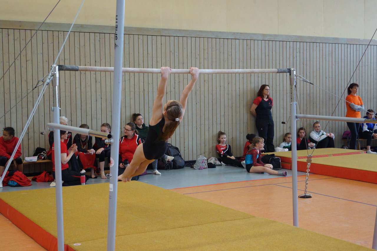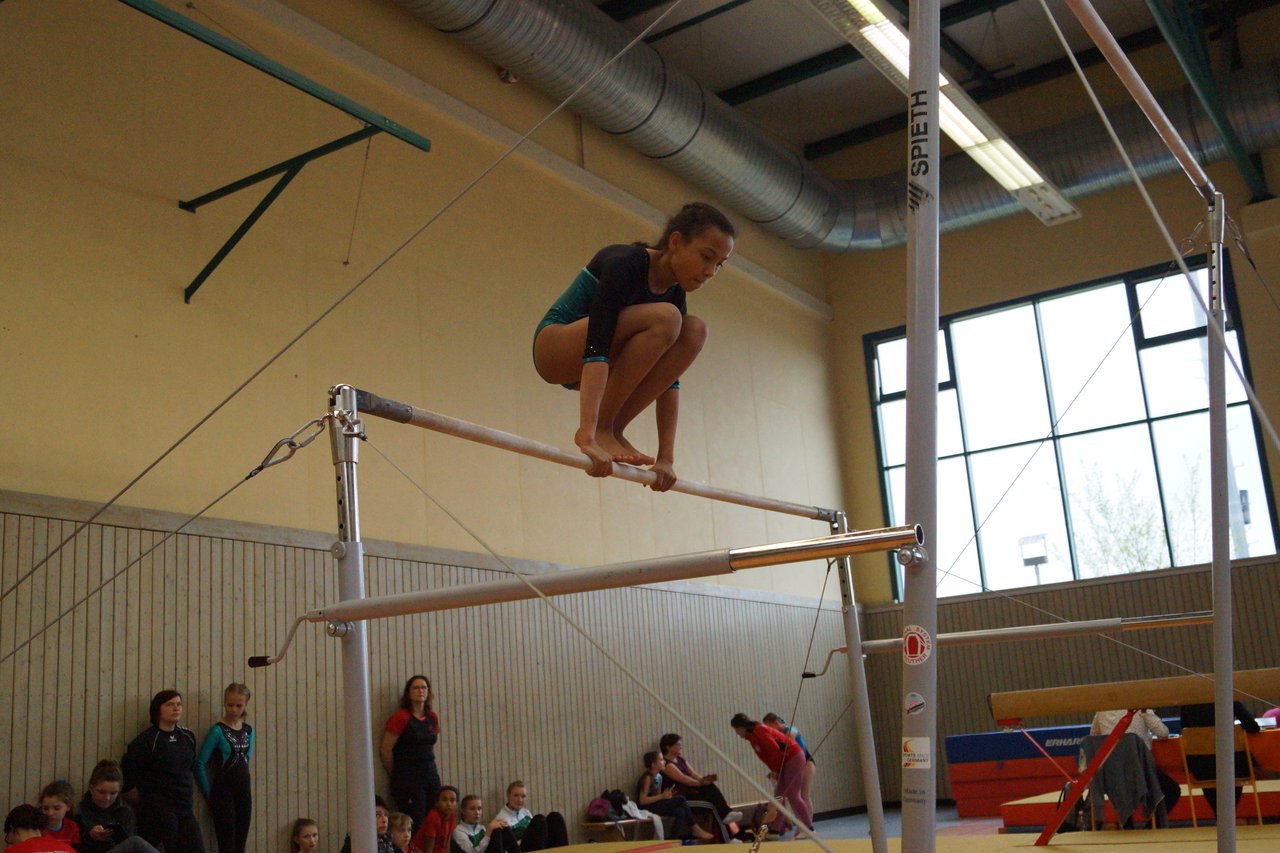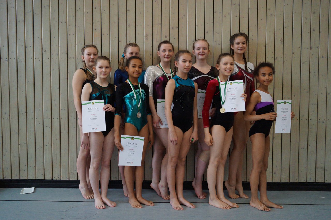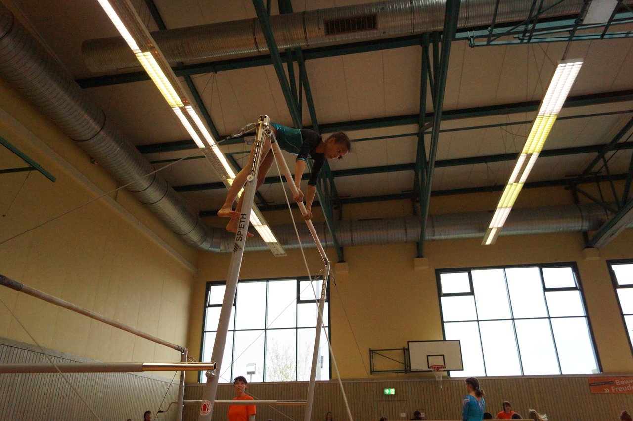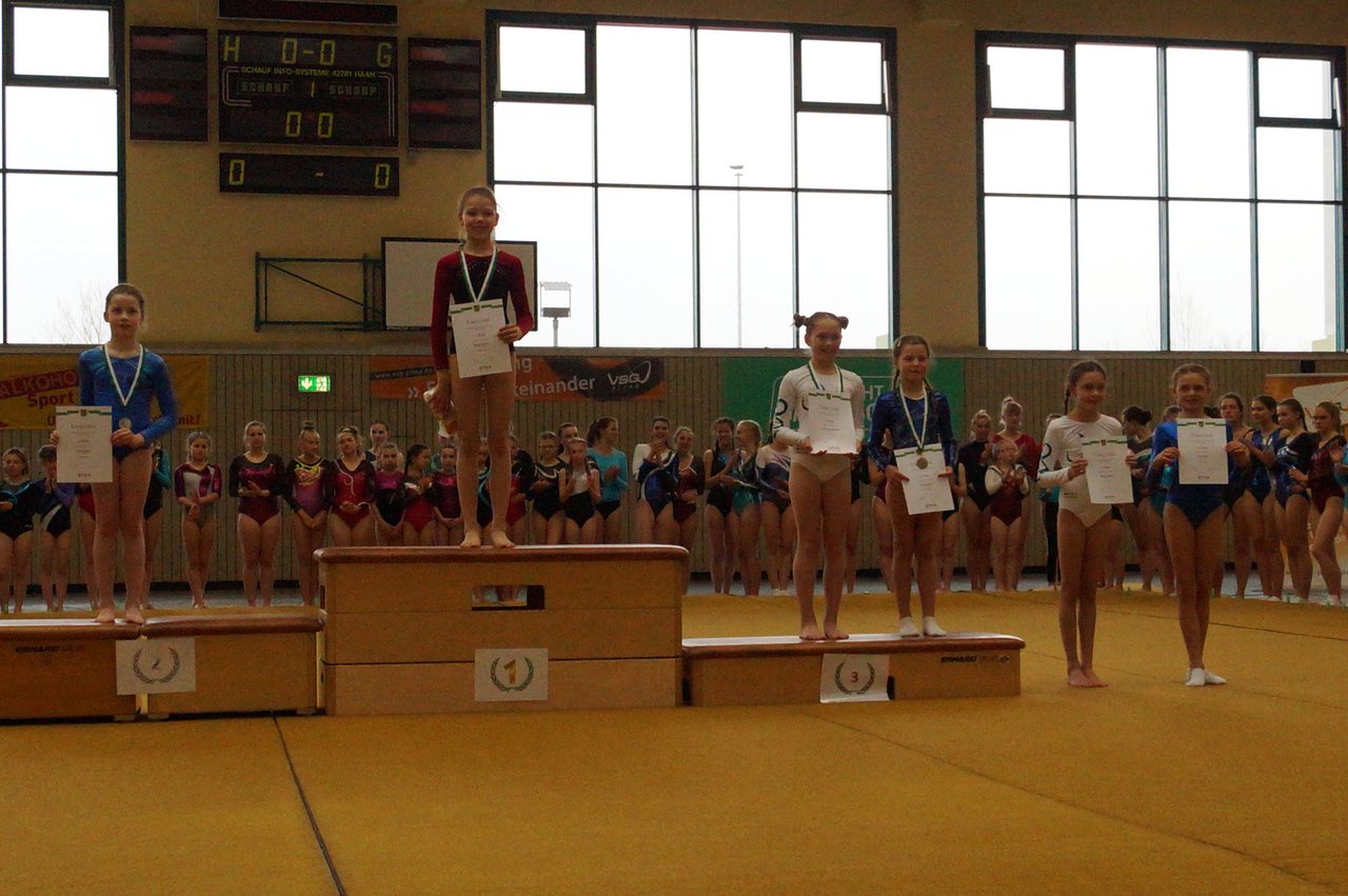 Auf den Bronzerang in der gleichen Klasse schaffte es Emely, die leider eine bessere Platzierung durch ein fehlendes Element am Stufenbarren verschenkte, vor Milena. Ebenfalls Platz 4 ging an Eniye (LK 4 bis AK 11), die durch den Sturz vom Balken die Medaillenränge verpasste. Alma musste schon in der LK 3 AK 14/15 an den Start gehen und wurde ebenfalls Vierte.
