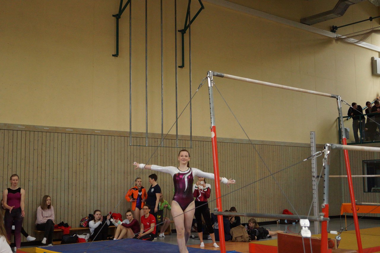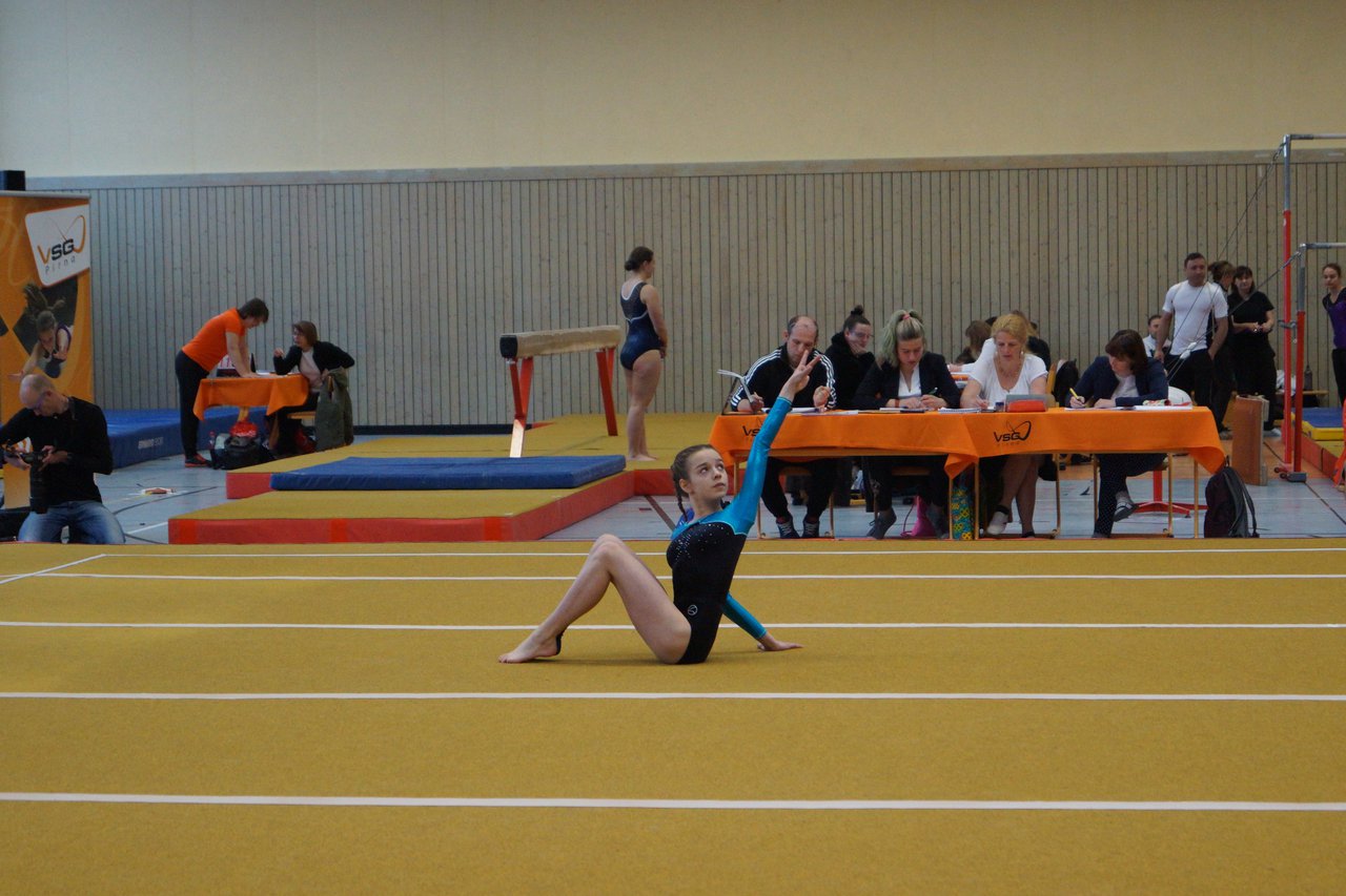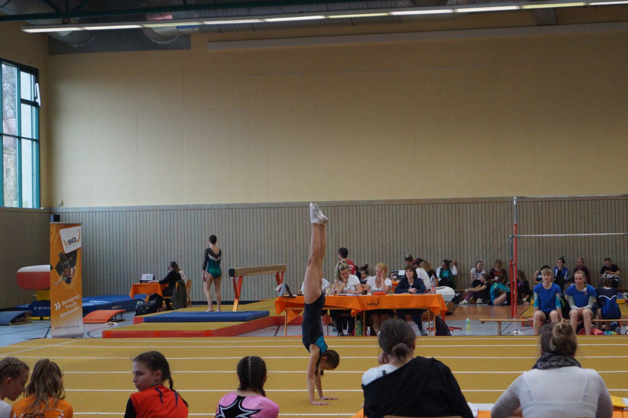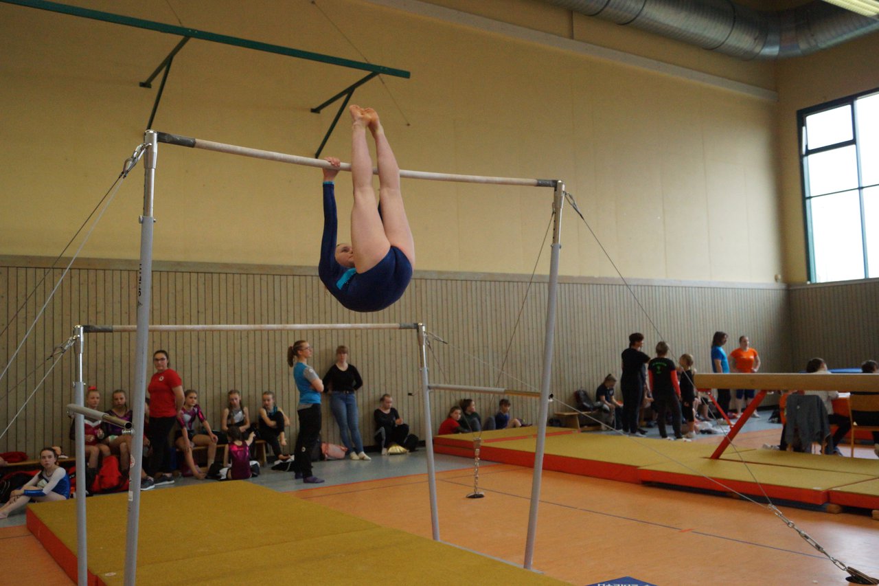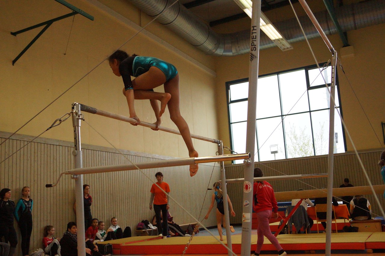 Auf den Bronzerang in der gleichen Klasse schaffte es Emely, die leider eine bessere Platzierung durch ein fehlendes Element am Stufenbarren verschenkte, vor Milena. Ebenfalls Platz 4 ging an Eniye (LK 4 bis AK 11), die durch den Sturz vom Balken die Medaillenränge verpasste. Alma musste schon in der LK 3 AK 14/15 an den Start gehen und wurde ebenfalls Vierte.
