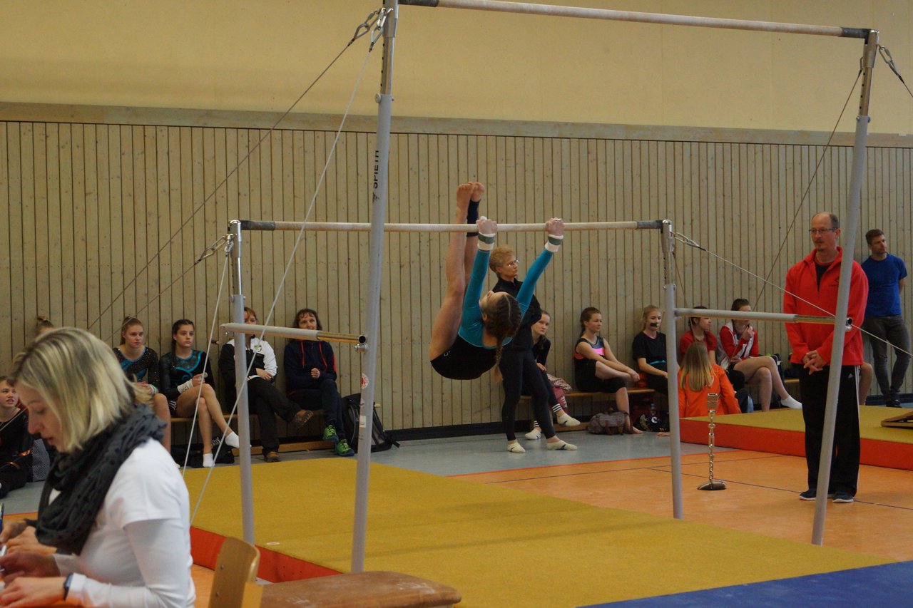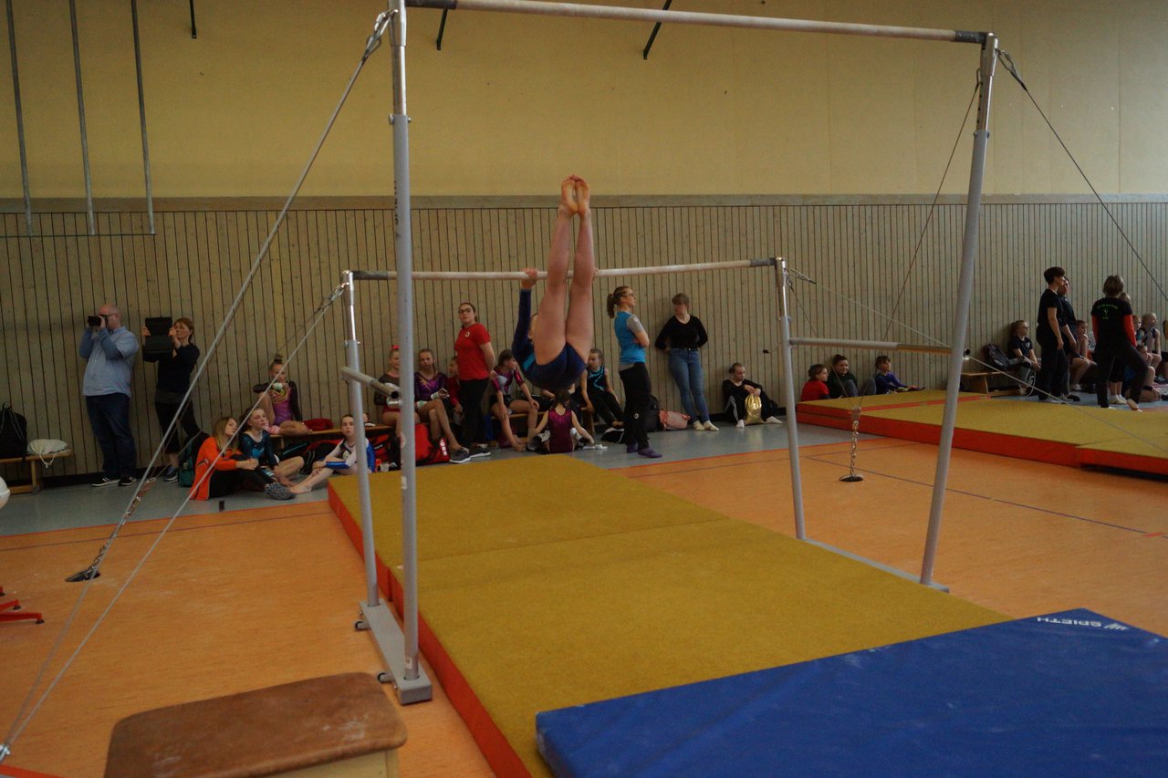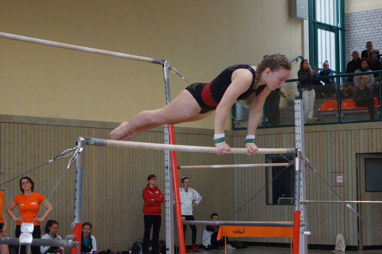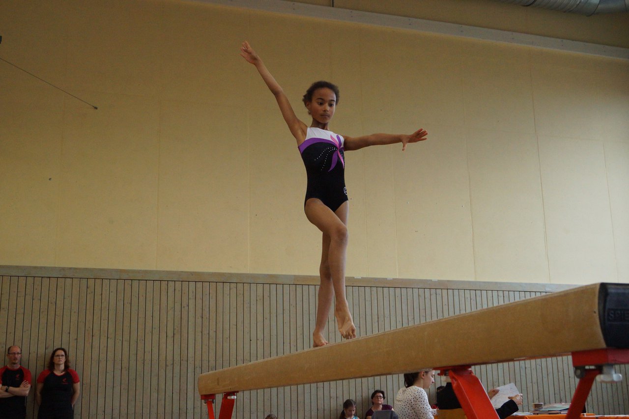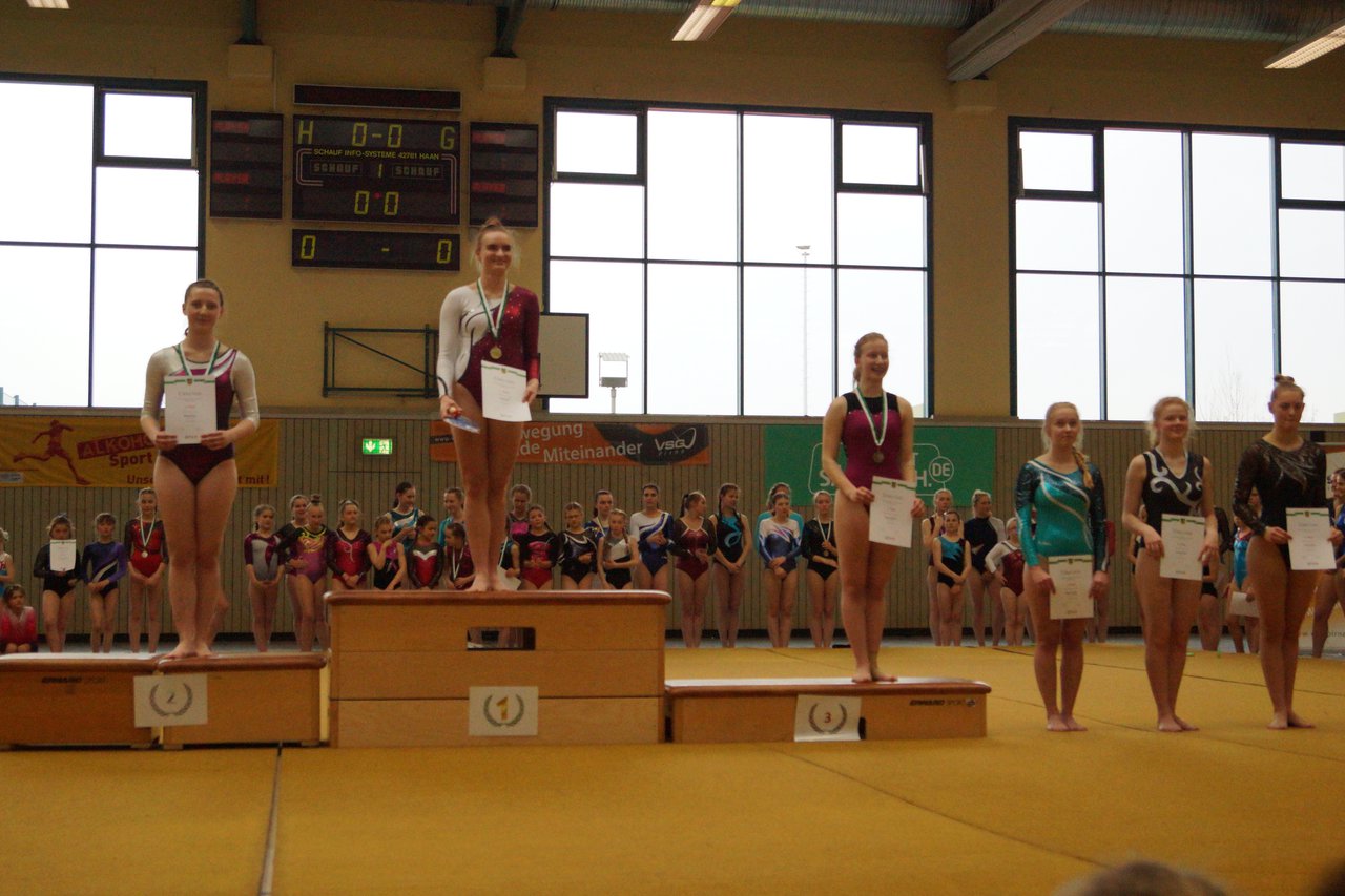 Auf den Bronzerang in der gleichen Klasse schaffte es Emely, die leider eine bessere Platzierung durch ein fehlendes Element am Stufenbarren verschenkte, vor Milena. Ebenfalls Platz 4 ging an Eniye (LK 4 bis AK 11), die durch den Sturz vom Balken die Medaillenränge verpasste. Alma musste schon in der LK 3 AK 14/15 an den Start gehen und wurde ebenfalls Vierte.