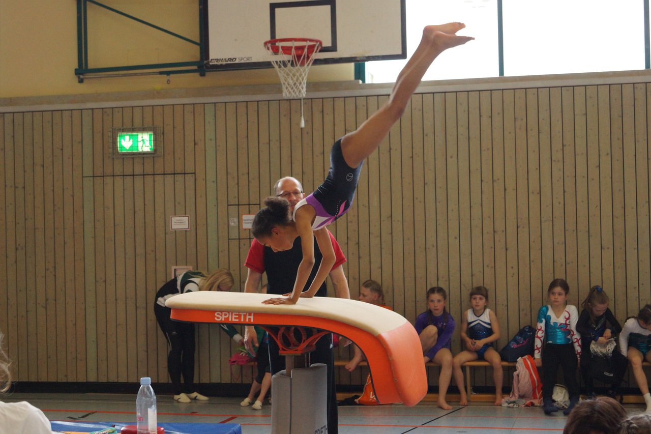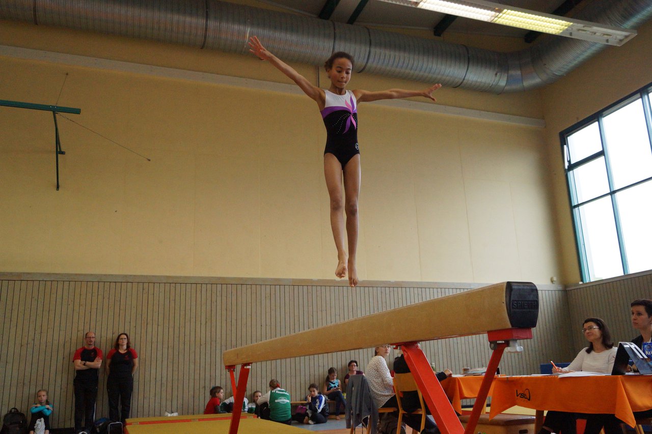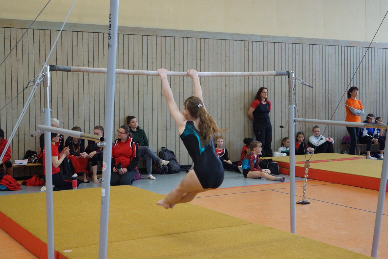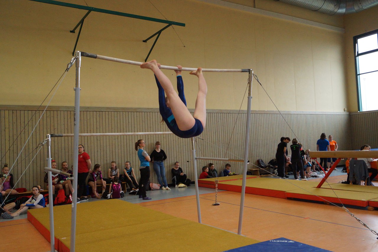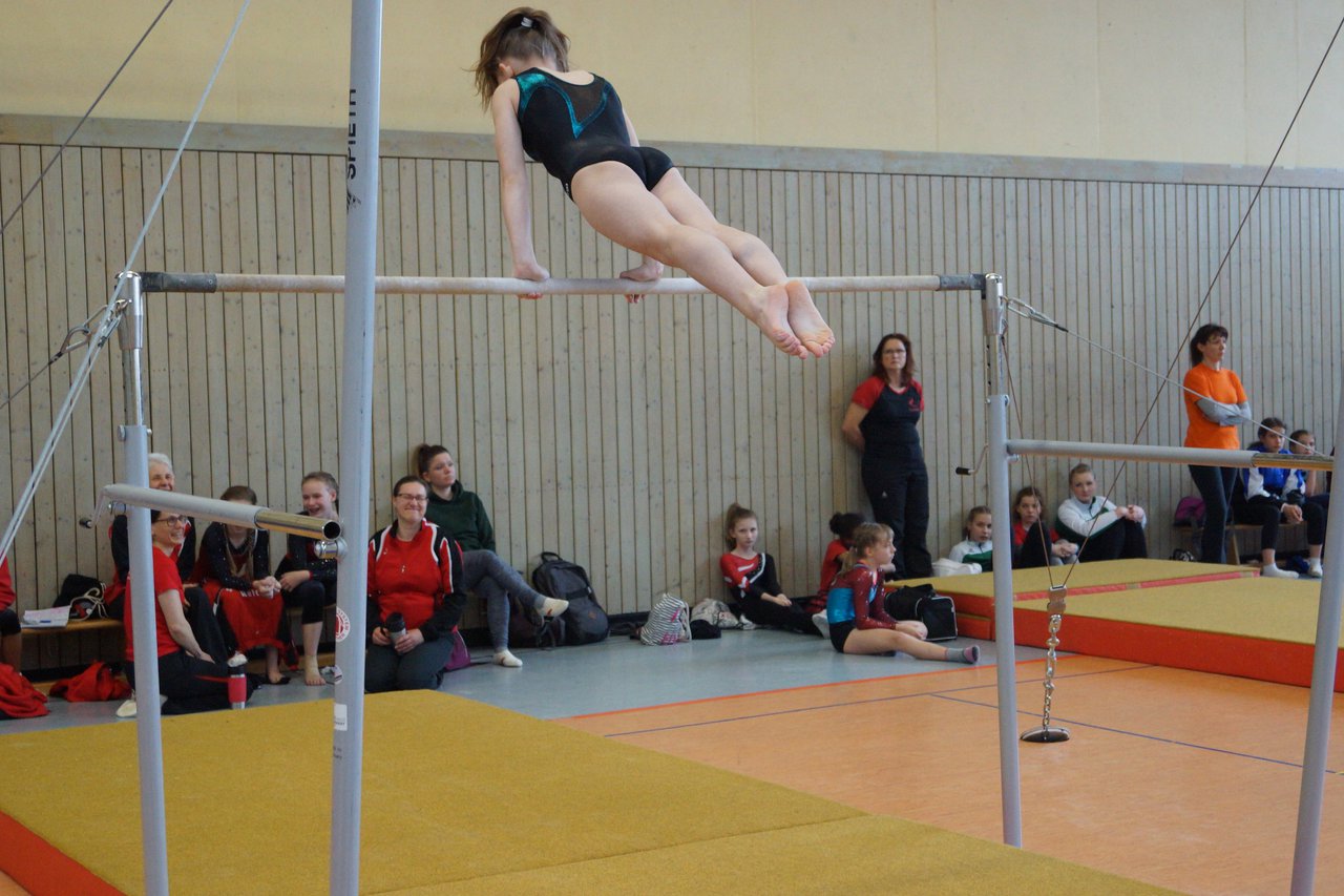 Auf den Bronzerang in der gleichen Klasse schaffte es Emely, die leider eine bessere Platzierung durch ein fehlendes Element am Stufenbarren verschenkte, vor Milena. Ebenfalls Platz 4 ging an Eniye (LK 4 bis AK 11), die durch den Sturz vom Balken die Medaillenränge verpasste. Alma musste schon in der LK 3 AK 14/15 an den Start gehen und wurde ebenfalls Vierte.