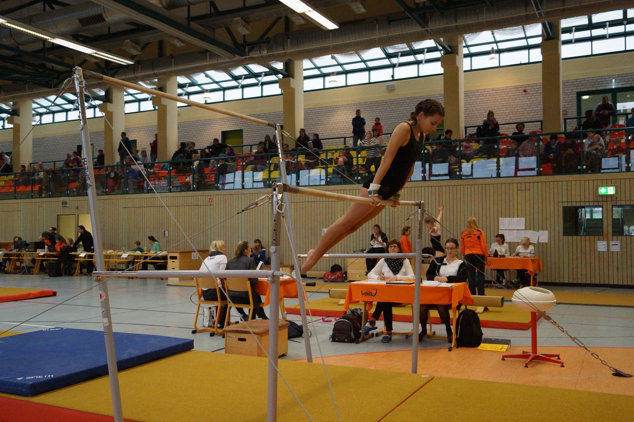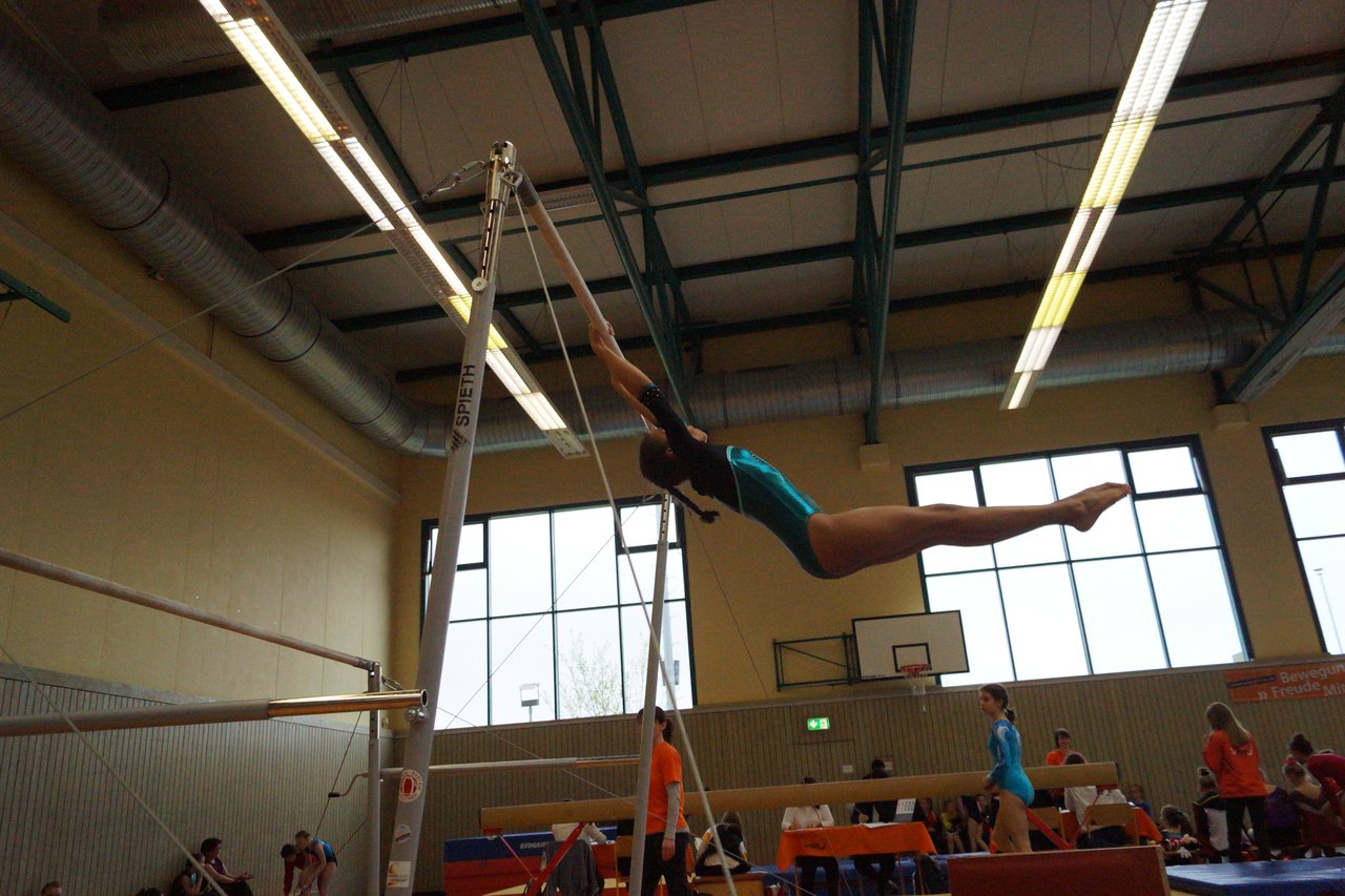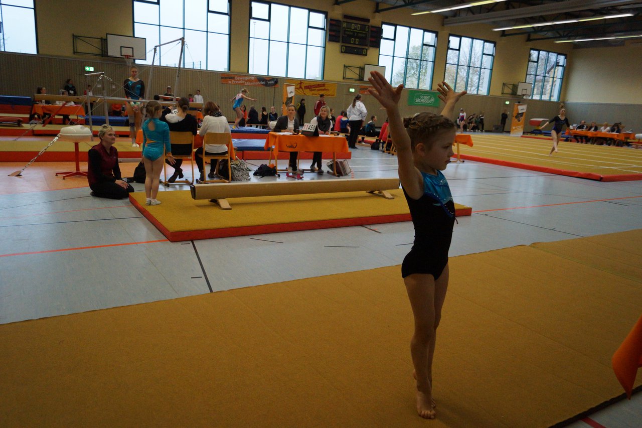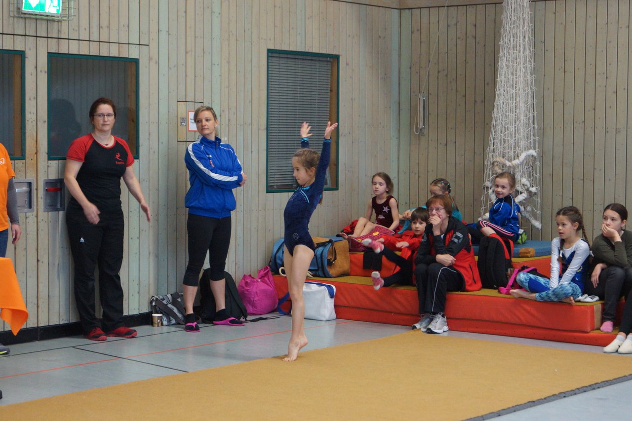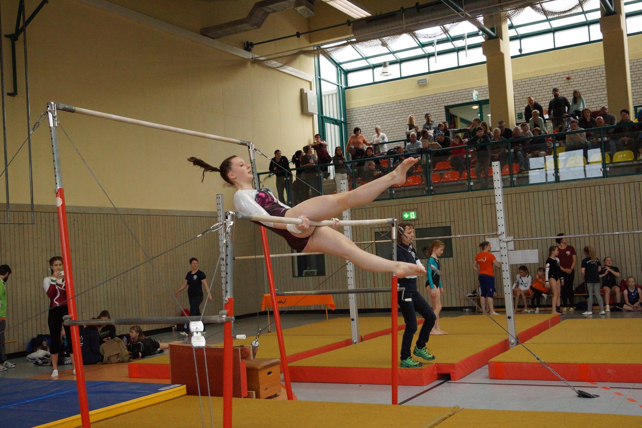 Auf den Bronzerang in der gleichen Klasse schaffte es Emely, die leider eine bessere Platzierung durch ein fehlendes Element am Stufenbarren verschenkte, vor Milena. Ebenfalls Platz 4 ging an Eniye (LK 4 bis AK 11), die durch den Sturz vom Balken die Medaillenränge verpasste. Alma musste schon in der LK 3 AK 14/15 an den Start gehen und wurde ebenfalls Vierte.