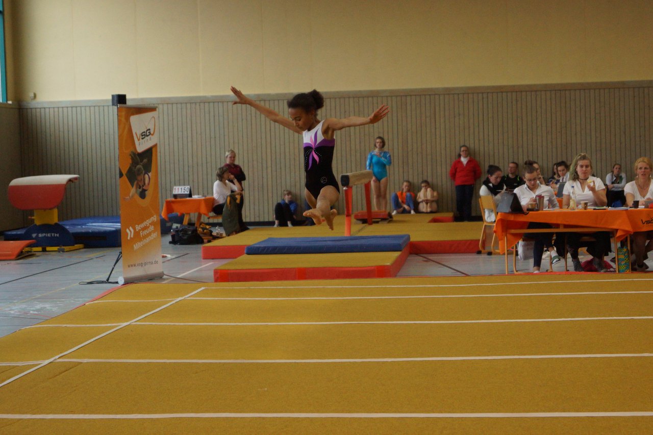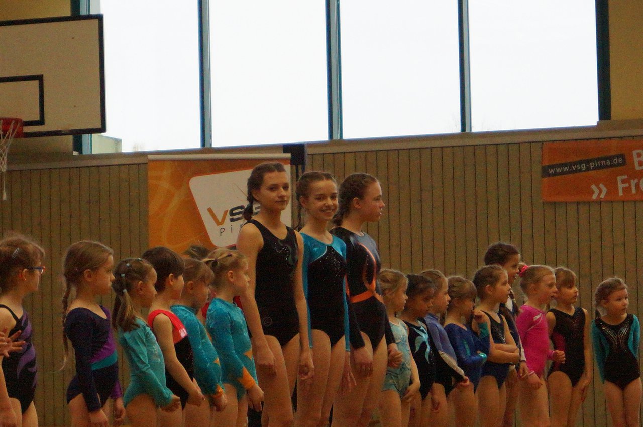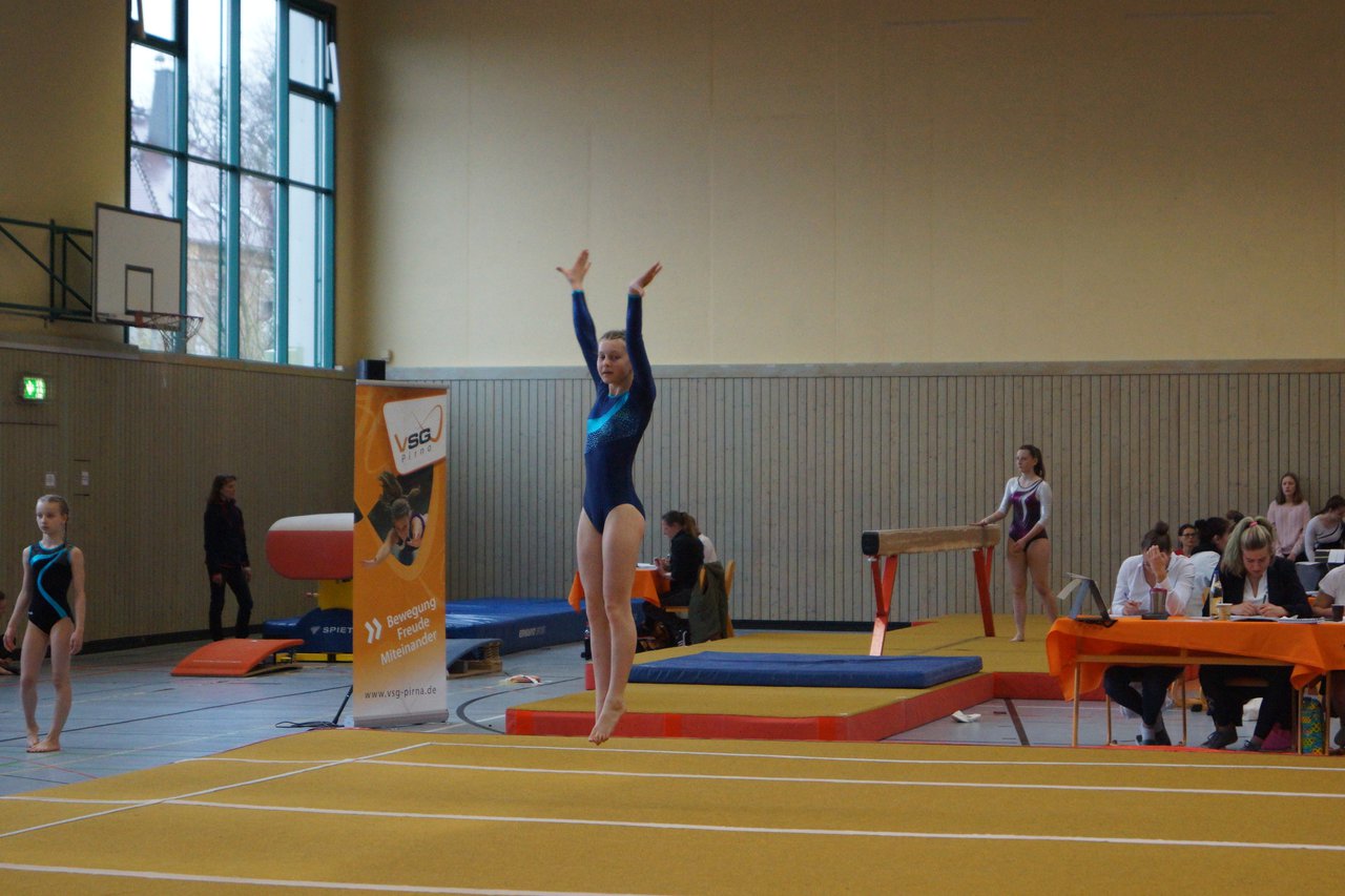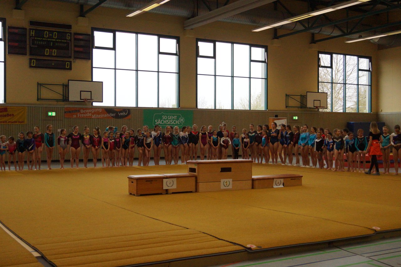 Am Sonntag, dem 14. April 2019 gingen 15 Turnerinnen aus uns unserem Verein in zehn verschiedenen Alters- bzw. Leistungsklassen in der Turnhalle des Berufsschulzentrums Pirna Copitz an den Start.